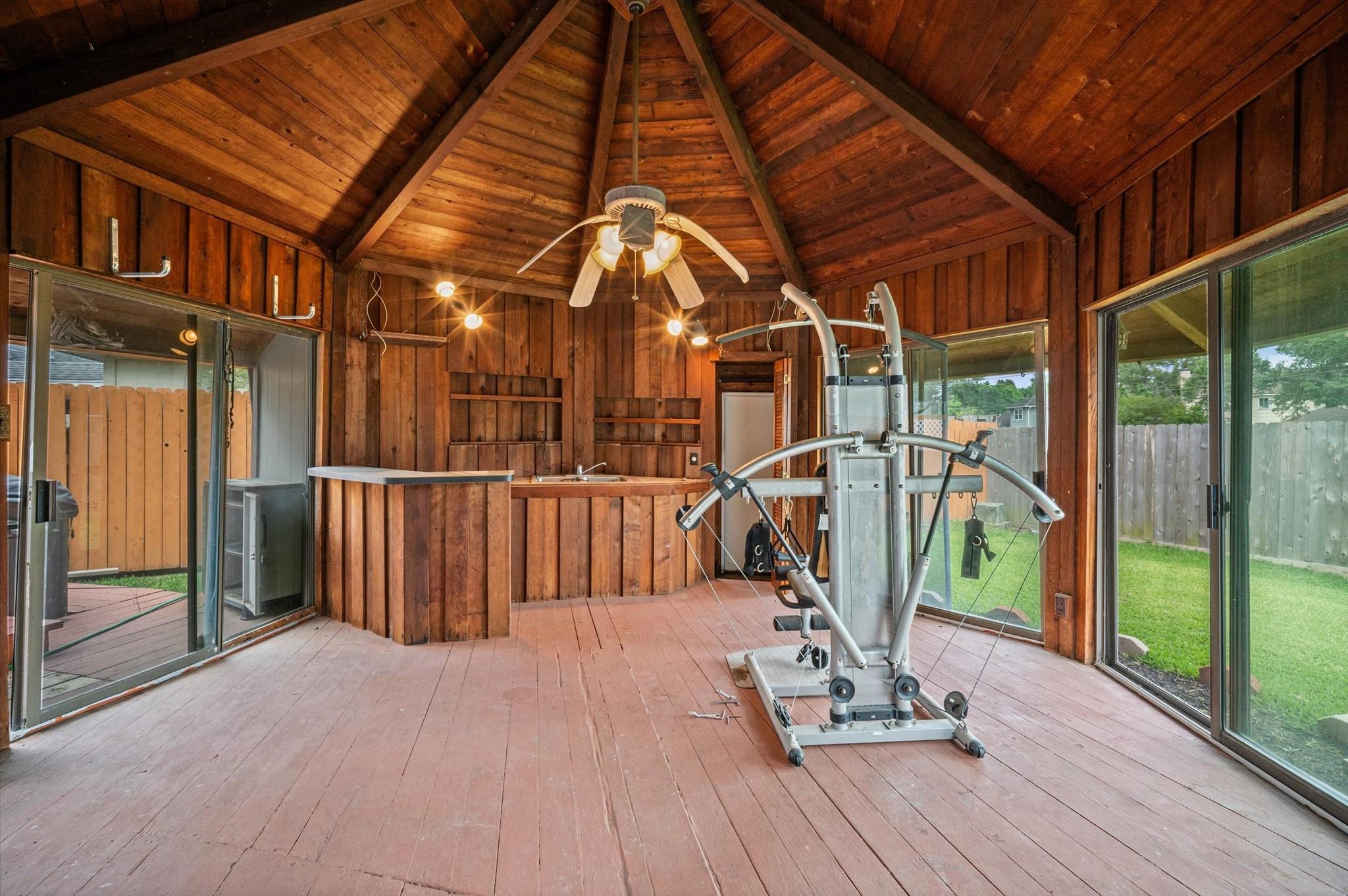 Welcome to this beautiful, move-in ready home featuring 4 bedrooms and 2.5 bathrooms, a 2-car garage plus a large additional bay perfect for a workshop, and a huge carport with a long double-width driveway. Recently painted interior and professionally steam-cleaned carpets welcome you into a bright, comfortable floorplan with a covered patio overlooking a private, oversized yard with no rear neighbors. The property offers a custom-built gazebo with multiple sliding doors, mature landscaping with a sprinkler system, a soft water filtration system, and a well-maintained whole-house generator. With convenient access to I-45 and located in an excellent neighborhood, this home combines practical upgrades and outdoor living—plus, with the new owner’s personal touches and selective updates, it’s sure to truly shine.