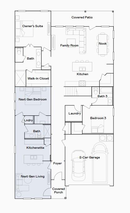 NEW! Lennar Classic "Steely" Plan with Brick Elevation D3 in Synova! The Steely D is a versatile home which features a Next Gen® suite with a separate entrance, living space, bedroom and bathroom, ideal for multigenerational households or residents needing extra privacy. The main home shares an open layout between the kitchen, nook and family room with access to the covered patio, making entertaining easy. The luxe owner's suite is in a rear corner of the home and has an en-suite bathroom and walk-in closet.