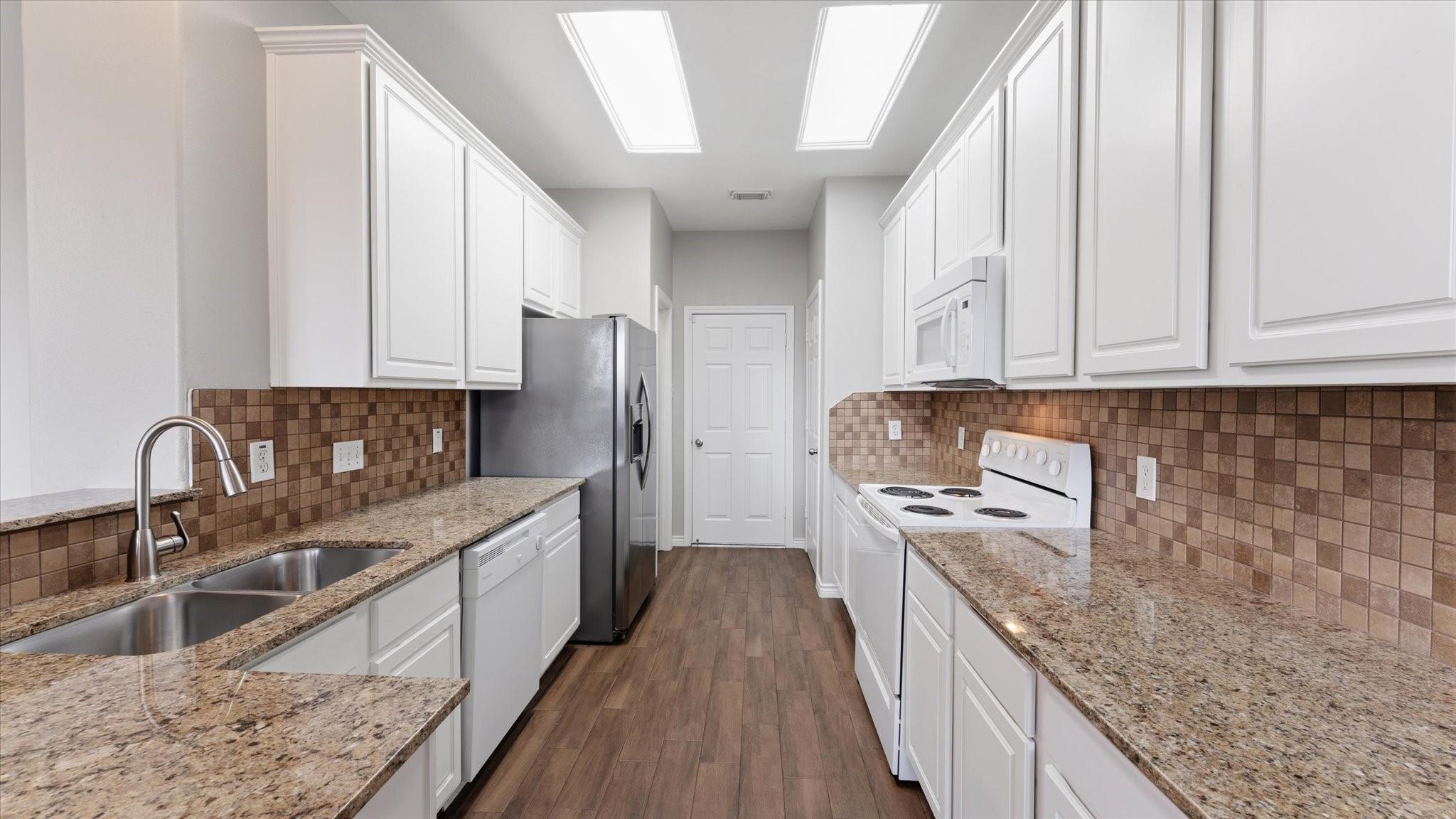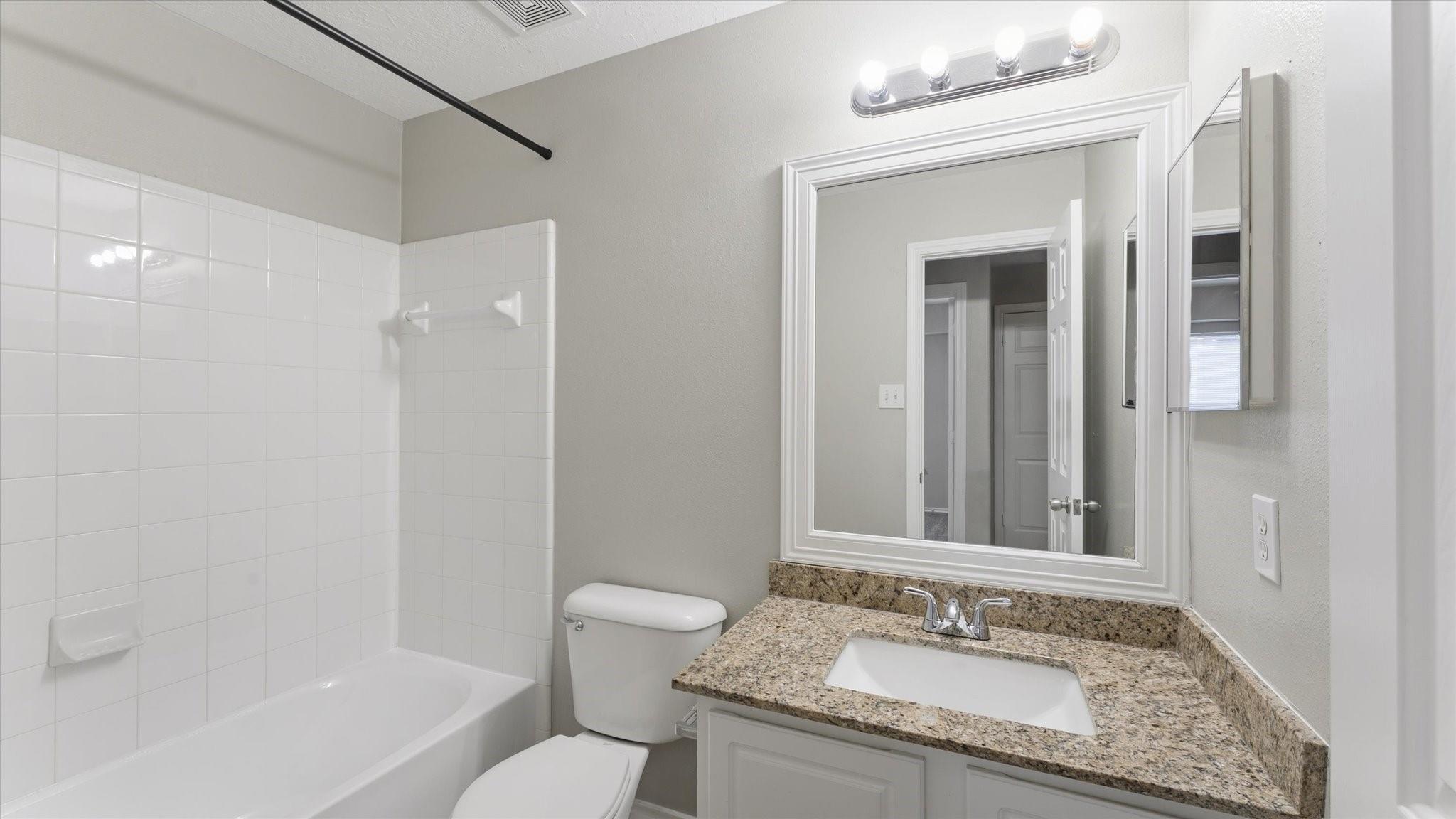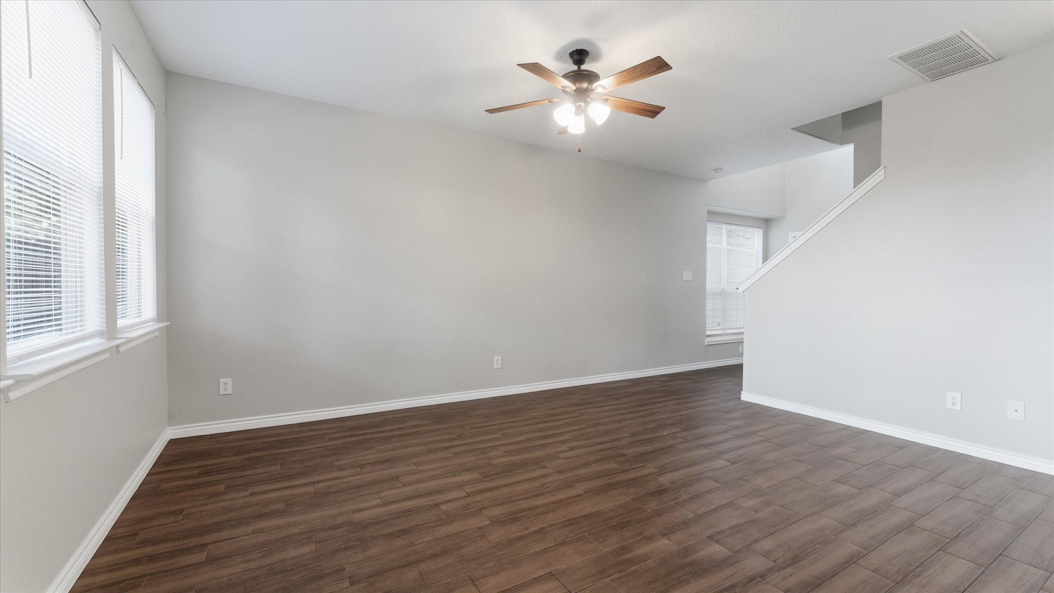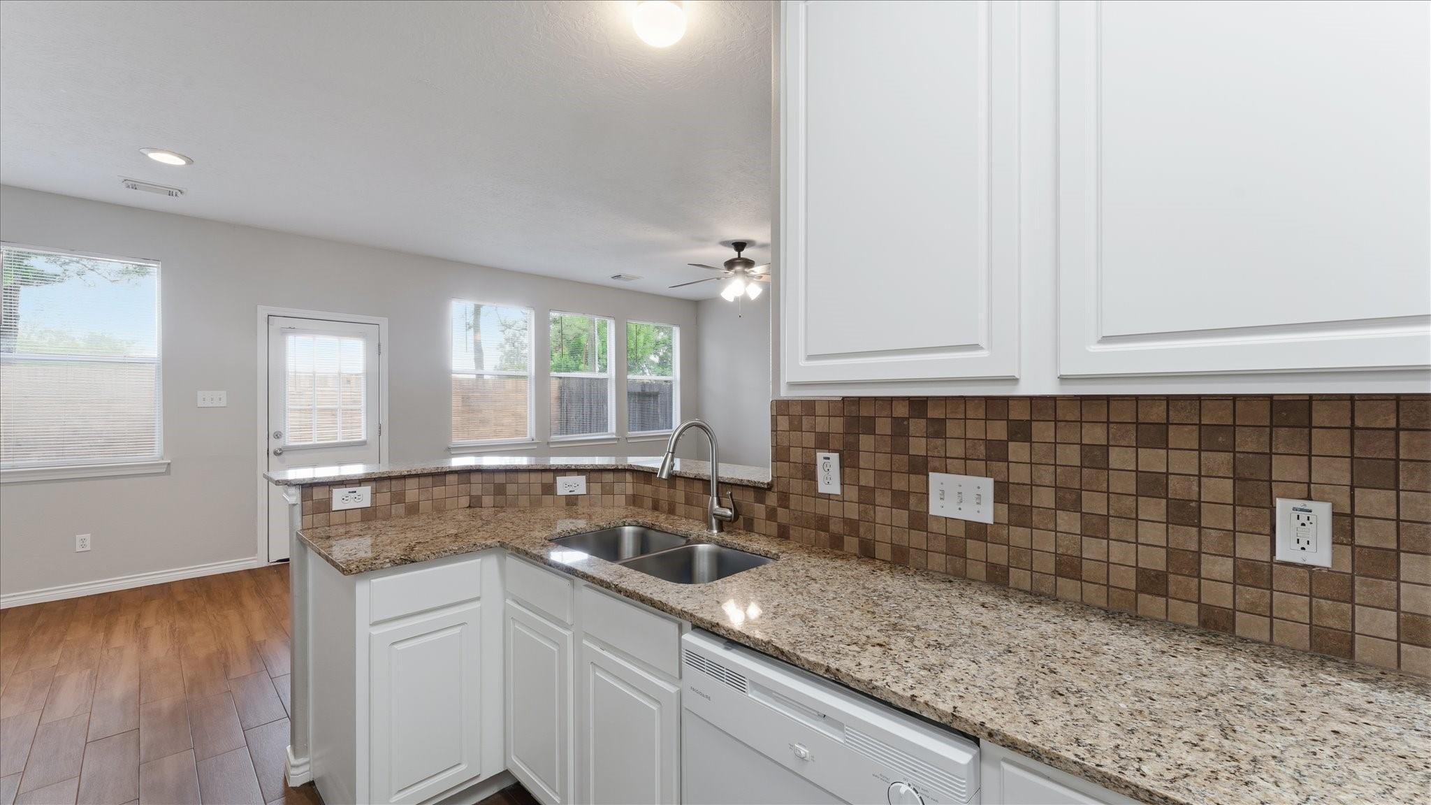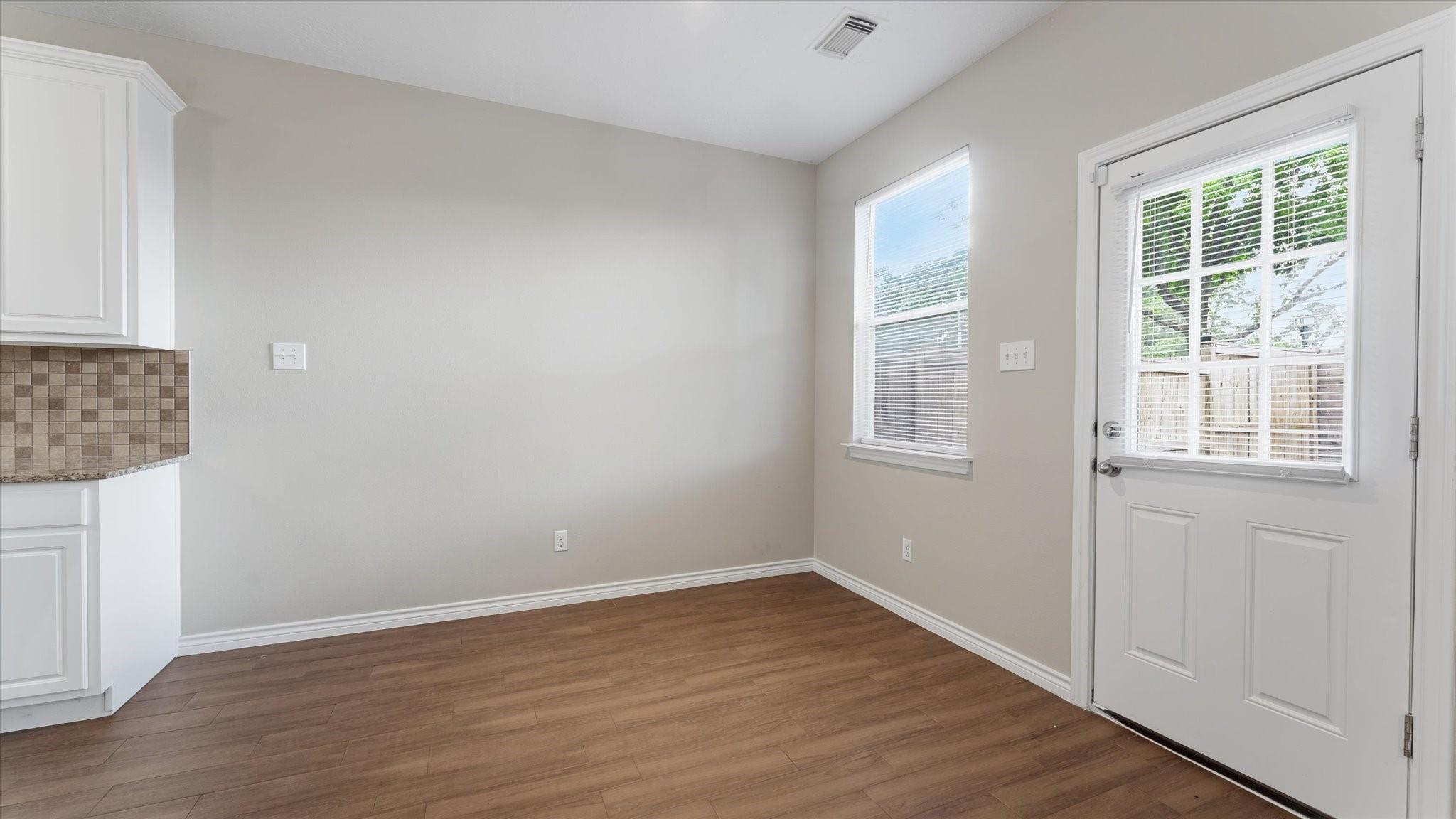 Charming townhome in the sought-after community of Eagle Springs! This 3BE, 2.5BA home offers a spacious layout with a large family room that flows seamlessly into the dining area, all filled with natural light. Neutral paint & durable vinyl plank flooring create a warm, inviting feel throughout. The open kitchen features granite counters, 42” cabinets, 2 pantries, ample prep space & a SS refrigerator. Upstairs, a versatile flex space is perfect for a home office, workout area or gaming space. You’ll also find 2 secondary bedrooms & a shared bath. The primary suite is generously sized & includes a beautifully updated, spa-like bath with dual sinks, granite vanity, garden tub & separate shower. Enjoy added privacy with no rear neighbors & a brick wall backdrop. Additional highlights include a 2-car garage, recent roof (2020/2021), and 2024 paint & carpet. HOA maintains the home's exterior. Conveniently located near Beltway 8, shopping, dining, and Eagle Springs’ exceptional amenities.