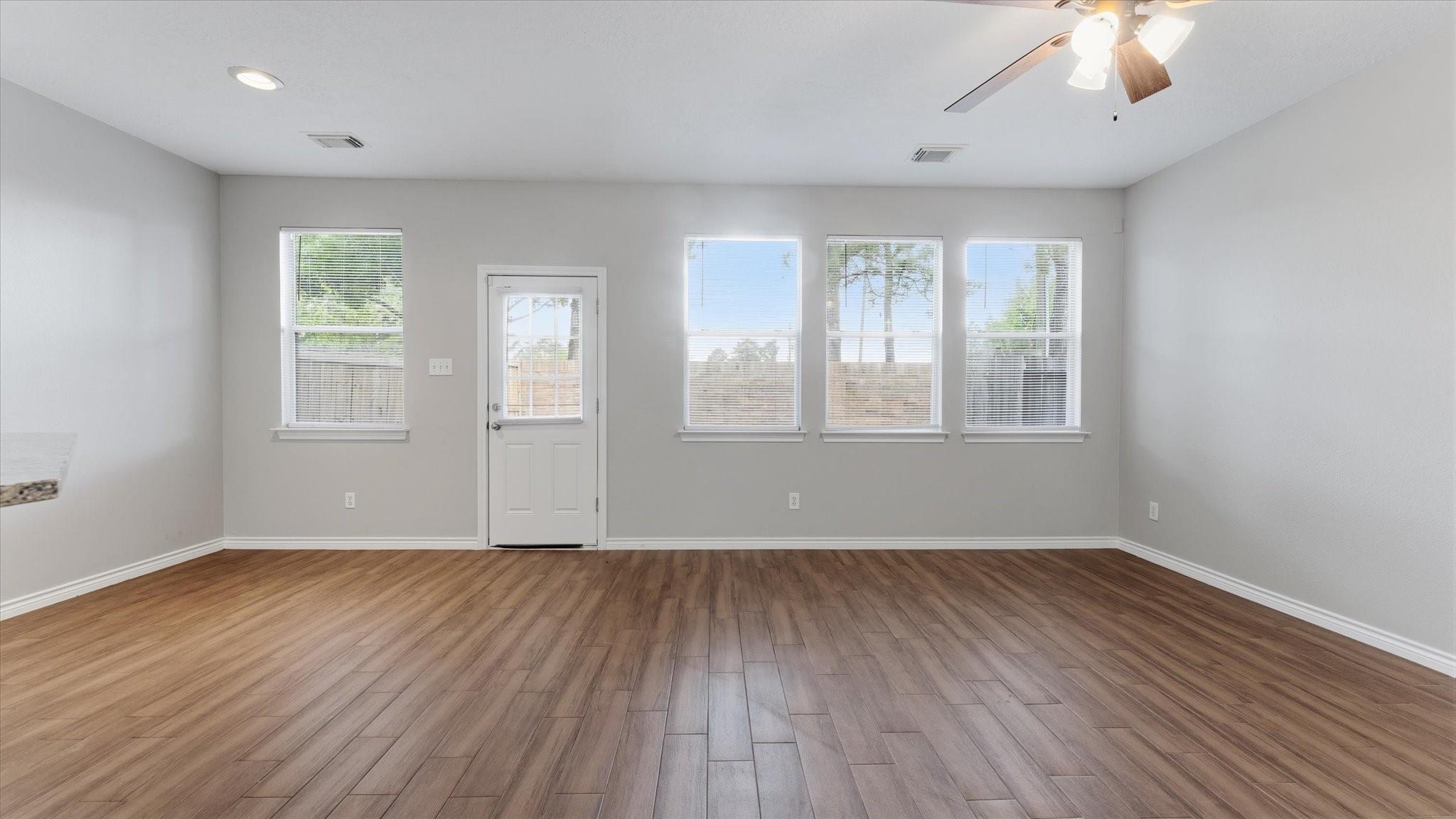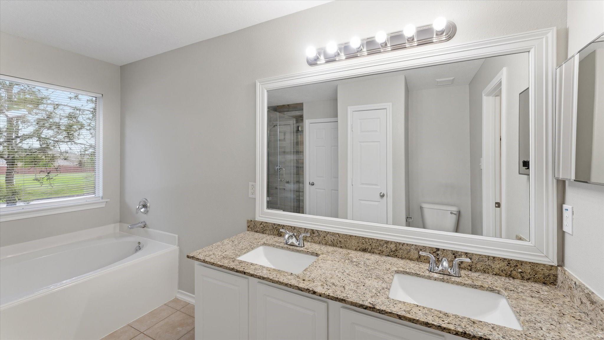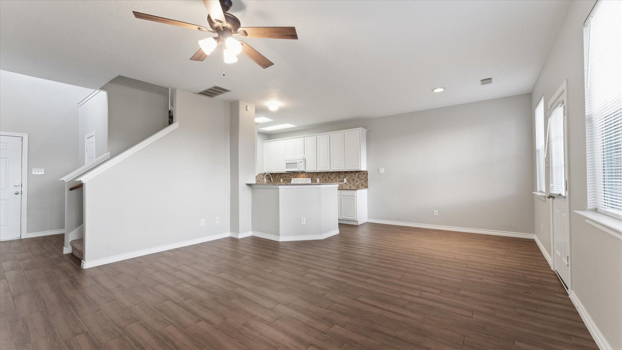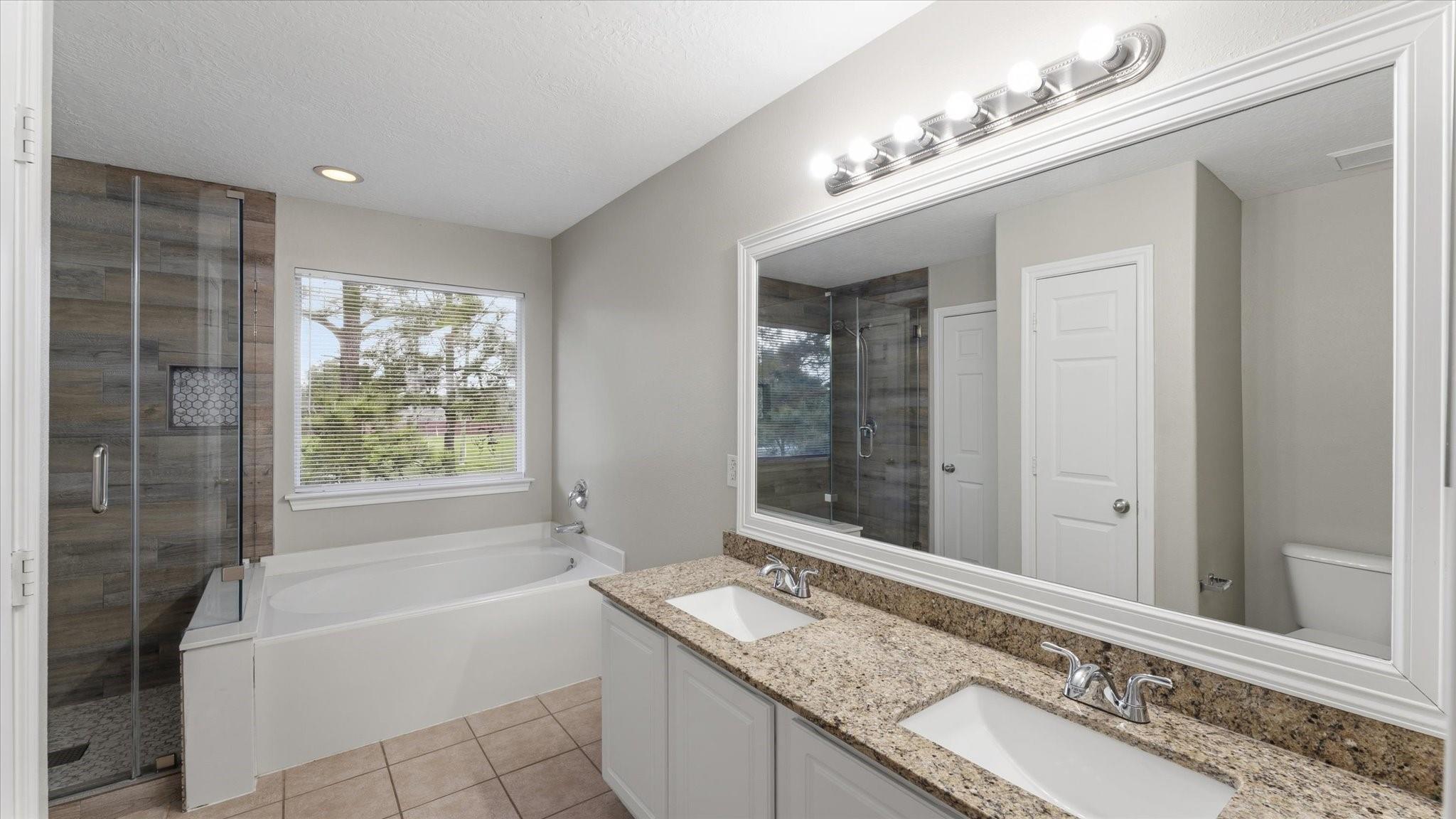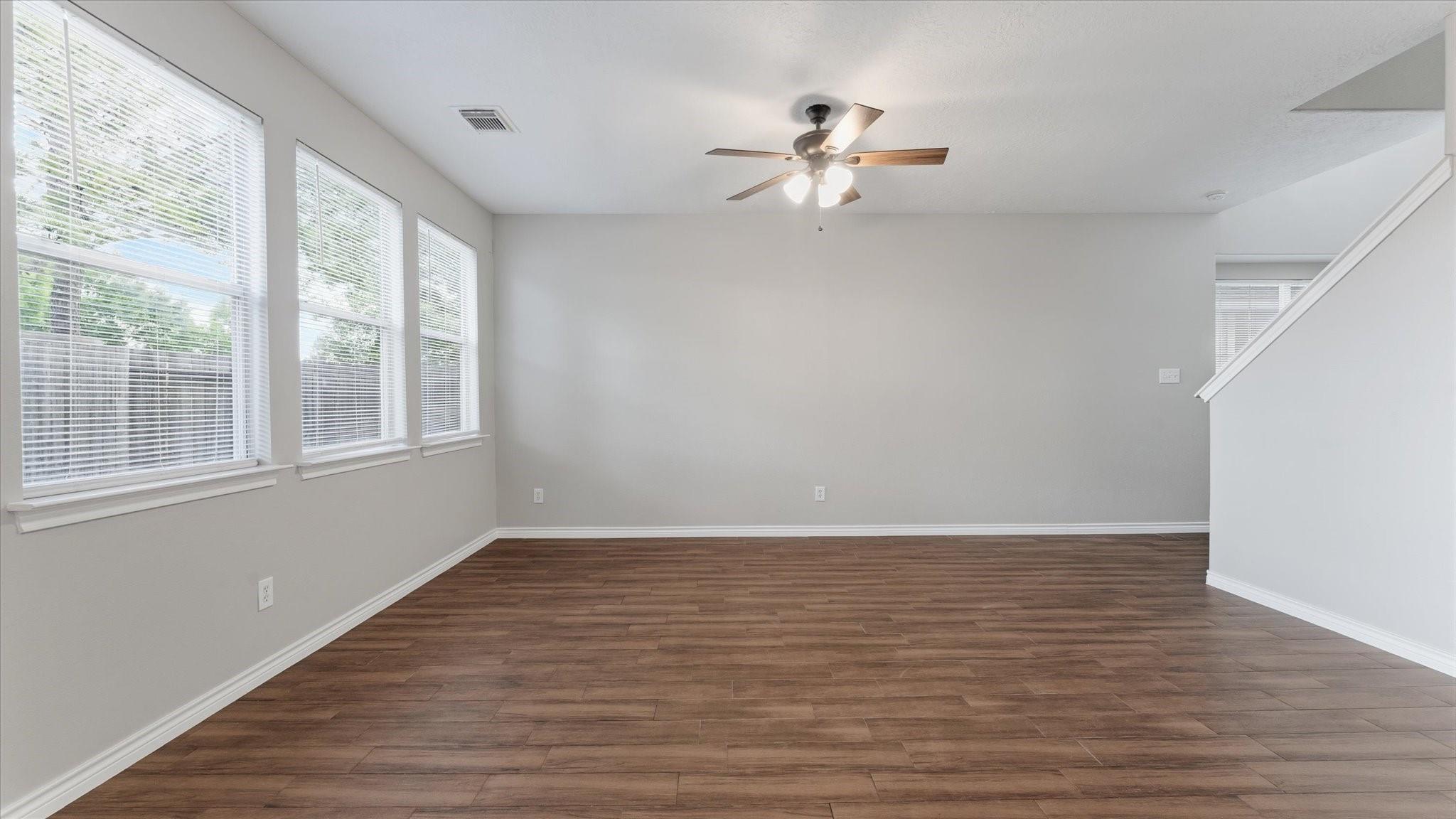 Charming townhome in the sought-after community of Eagle Springs! This 3BE, 2.5BA home offers a spacious layout with a large family room that flows seamlessly into the dining area, all filled with natural light. Neutral paint & durable vinyl plank flooring create a warm, inviting feel throughout. The open kitchen features granite counters, 42” cabinets, 2 pantries, ample prep space & a SS refrigerator. Upstairs, a versatile flex space is perfect for a home office, workout area or gaming space. You’ll also find 2 secondary bedrooms & a shared bath. The primary suite is generously sized & includes a beautifully updated, spa-like bath with dual sinks, granite vanity, garden tub & separate shower. Enjoy added privacy with no rear neighbors & a brick wall backdrop. Additional highlights include a 2-car garage, recent roof (2020/2021), and 2024 paint & carpet. HOA maintains the home's exterior. Conveniently located near Beltway 8, shopping, dining, and Eagle Springs’ exceptional amenities.