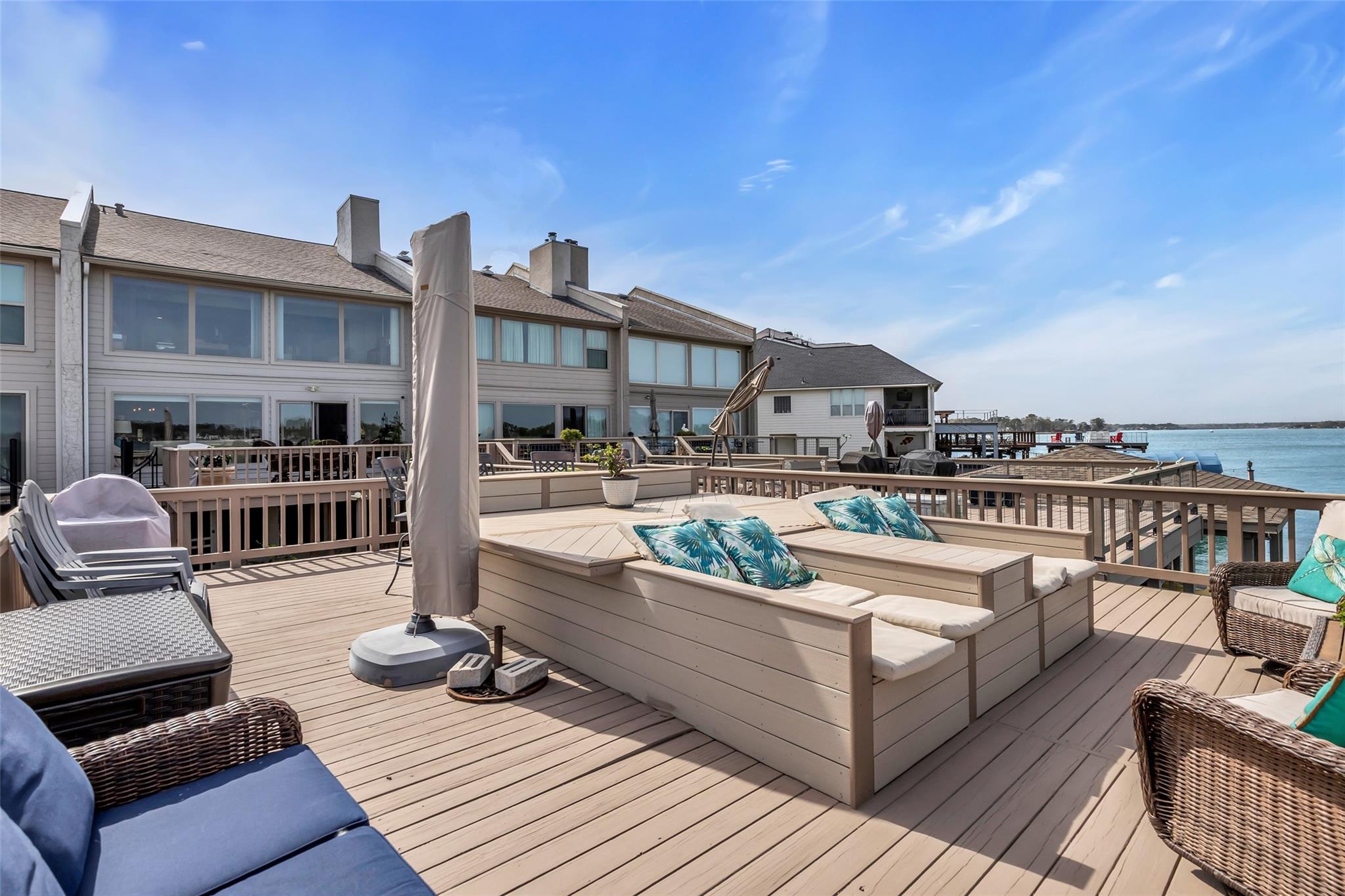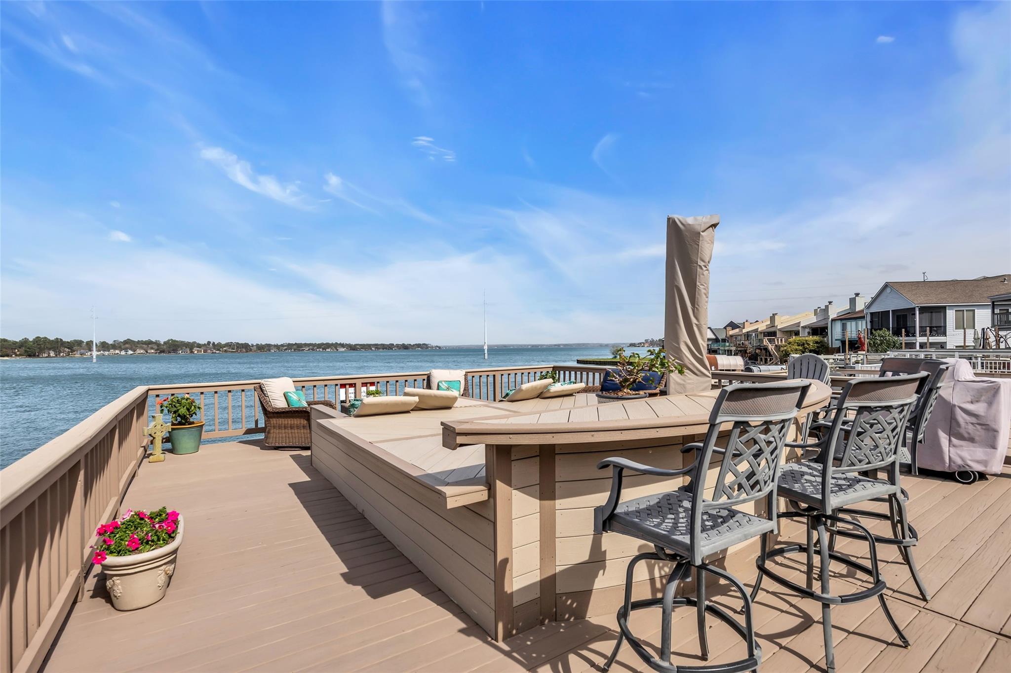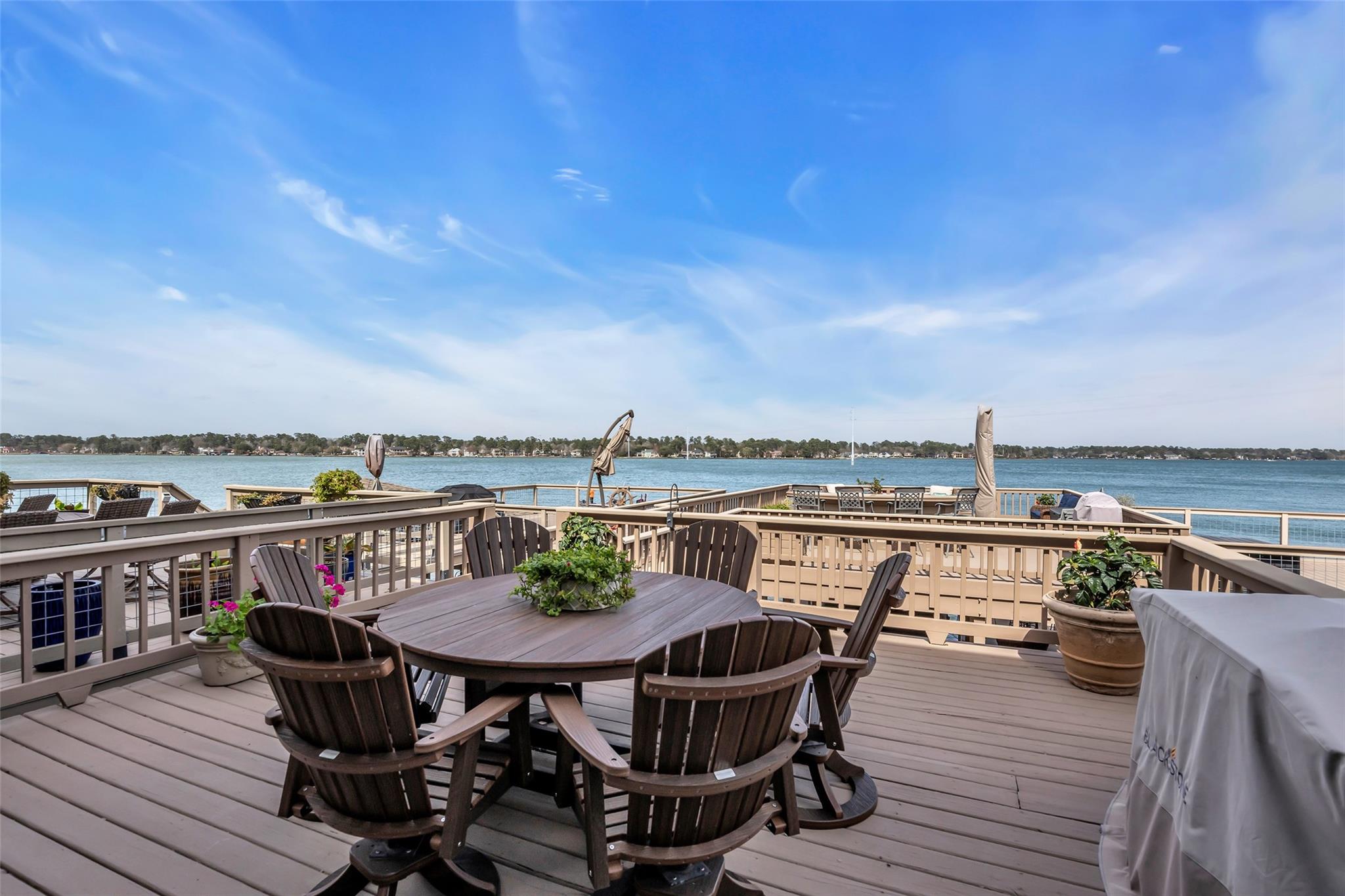 Welcome home to your beautiful waterfront paradise in April Sound. Very well maintained 3/2.5/2 home with many awesome updates. Gourmet kitchen with large breakfast bar ideal for family gatherings. Lots of counterspace and cabinets with double pantry cabinets. Family room has motorized window coverings and fireplace. All bedrooms up with Primary featuring sitting area, fireplace and high ceilings. Primary bath includes double vanity with cabinet with granite. Frameless shower has double shower heads and soaking tub. Game room located on bottom floor with access to outdoor patio. Enjoy your days and evenings on the oversized deck with built in seating. Included is a boat slip, two jet ski lifts and deep-water access. Community offers 24-hour security and much, much more. This location is unbelievable and a great place to call home.