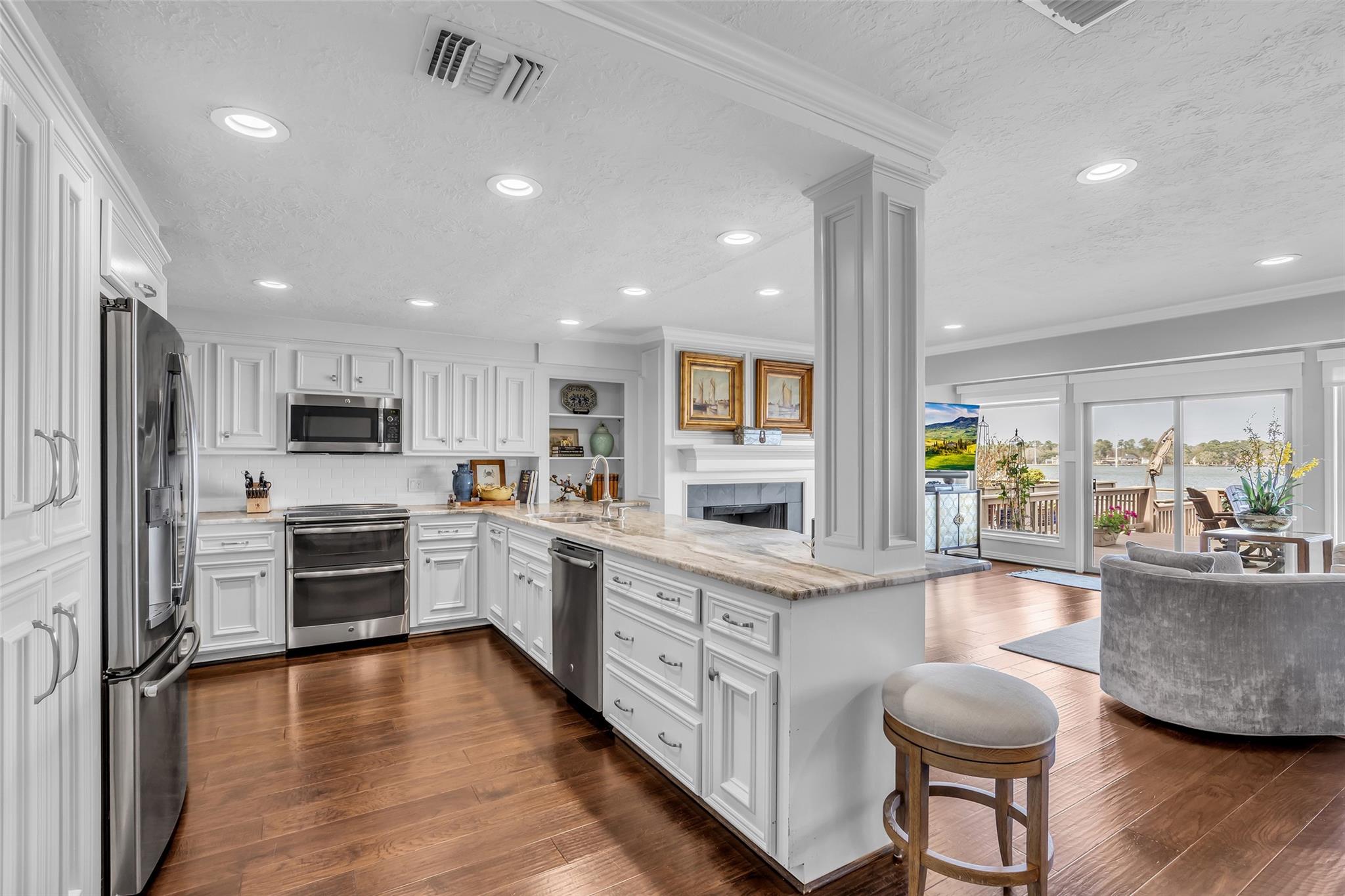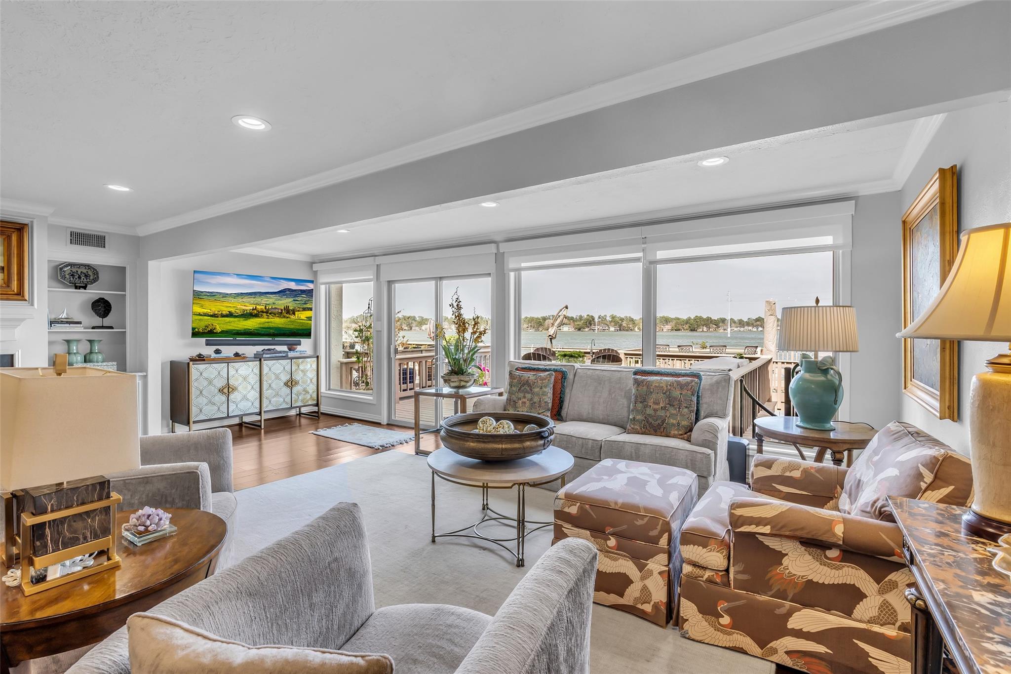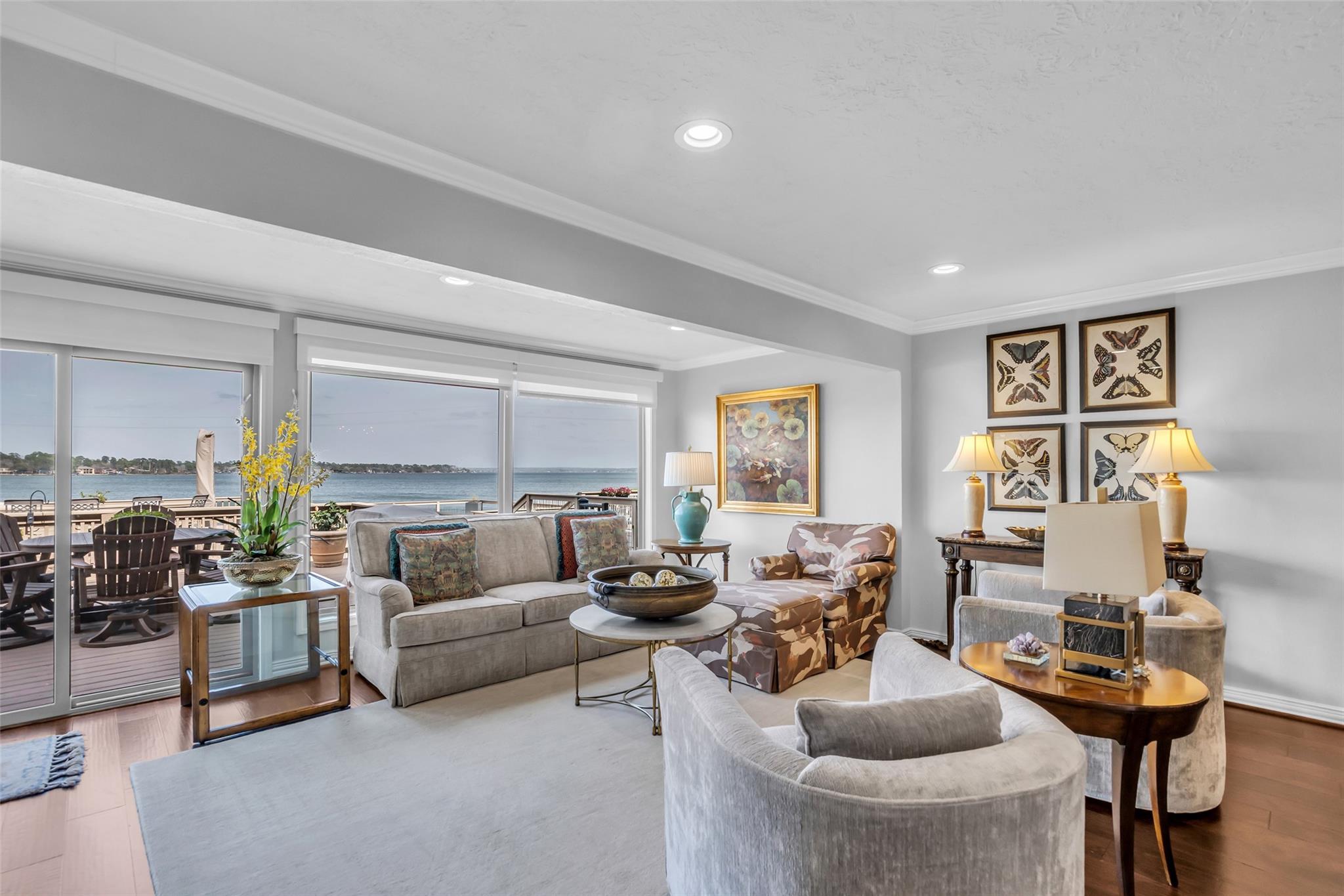Welcome home to your beautiful waterfront paradise in April Sound. Very well maintained 3/2.5/2 home with many awesome updates. Gourmet kitchen with large breakfast bar ideal for family gatherings. Lots of counterspace and cabinets with double pantry cabinets. Family room has motorized window coverings and fireplace. All bedrooms up with Primary featuring sitting area, fireplace and high ceilings. Primary bath includes double vanity with cabinet with granite. Frameless shower has double shower heads and soaking tub. Game room located on bottom floor with access to outdoor patio. Enjoy your days and evenings on the oversized deck with built in seating. Included is a boat slip, two jet ski lifts and deep-water access. Community offers 24-hour security and much, much more. This location is unbelievable and a great place to call home.