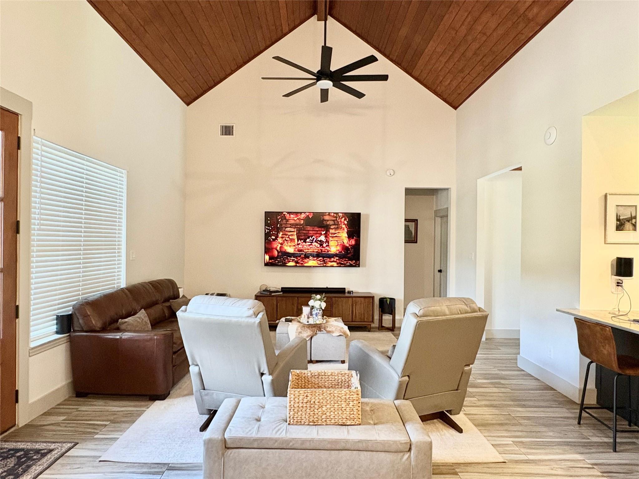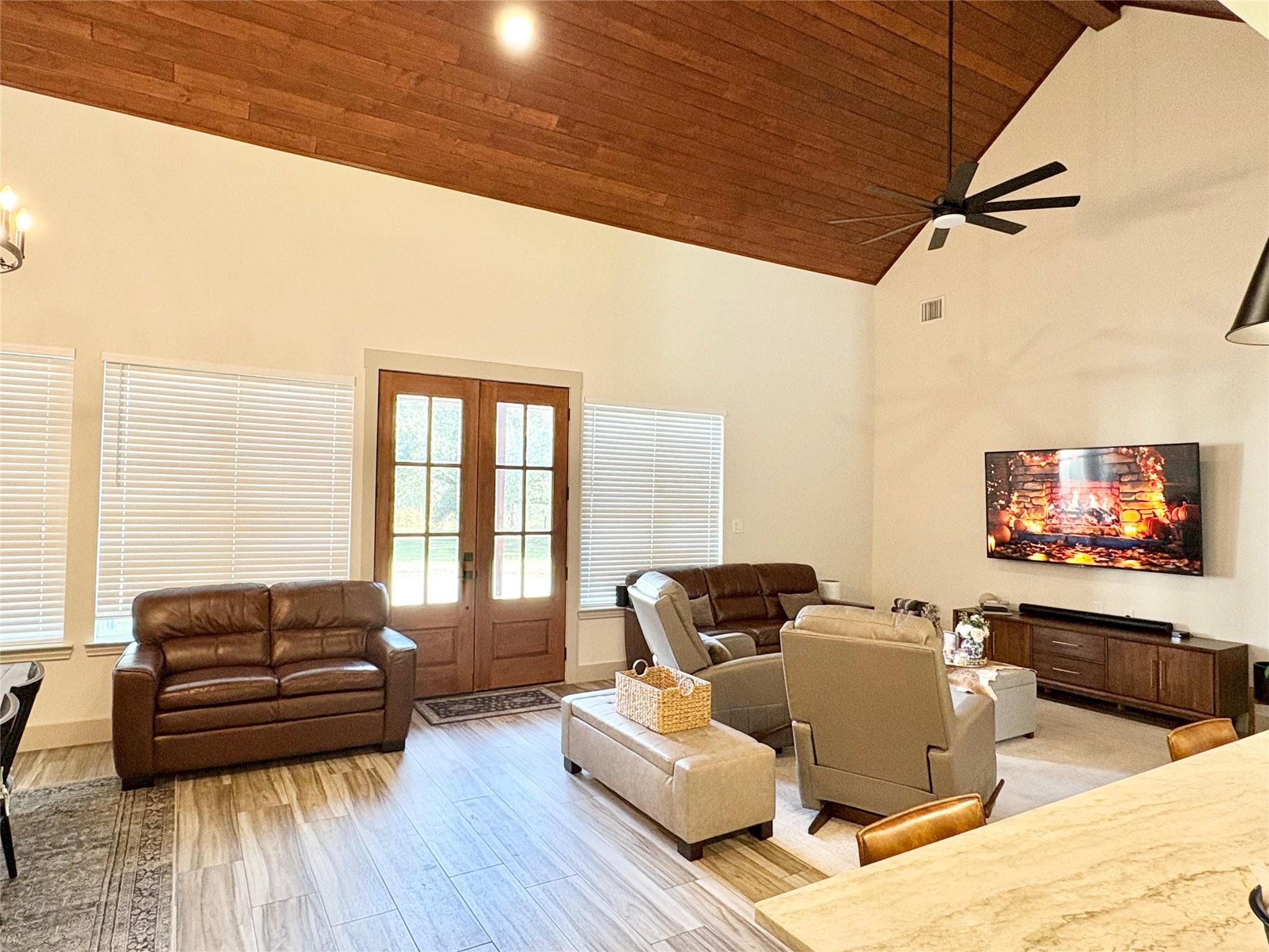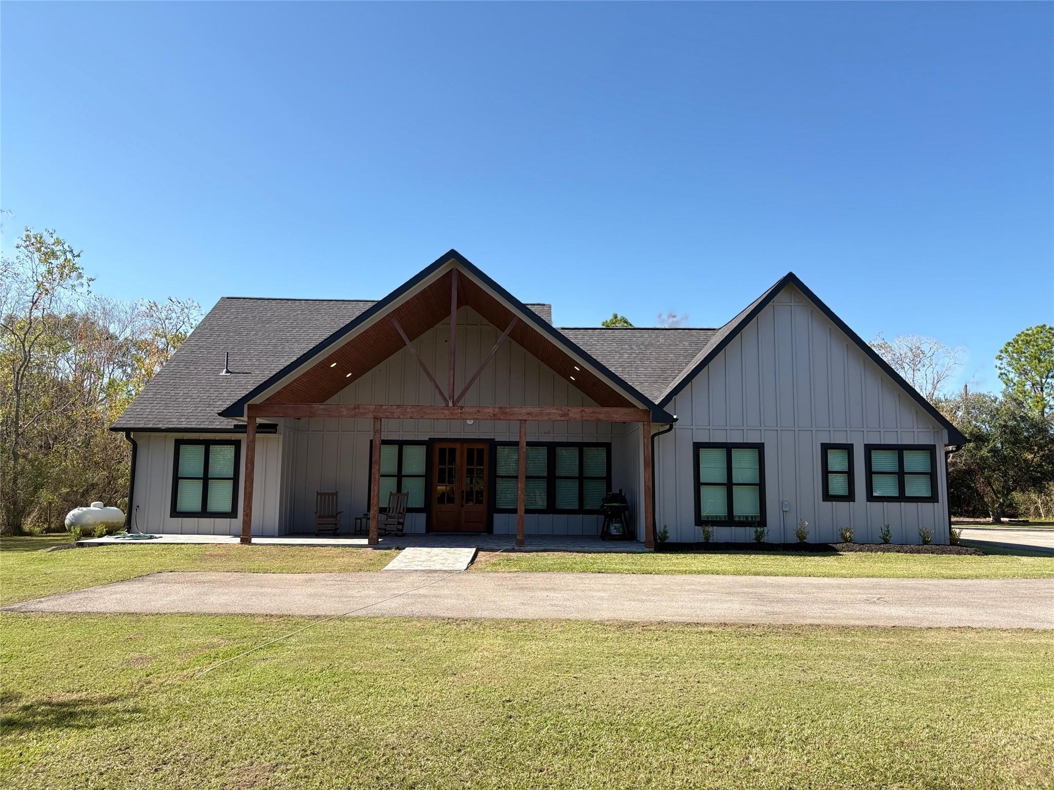 Custom Modern Farmhouse with Finished on 2.453 Acres built in 2021, featuring a thoughtfully designed main residence. The 1,950 sq ft home offers 3 bedrooms and 2 bathrooms, 20’ cathedral ceilings in the living room, a 14’ cathedral ceiling in the primary suite, 9’ ceilings throughout, solid-core doors, butler’s pantry, enclosed wet bar, and home automatic generator. Oversized front and rear porches and an oversized garage. The property includes a 3,000 sq ft custom red-iron accessory building with approximately 1,350 sq ft of finished, climate-controlled interior space. This versatile structure has multiple enclosed rooms, a large open flex area, a kitchenette, and restroom facilities, along with 9’ interior ceilings, high glass entry doors, 16’ in the main bay, two overhead doors, and two man doors, elevated observation deck, with access to community ATV trails and fishing pond. Ample room for expansion. Low taxes, easy access to FM-1462, and built with quality.