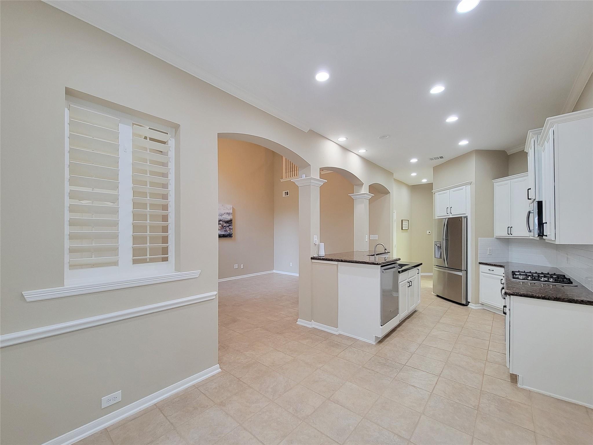 InteriorFloors:Laminate,TileCountertop:GraniteBathroom Description:Full Secondary Bathroom Down,Half Bath,Primary Bath: Shower Only,Secondary Bath(s): Soaking TubBedroom Desc:2 Bedrooms Up,Primary Bed - 1st Floor,Walk-In ClosetKitchen Desc:Breakfast Bar,Kitchen open to Family Room,PantryRoom Description:Living/Dining ComboHeating:Central GasCooling:Central ElectricWasher/Dryer Conn:YesDishwasher:YesDisposal:YesMicrowave:YesRange:Freestanding Range,Gas CooktopOven:Electric Oven,Freestanding OvenAppliances:Electric Dryer Connection,Gas Dryer ConnectionsEnergy Feature:Attic Vents,Ceiling Fans,Digital Program Thermostat,Energy Star/CFL/LED Lights,GeneratorInterior:Alarm System - Owned