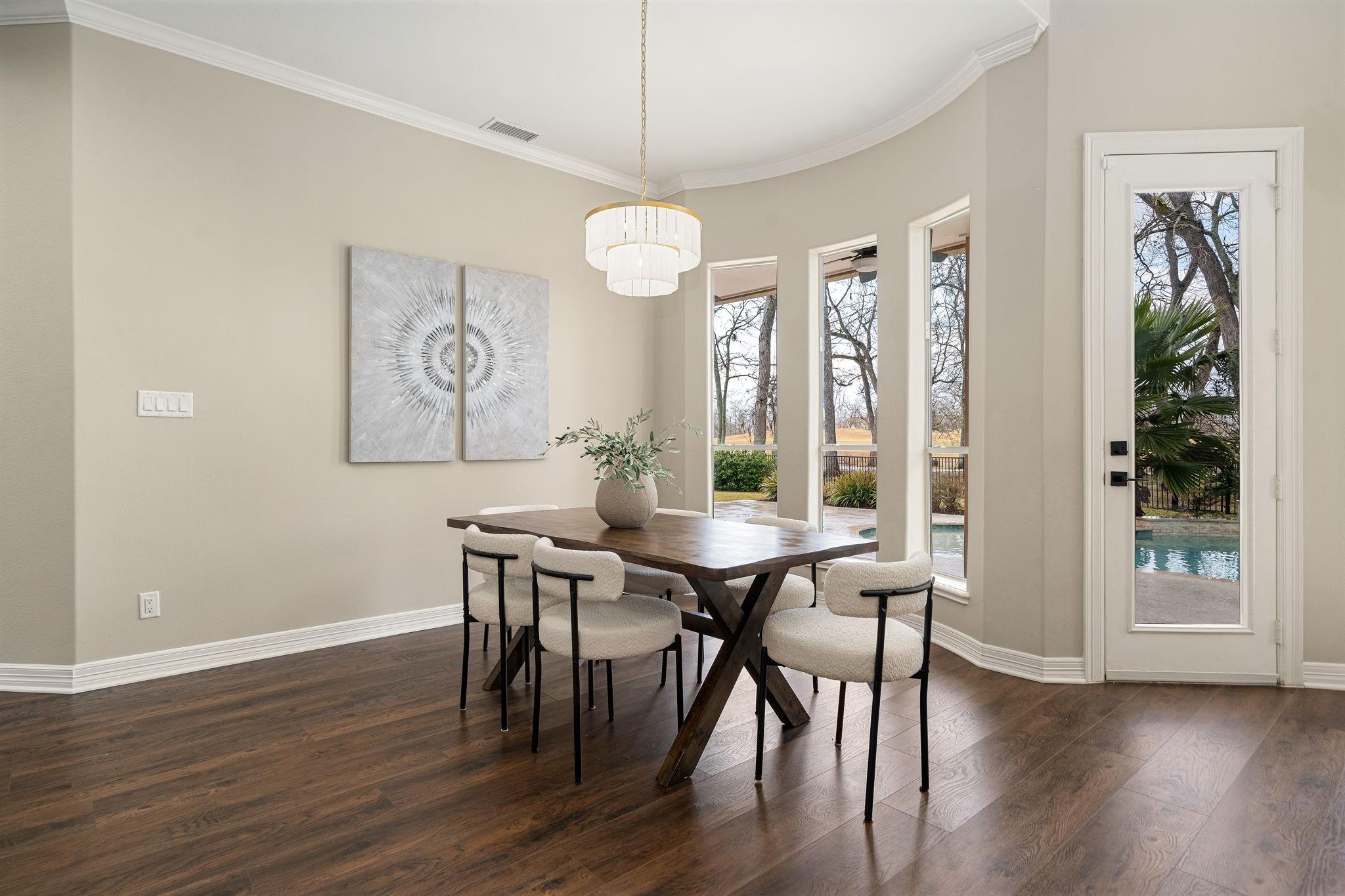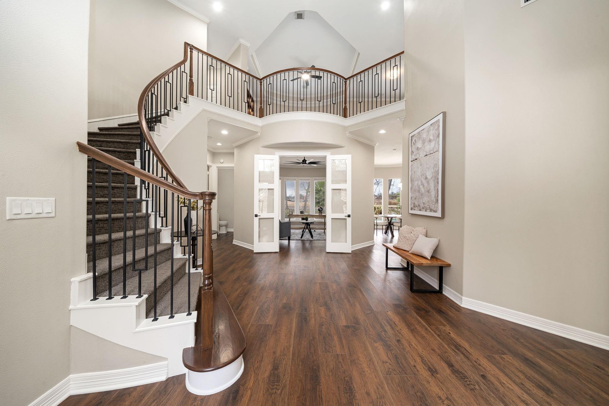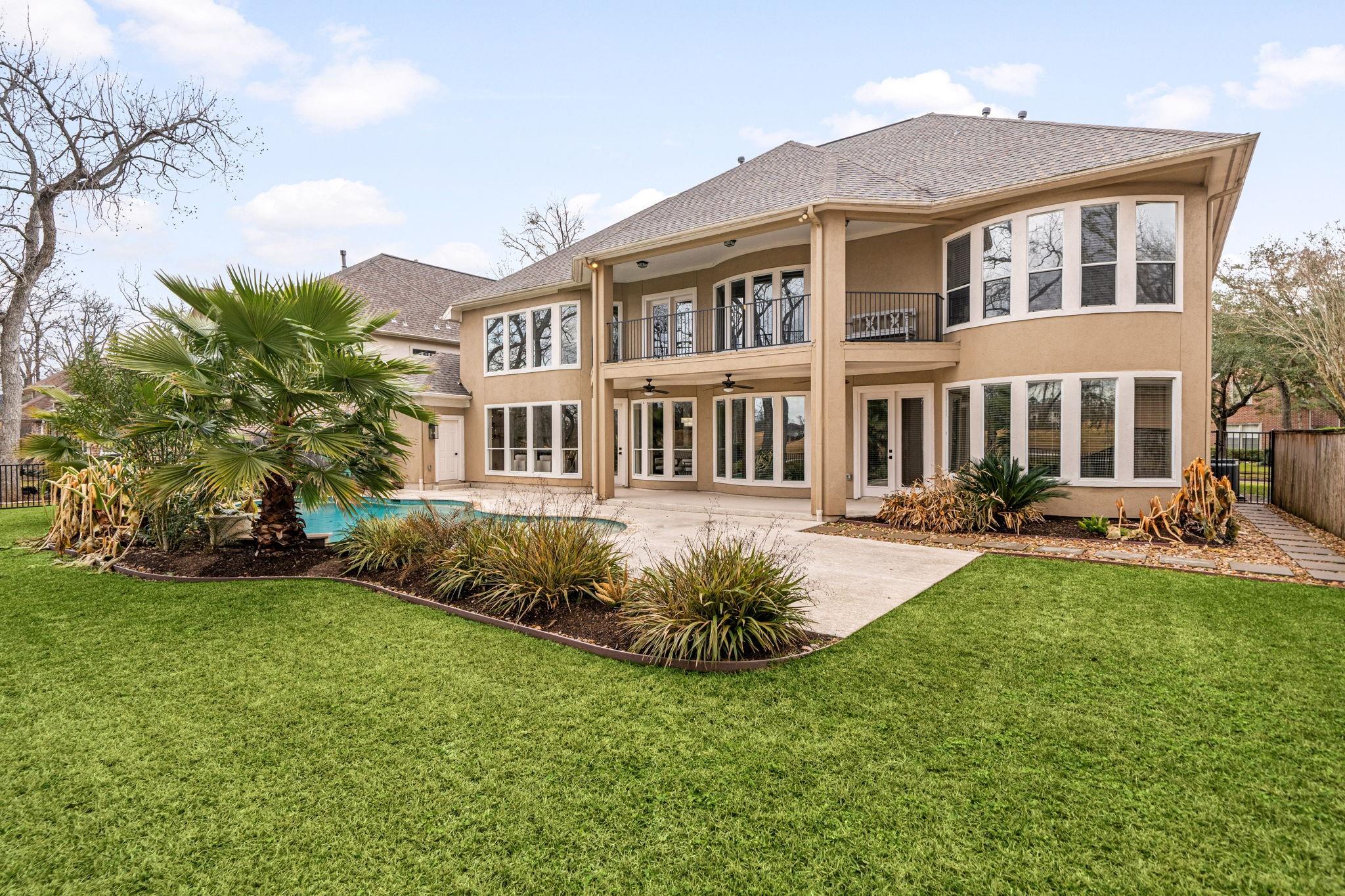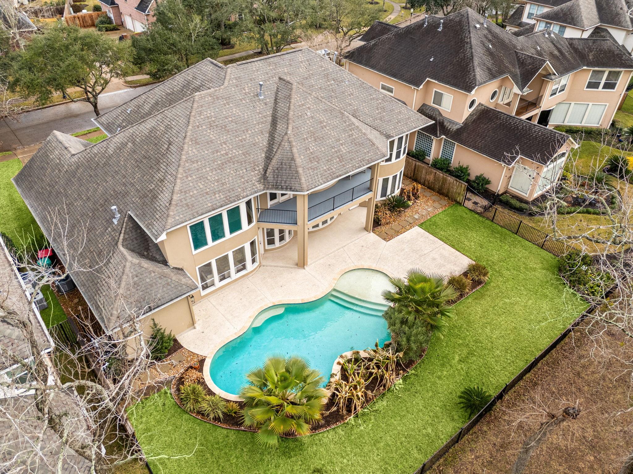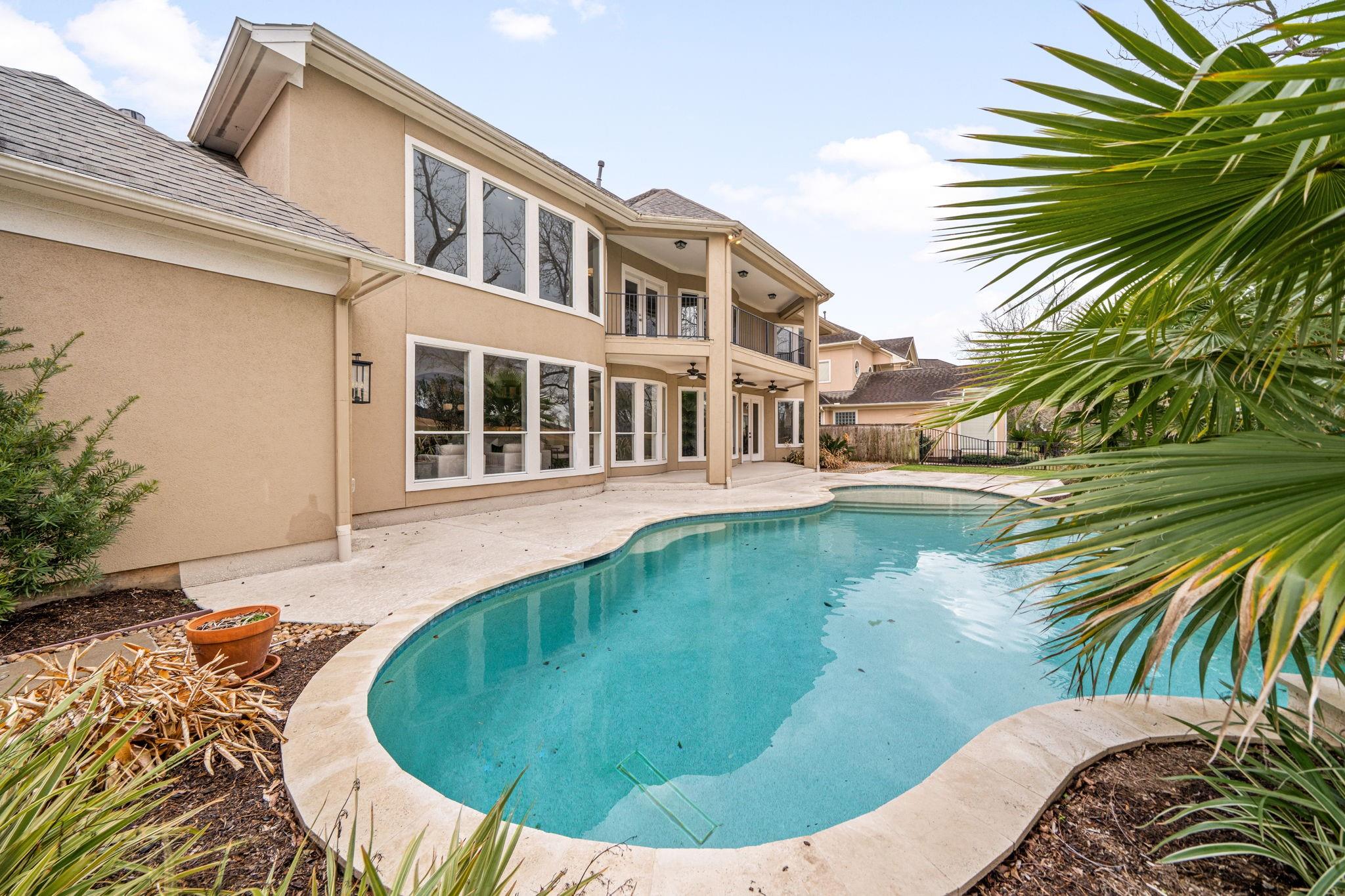 Welcome to this stunning home located in Sienna Master-planned, situated on a premium golf course lot. This spacious home is designed for both everyday comfort and luxury living, featuring 5 bedrooms, 4.5 bathrooms, a dedicated home office, and a large game room. The grand entry with high ceilings and formal dining room creates an inviting atmosphere. The updated living area includes a sleek electric fireplace and large windows overlooking the resort-style pool. The kitchen has been upgraded with extended cabinetry, modern finishes, and a redesigned walk-in pantry. Step outside to your private retreat, complete with a saltwater pool and lush landscaping. Additional features include a 3-car garage, tankless water heater, and designer finishes throughout the home. Located in the top-rated Fort Bend ISD school district, this is a rare opportunity to own a home in one of Sienna's most prestigious neighborhoods.