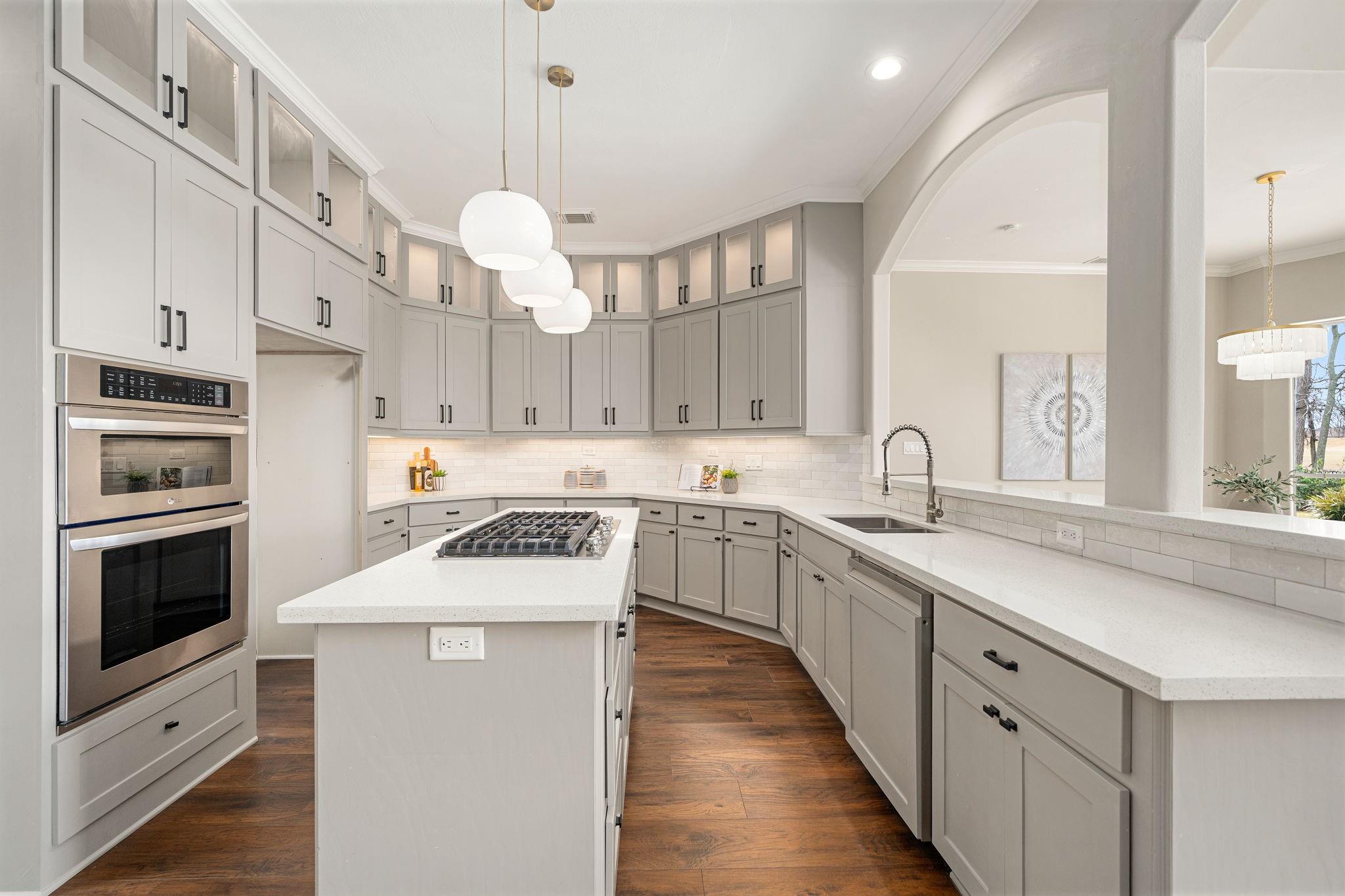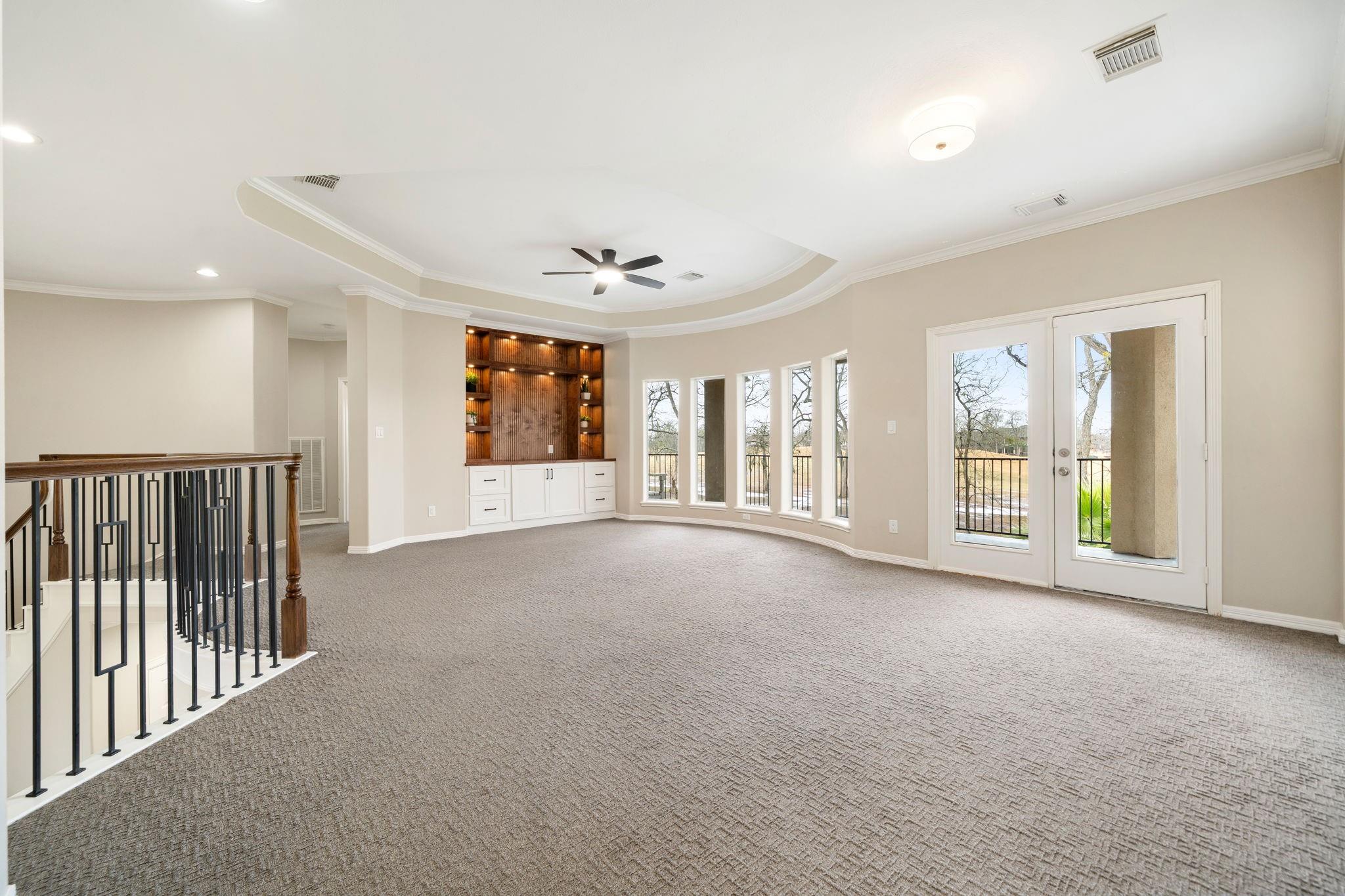 InteriorFireplace:2/Electric FireplaceFloors:Carpet,Tile,Vinyl PlankCountertop:QuartzBathroom Description:Half Bath,Primary Bath: Double Sinks,Primary Bath: Shower Only,Primary Bath: Soaking Tub,Vanity AreaBedroom Desc:En-Suite Bath,Primary Bed - 1st Floor,Sitting Area,Walk-In ClosetKitchen Desc:Breakfast Bar,Island w/ Cooktop,Kitchen open to Family Room,Pantry,Soft Closing Cabinets,Under Cabinet Lighting,Walk-in PantryRoom Description:Breakfast Room,Butlers Pantry,Formal Dining,Gameroom Up,Home Office/Study,Living Area - 1st Floor,Utility Room in HouseHeating:Central GasCooling:Central ElectricConnections:Electric Dryer Connections,Gas Dryer Connections,Washer ConnectionsDishwasher:YesMicrowave:YesRange:Gas CooktopOven:Electric OvenEnergy Feature:Ceiling Fans,Digital Program Thermostat,Insulation - Blown Fiberglass,Tankless/On-Demand H2O HeaterInterior:Alarm System - Owned,Balcony,Crown Molding,Fire/Smoke Alarm,Formal Entry/Foyer,High Ceiling,Prewired for Alarm System,Water Softener - Owned