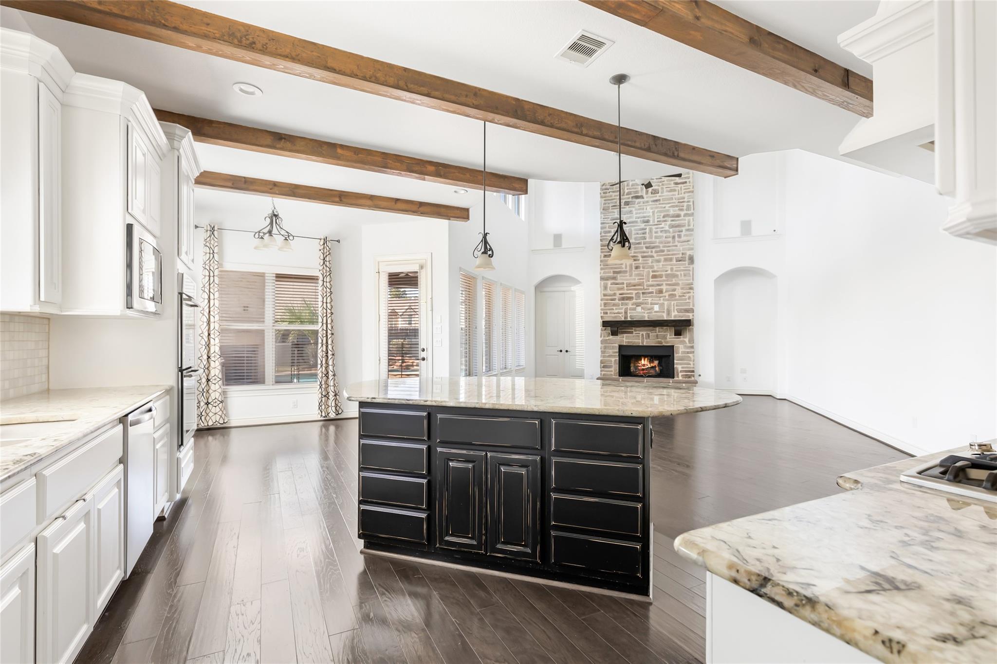 InteriorFireplace:2/Gas Connections,Gaslog FireplacePets:Case By CaseSmoking Allowed:NoFloors:Carpet,Engineered Wood,TileBathroom Description:Full Secondary Bathroom Down,Primary Bath: Double Sinks,Primary Bath: Jetted Tub,Primary Bath: Separate Shower,Vanity AreaBedroom Desc:2 Bedrooms Down,En-Suite Bath,Primary Bed - 1st Floor,Sitting Area,Walk-In ClosetKitchen Desc:Breakfast Bar,Island w/o Cooktop,Kitchen open to Family Room,Under Cabinet Lighting,Walk-in PantryRoom Description:Breakfast Room,Butlers Pantry,Entry,Family Room,Formal Dining,Gameroom Up,Home Office/Study,Living Area - 1st Floor,Living Area - 2nd Floor,Media,Utility Room in HouseHeating:Central GasCooling:Central ElectricConnections:Electric Dryer Connections,Washer ConnectionsDishwasher:YesDisposal:YesCompactor:NoMicrowave:YesRange:Gas CooktopOven:Double OvenIce Maker:NoEnergy Feature:Attic Vents,Ceiling Fans,Digital Program Thermostat,High-Efficiency HVAC,Insulated/Low-E windows,Insulation - Batt,Other Energy Features,Radiant Attic BarrierInterior:Alarm System - Owned,Balcony,Crown Molding,Dryer Included,Fire/Smoke Alarm,Formal Entry/Foyer,High Ceiling,Refrigerator Included,Spa/Hot Tub,Washer Included,Wet Bar,Wine/Beverage Fridge,Wired for Sound