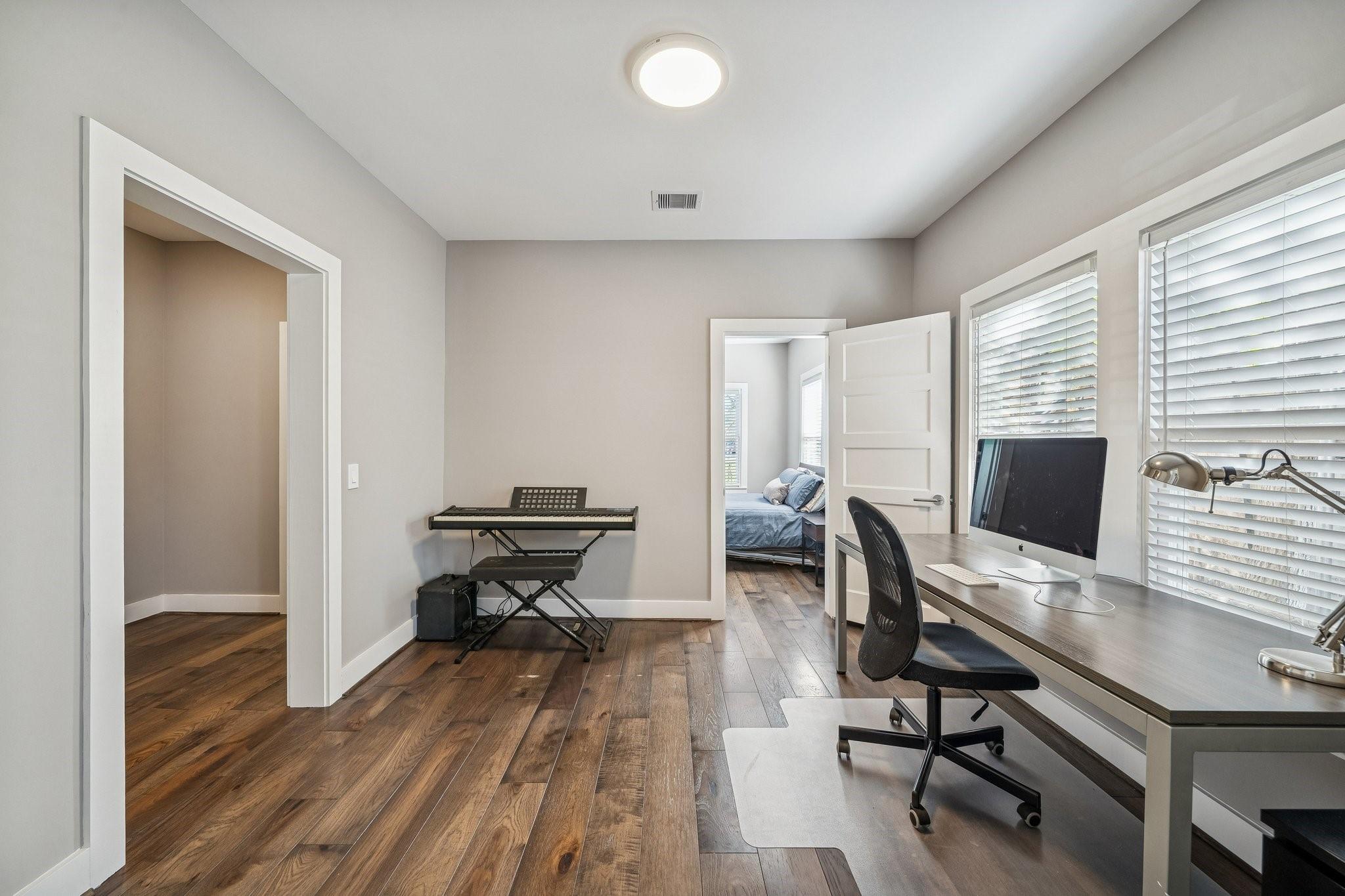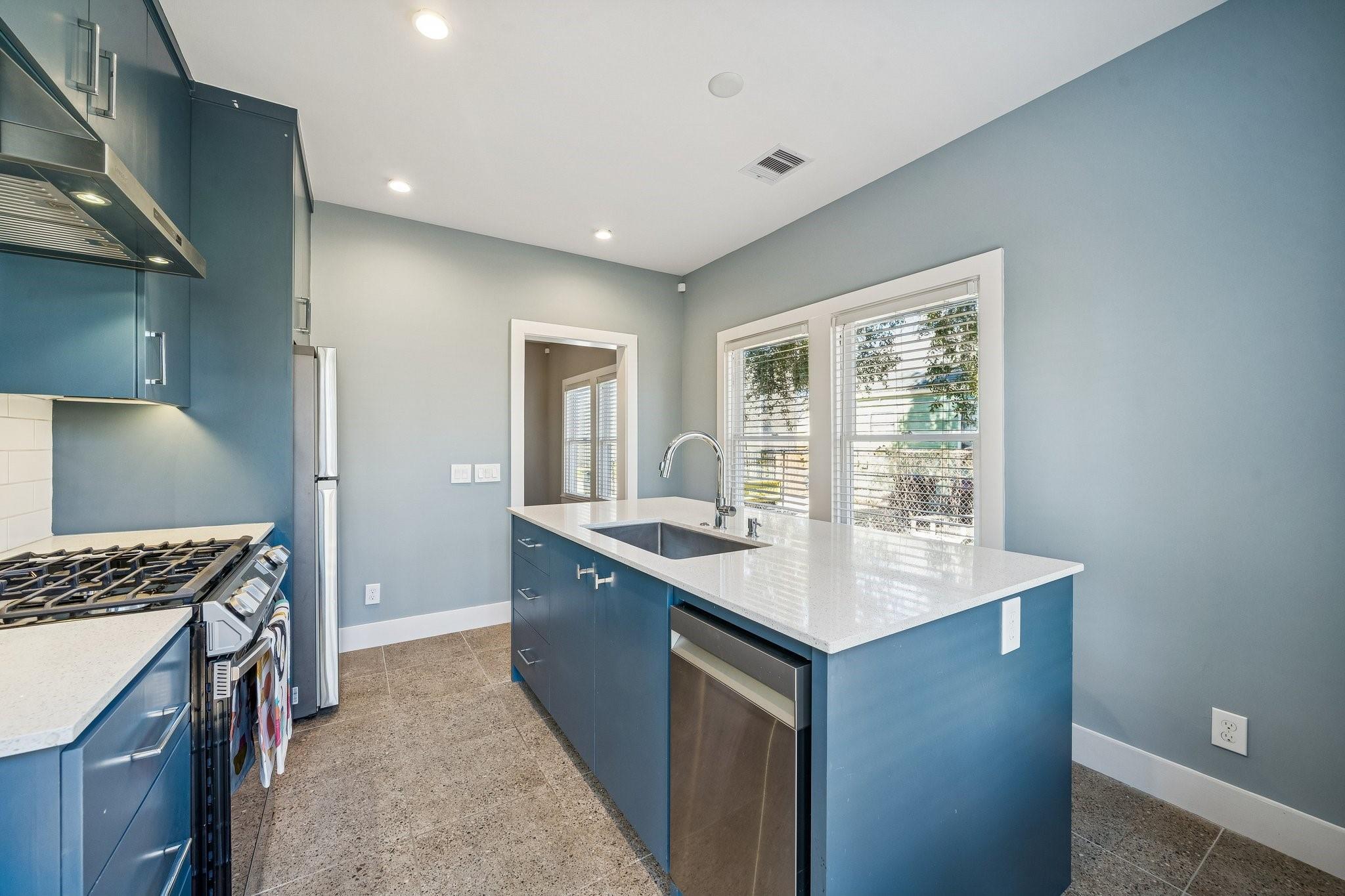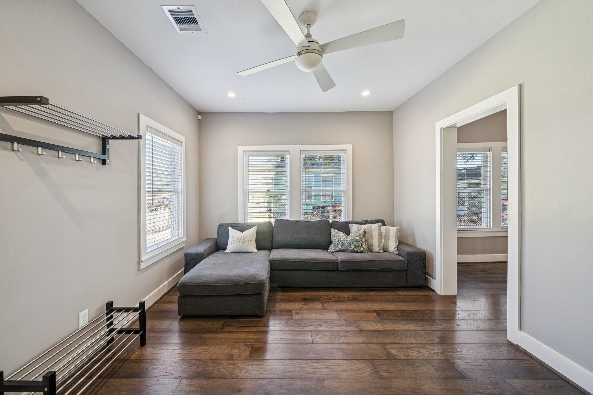 Remodeled / Updated + super cute Craftsman bungalow - 2 bed / 1 bath / 1 flex space. PEX plumbing + electrical updated (2020). BRAND NEW ROOF (2026). Kitchen - soft close drawers + doors, quartz counters + large island (seating for 3-4). All s/s appliances - gas range, 18” dishwasher, microwave inside pantry. Two spacious bedrooms with FLEX AREA between the 2 bedrooms – perfect for office, exercise space or game area! Bathroom - soft close drawers + doors, quartz counter, updated finishes, NEW toilet (2026). Laundry is in the same space – condensing Dryer (no venting needed). All appliances will convey! Engineered Hickory floors throughout - NO CARPET in this home. HUGE backyard - plenty of room for pets + people + parties, or to add on to the home! Steps to the Hike + Bike TRAIL (Pinckney Trail). 10 min walk to 2 METRO Rail stops – Quitman/Near Northside + Burnett Transit Center. Mins to Downtown, Wash. Ave, Heights, Buffalo Bayou Park, Memorial Drive + all major freeways