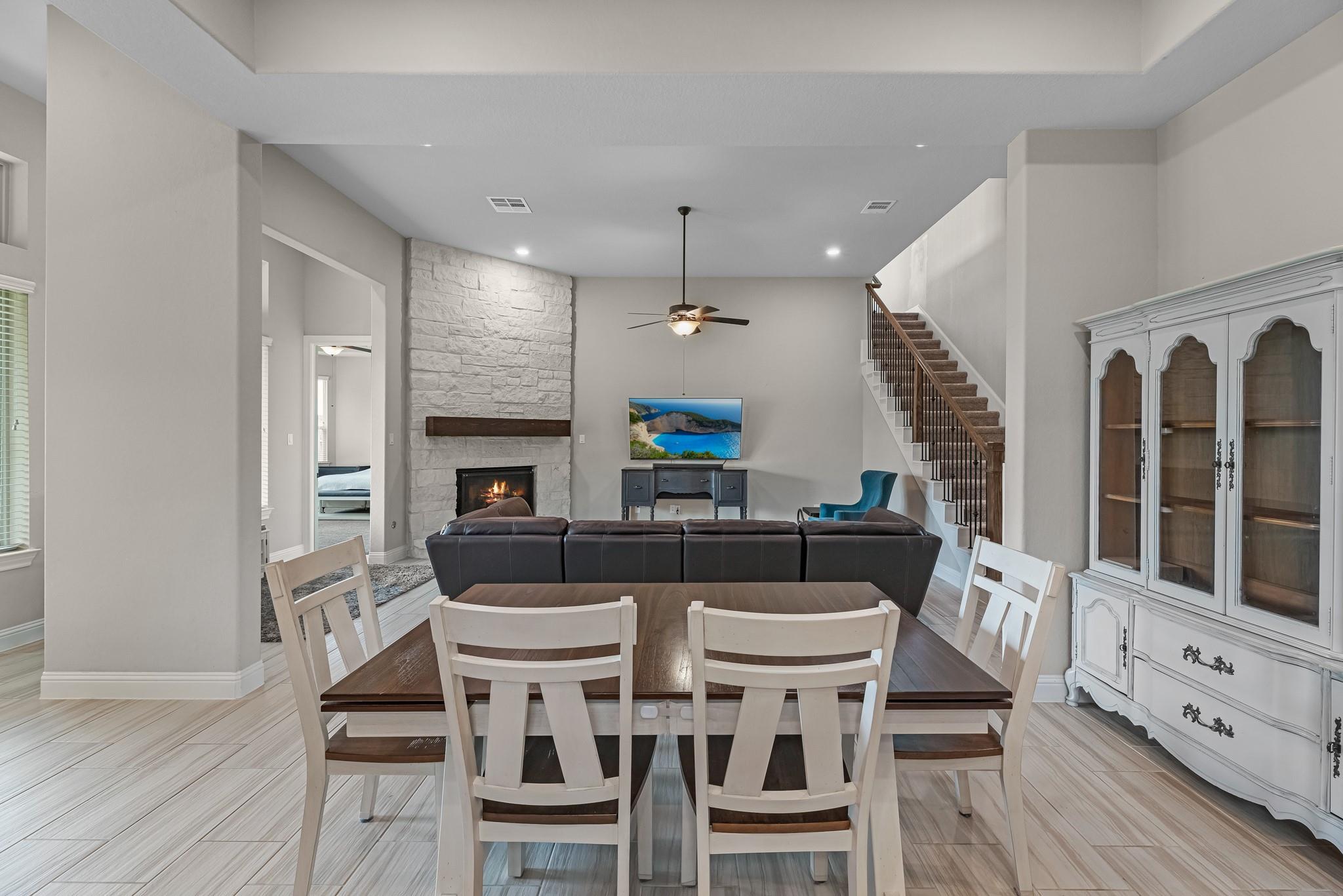 InteriorFireplace:1/Gas ConnectionsFloors:Carpet,TileCountertop:GraniteBathroom Description:Full Secondary Bathroom Down,Primary Bath: Double Sinks,Primary Bath: Separate Shower,Primary Bath: Soaking Tub,Secondary Bath(s): Tub/Shower ComboBedroom Desc:All Bedrooms Down,En-Suite Bath,Primary Bed - 1st Floor,Walk-In ClosetKitchen Desc:Island w/o Cooktop,Kitchen open to Family Room,PantryRoom Description:Breakfast Room,Entry,Gameroom Up,Home Office/Study,Kitchen/Dining Combo,Living Area - 1st Floor,Living/Dining Combo,Utility Room in HouseHeating:Central GasCooling:Central ElectricDishwasher:YesDisposal:YesCompactor:NoMicrowave:YesRange:Gas CooktopOven:Electric OvenIce Maker:NoInterior:Alarm System - Leased,Fire/Smoke Alarm,Formal Entry/Foyer,High Ceiling,Window Coverings