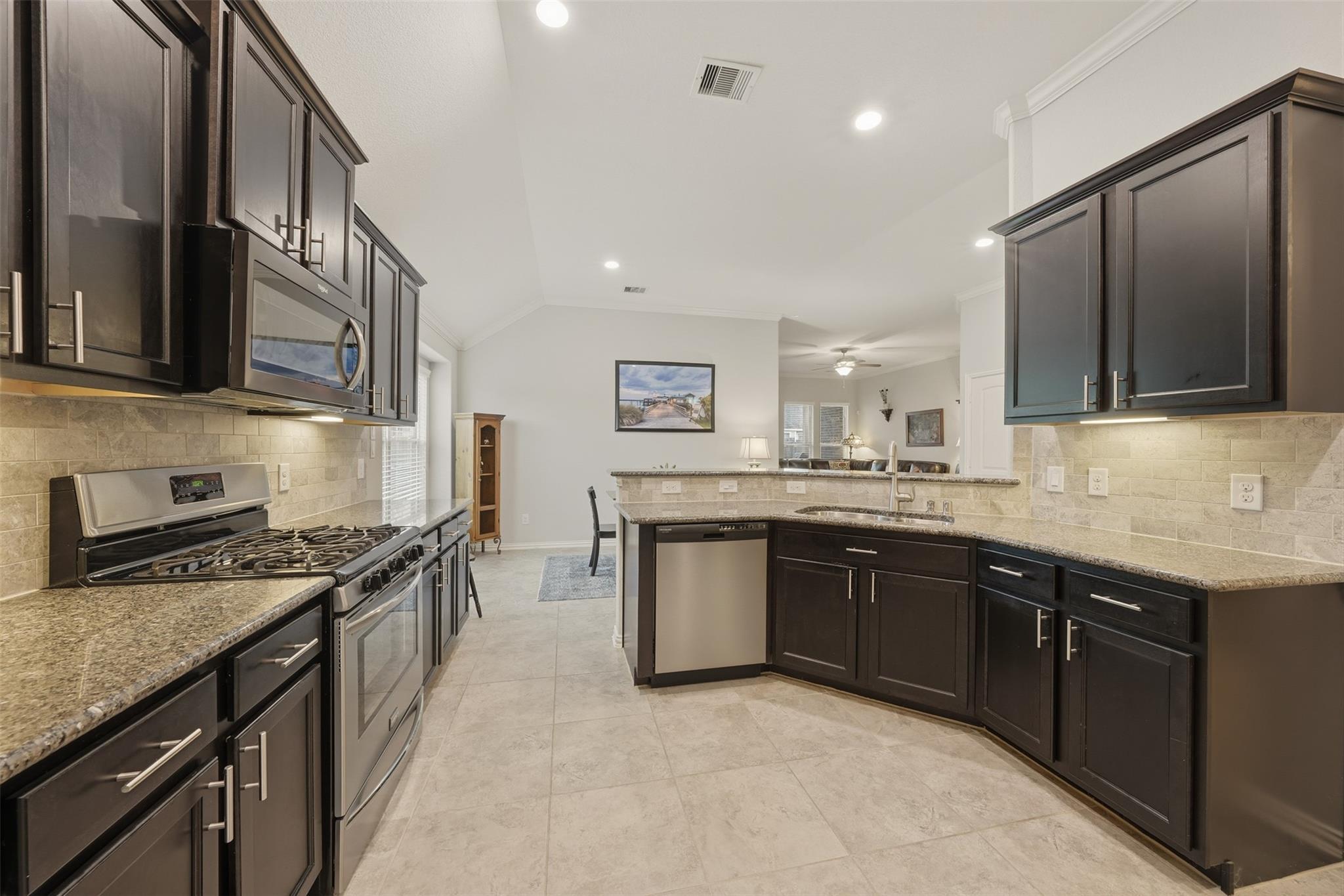 InteriorFireplace:1Floors:Carpet,TileCountertop:GraniteBathroom Description:Primary Bath: Double Sinks,Primary Bath: Jetted Tub,Primary Bath: Separate Shower,Secondary Bath(s): Tub/Shower ComboBedroom Desc:All Bedrooms Down,Walk-In ClosetKitchen Desc:Breakfast Bar,Island w/o Cooktop,Kitchen open to Family Room,PantryRoom Description:Formal Dining,Living Area - 1st Floor,Utility Room in HouseHeating:Central GasCooling:Central ElectricConnections:Electric Dryer Connections,Washer ConnectionsDishwasher:YesDisposal:YesMicrowave:YesRange:Gas RangeOven:Electric Oven,Single OvenEnergy Feature:Attic Vents,Ceiling Fans,Digital Program Thermostat,High-Efficiency HVAC,Insulated/Low-E windows,Insulation - Blown Cellulose,Radiant Attic BarrierInterior:Crown Molding,Formal Entry/Foyer,High Ceiling,Prewired for Alarm System,Refrigerator Included,Vaulted Ceiling,Window Coverings,Wired for Sound