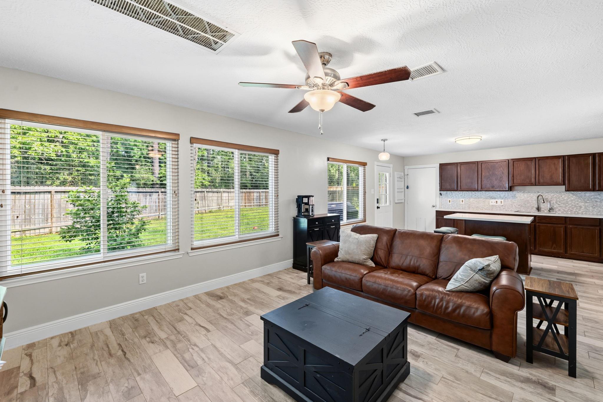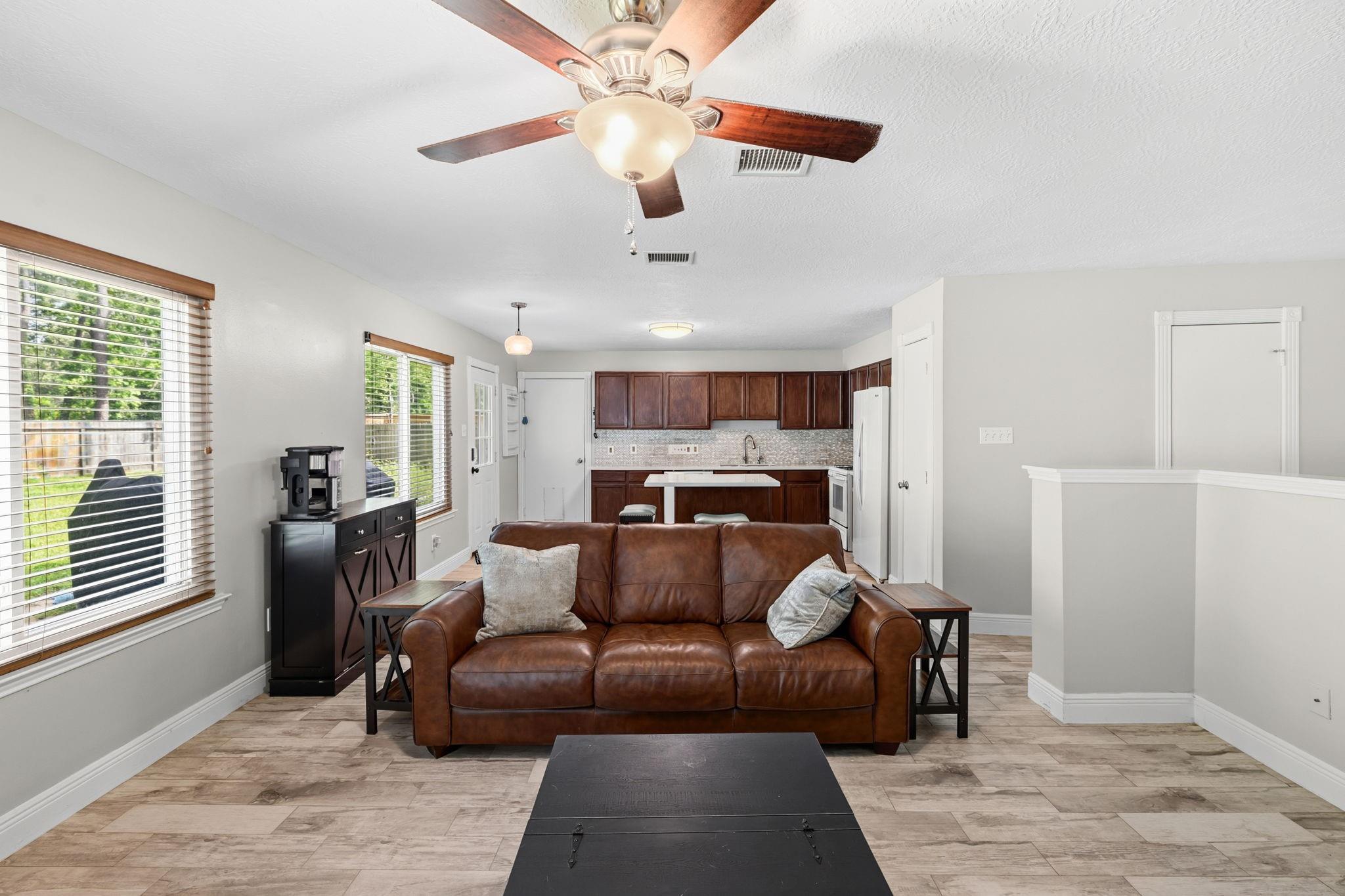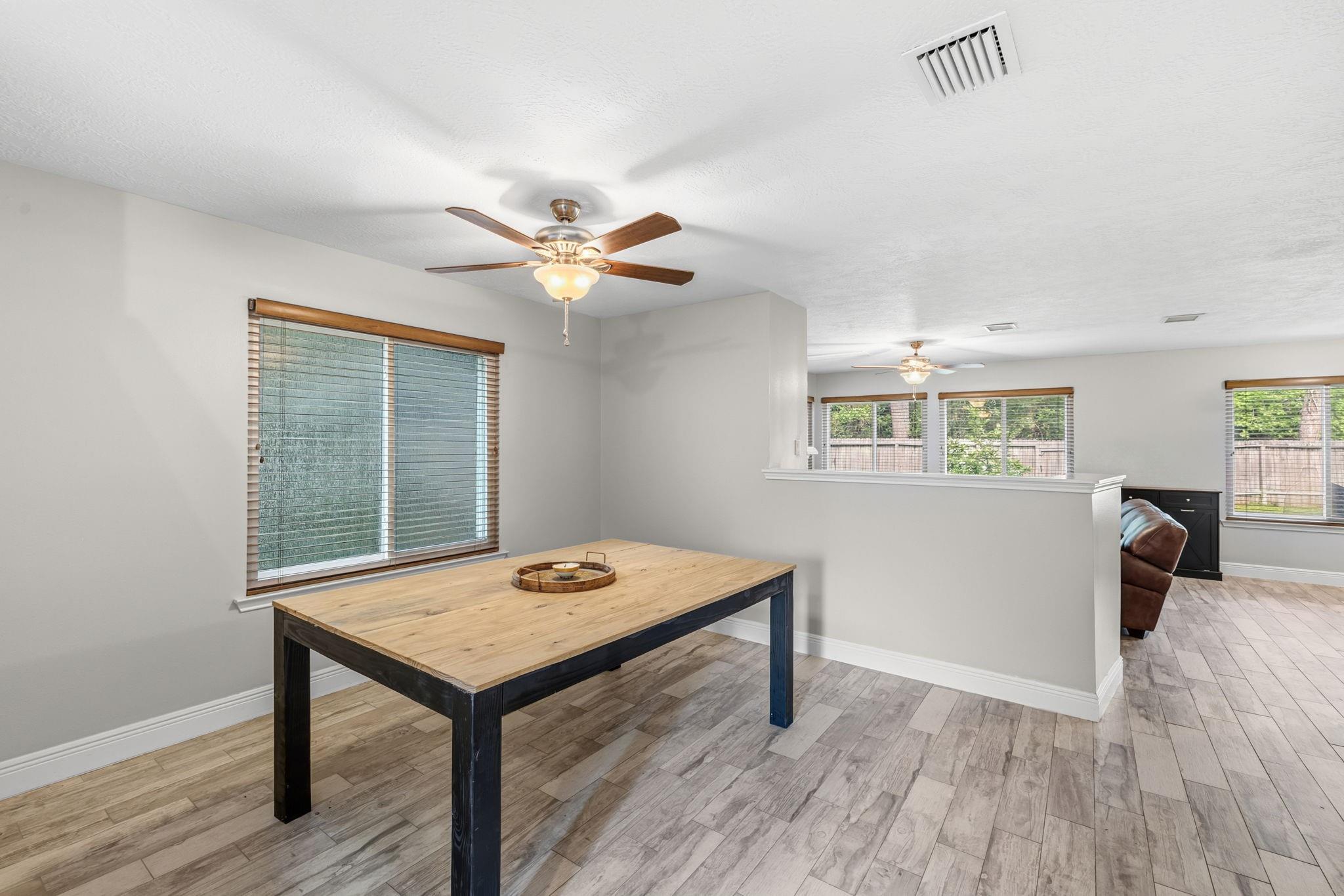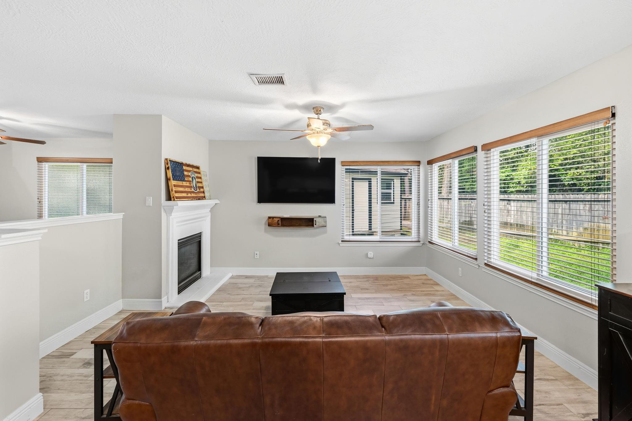 Beautifully updated two story home on a spacious cul-de-sac lot featuring 4 bedrooms, 2.5 baths, and a versatile game room. The open concept layout connects the living, dining, and kitchen areas, perfect for everyday living and entertaining. The first floor primary suite includes a sitting area and private en suite bath, while three additional bedrooms upstairs offer plenty of space. Enjoy a large backyard backing to trees for added privacy, plus a detached workshop with garage door and ramp, ideal for hobbies or storage. Recent upgrades include a new HVAC, updated electrical, and fresh paint throughout. Conveniently located near schools, shopping, dining, and major highways.