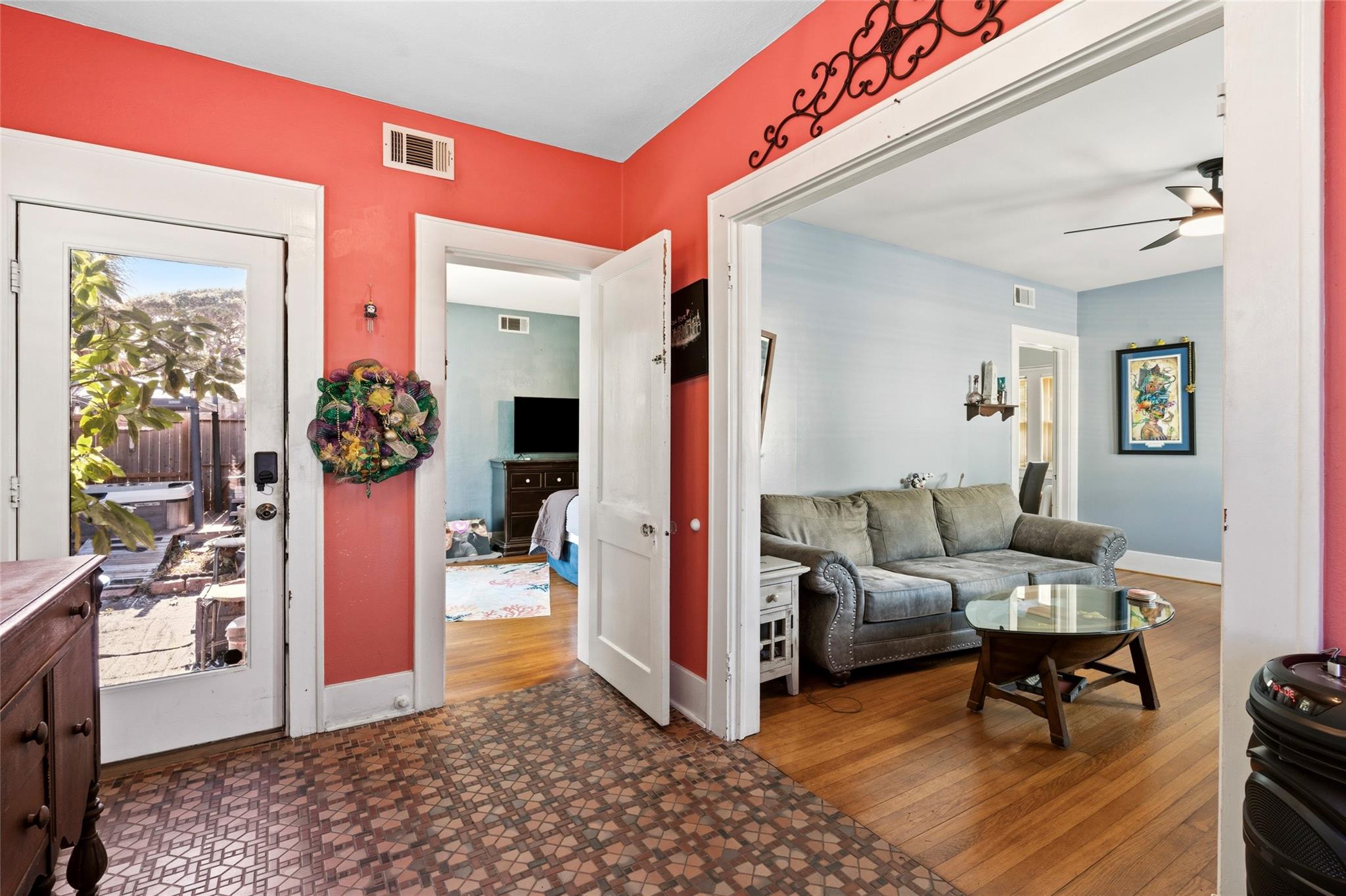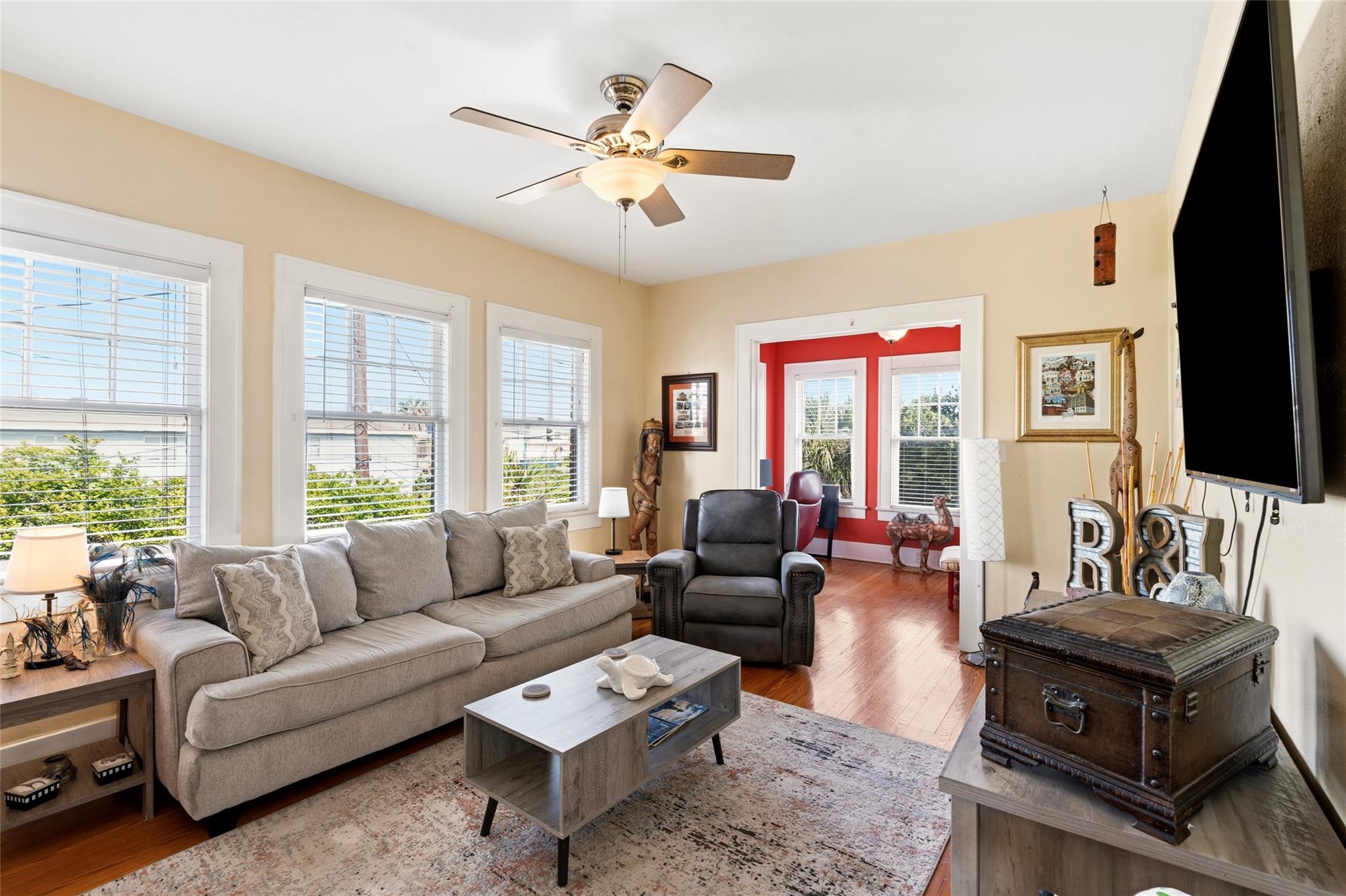 Nestled on Galveston’s iconic trolley route & the Mardi Gras parade route, this beautifully updated triplex is just 4 blocks from the beach and Pleasure Pier! The main home offers two spacious 2-bed, 1-bath units—each with bonus rooms, granite-counter kitchens, and hardwood floors. Downstairs boasts a private courtyard with a retractable-lid hot tub, while upstairs delights with elevated views. Behind, a 2-car garage with newer garage doors and openers supports laundry for the main level unit and garage apartment. Above it, a chic efficiency apartment with a private courtyard and walk-in shower currently shines as an Airbnb. Plus, a newer roof tops it off. Don’t miss this rare investment gem, or live in one unit and rent the others!
