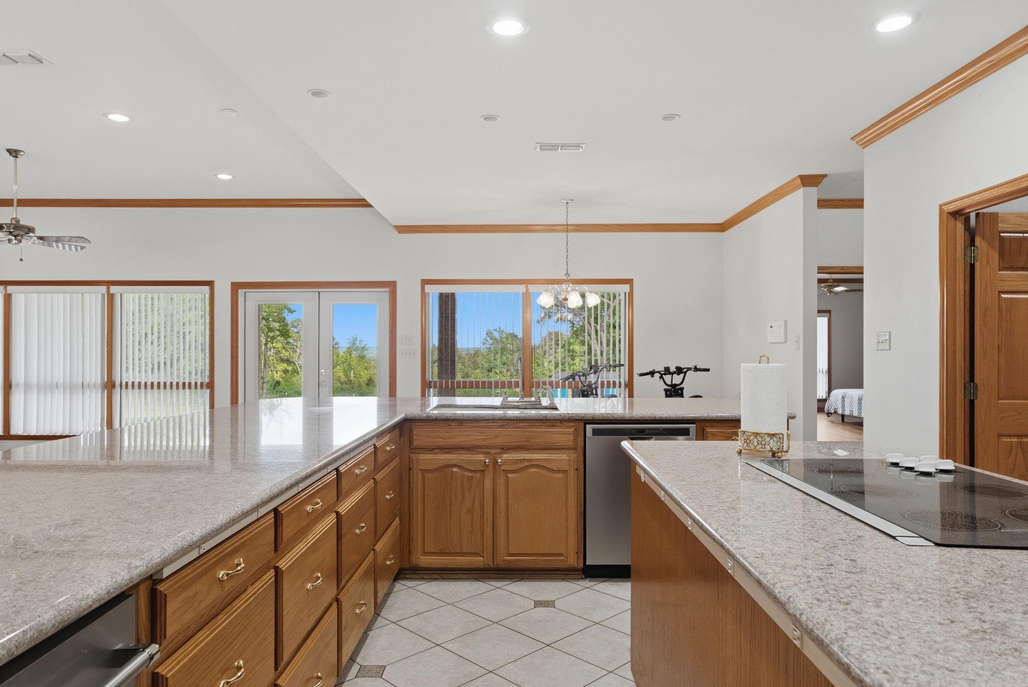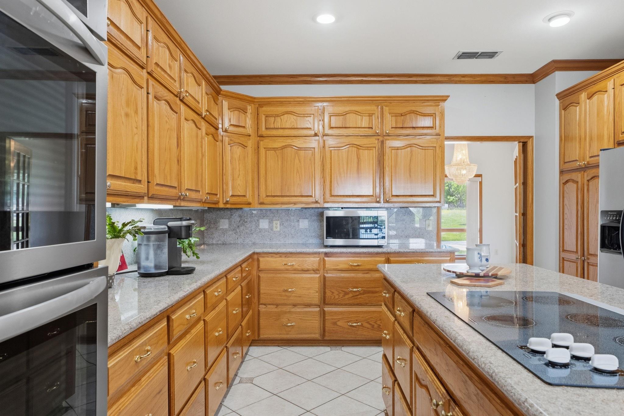 InteriorFireplace:3Floors:Tile,Vinyl PlankBathroom Description:Full Secondary Bathroom Down,Half Bath,Primary Bath: Jetted Tub,Primary Bath: Separate ShowerBedroom Desc:All Bedrooms DownKitchen Desc:Island w/ Cooktop,Kitchen open to Family Room,Pots/Pans Drawers,Walk-in PantryRoom Description:Family Room,Formal Dining,Utility Room in HouseHeating:Central ElectricCooling:Central ElectricConnections:Electric Dryer Connections,Washer ConnectionsDishwasher:YesMicrowave:YesRange:Electric CooktopOven:Double OvenEnergy Feature:Attic Vents,Ceiling Fans,Solar Panel - Owned