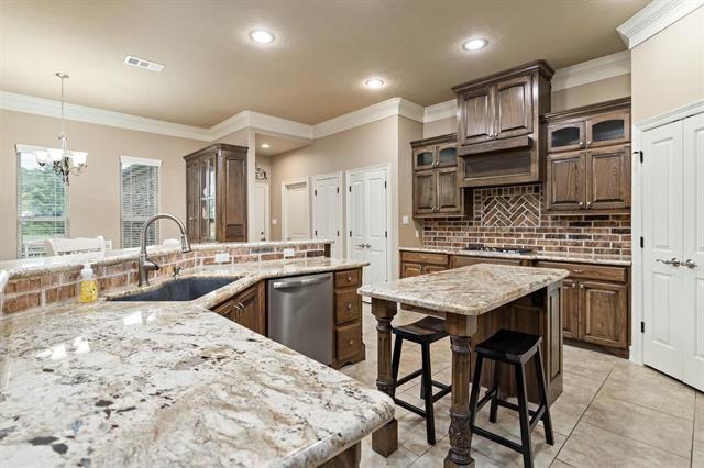 Home never flooded! You will fall in love with this custom-built home in Langham Forest Estates on 1 acre. Shop 40x50 with electricity. The home features 4-1/2-3 bedrooms, a large, beautiful foyer, a spacious living area with a two-sided fireplace, and a stunning kitchen with Netuno Bordeaux granite. Custom cabinets made out of Brazil Nut Wood throughout the house, kitchen has tons of cabinets, gas stove, large breakfast bar, island, pantry, large breakfast area, office area & mud room both are hidden behind a door, den, beautiful sunroom that could be used as an office, main bedroom is large with large closet, main bath features large jetted tub, large walk-in tiled shower with double shower heads, double vanity, walk closet, built ins in two of the bedrooms. The home features crown molding throughout, a floored attic that can be converted into an additional room, a den, exposed beams, a covered patio, and a large front porch. You don't want to miss this stunning home.