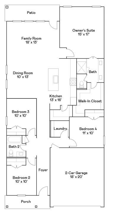 NEW! Village Builder Bristol Collection "DONOVAN" Plan with Brick Elevation "A" in Synova! This single-story home has a comfortable layout that offers endless possibilities. Three bedrooms share a full bathroom at the front of the home. Down the hall is the open concept living area which features a kitchen, dining room and family room with access to a covered patio. Tucked into the back corner of the home is the owner’s suite which includes a full bathroom and walk-in closet.