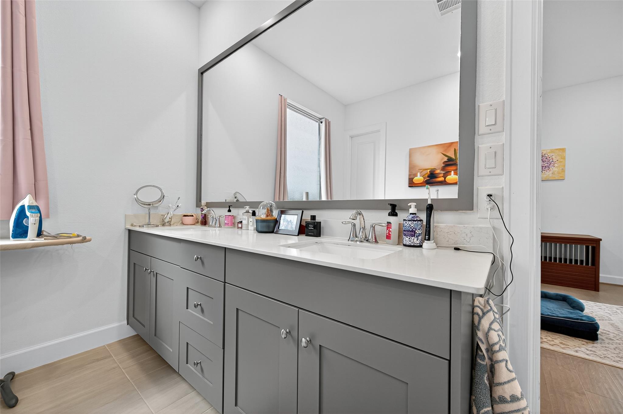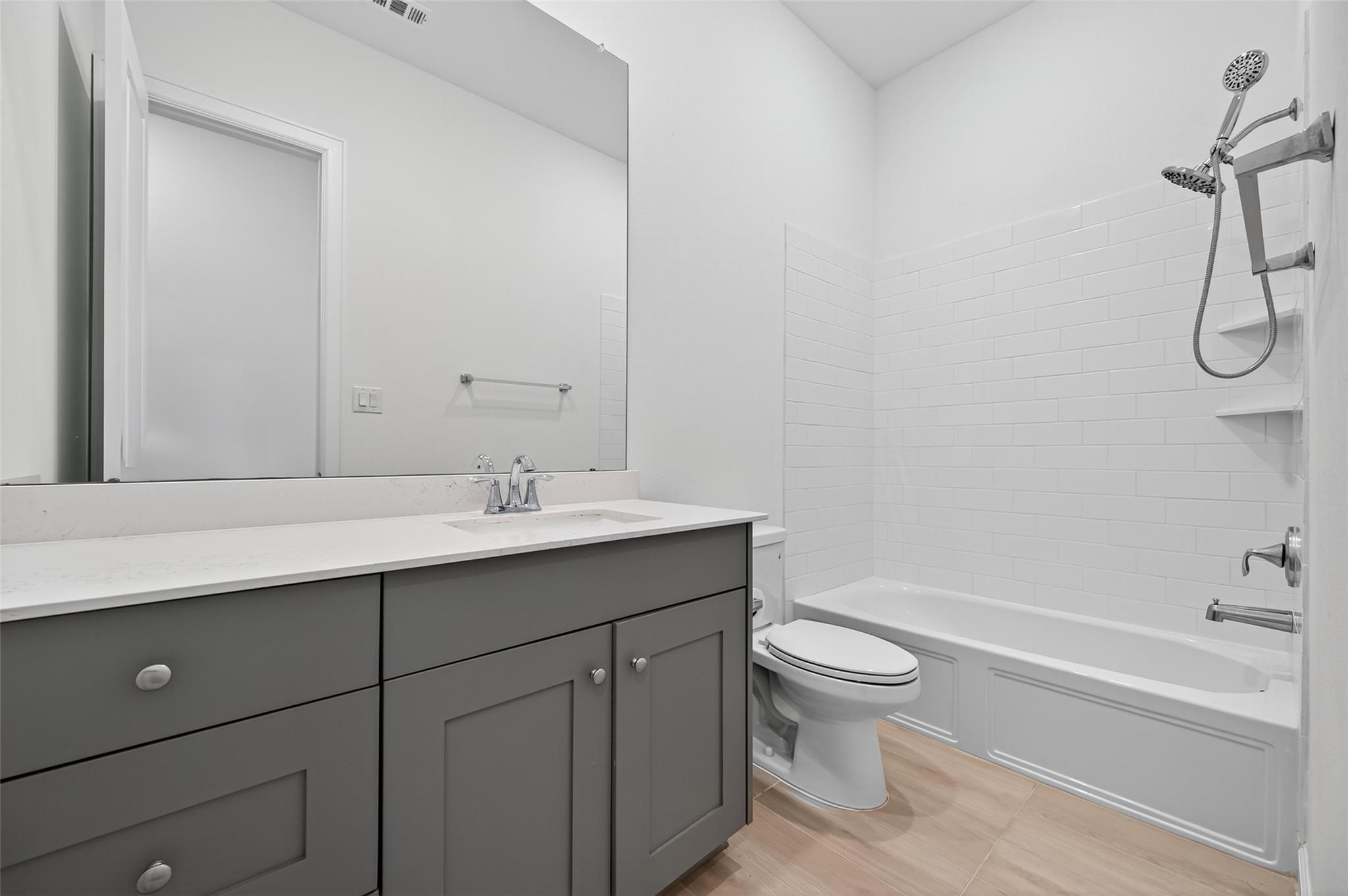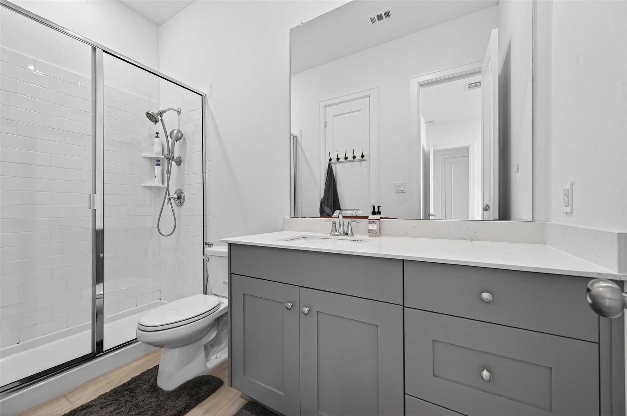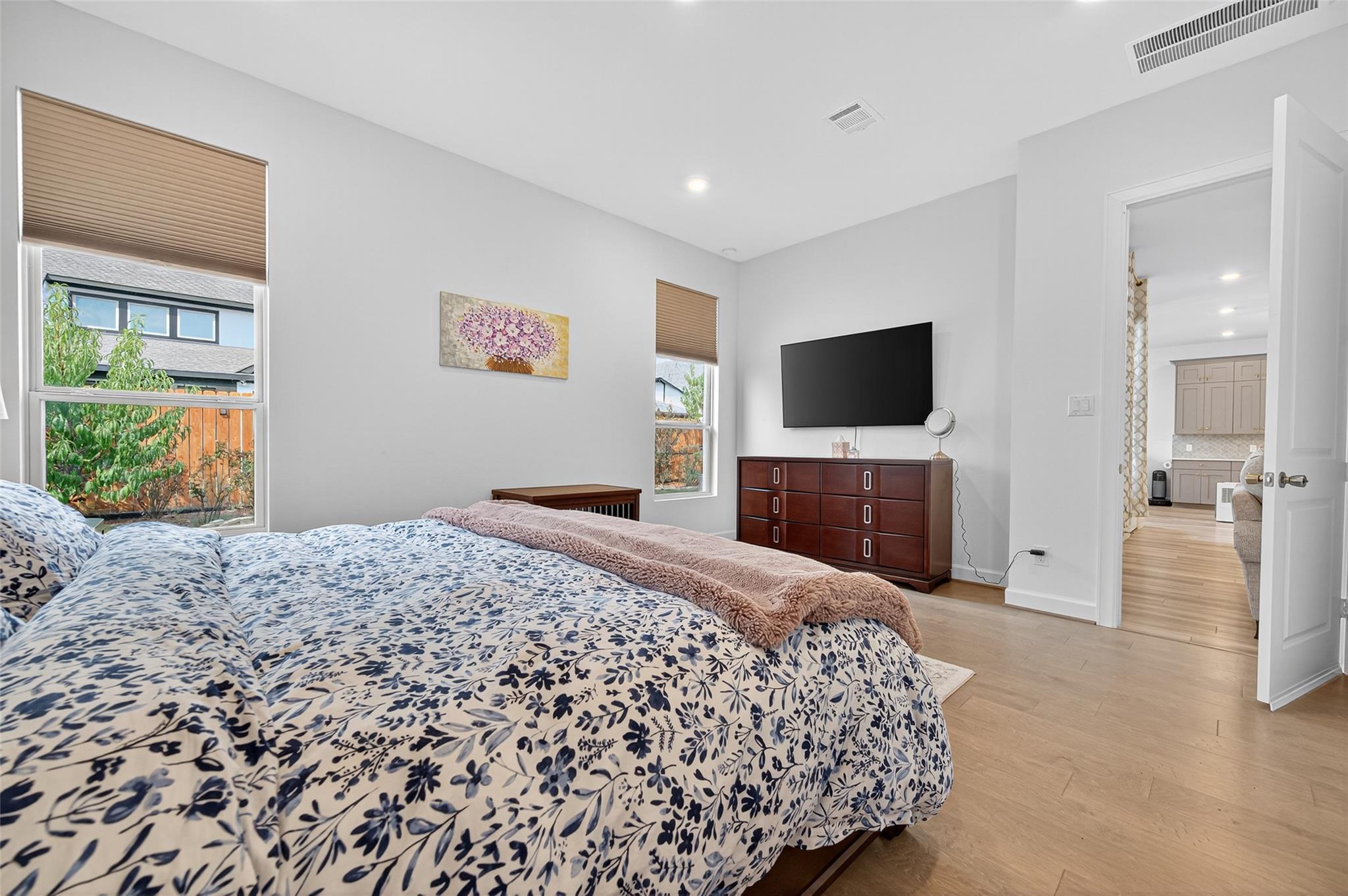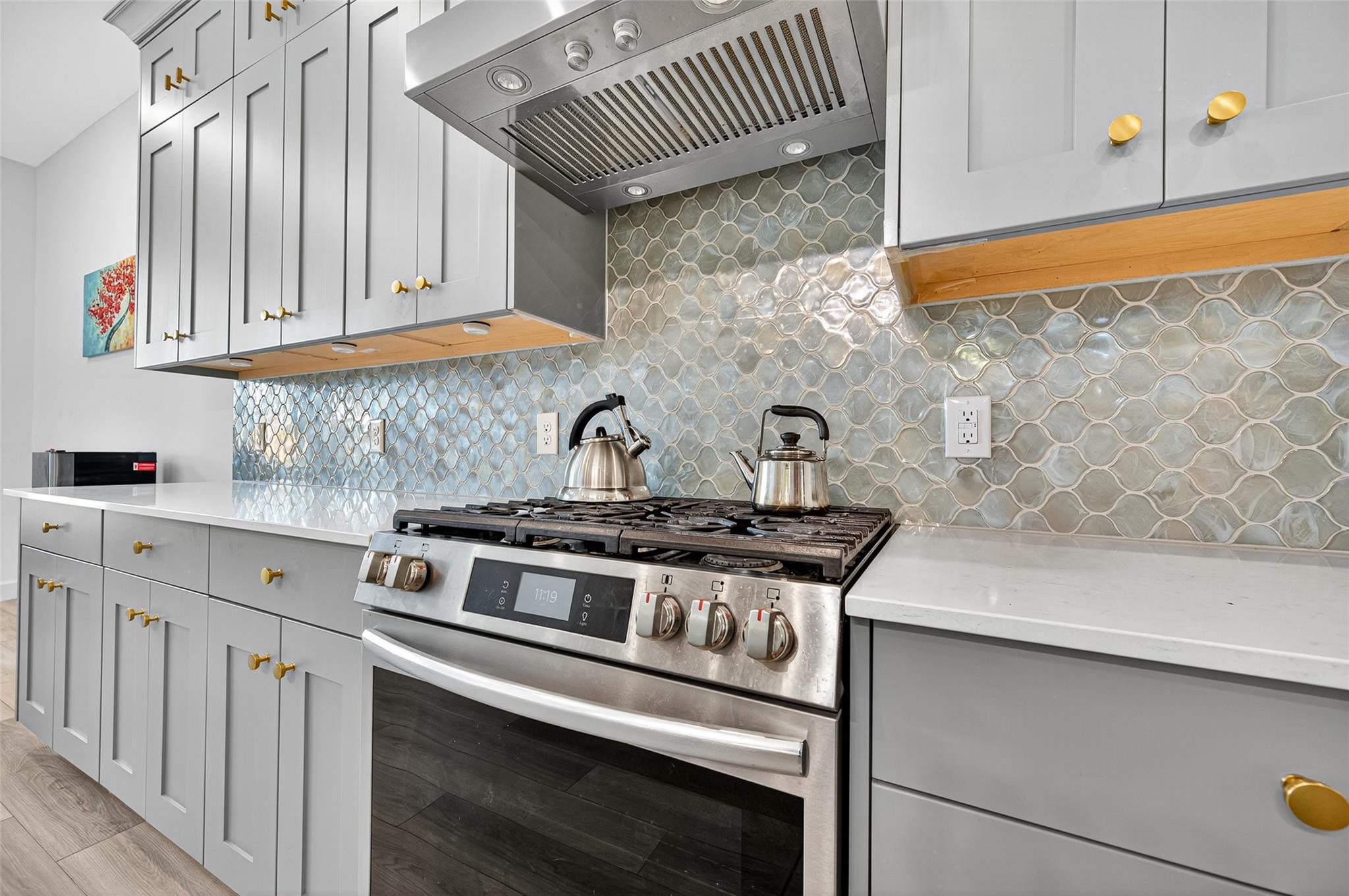 Absolutely stunning Village Builders Pinnacle Collection home in Parkside Village of Towne Lake! Only 2 years old, this elegant 3,100 sq ft one-story features a dramatic extended entry with coffered ceilings and high-end upgrades throughout. Enjoy hardwood and luxury vinyl plank flooring, designer lighting, a whole-house water softener, private home office, game room, and a luxurious primary suite. The gourmet kitchen shines with a quartz seating island and premium stainless steel appliances. Step outside to a custom stone outdoor kitchen—perfect for entertaining. Luxury living at its finest in the heart of Cypress.