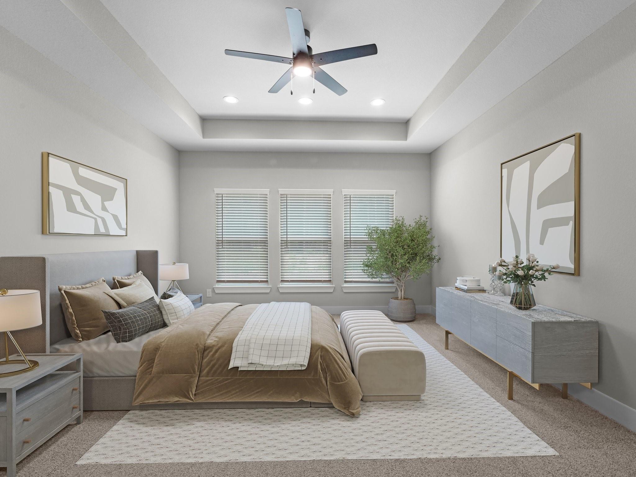 Discover the perfect blend of modern luxury and functionality in this brand-new construction home in the community of Encino Estates. Spanning 2,795 square feet, this two-story home features 4 spacious bedrooms and 3.5 bathrooms with 8 foot doors. A gourmet kitchen with granite countertops and white cabinetry awaits! The kitchen is completed with a walk-in pantry, double ovens, and sleek black hardware and plumbing trims, adding a touch of sophistication. Upstairs, enjoy a bonus upstairs room perfect for movie nights or gaming sessions. The home also includes a spacious 3-car garage providing ample space for your vehicles and storage needs. With no rear neighbors, the private backyard offers peaceful views and the ideal setting for relaxation. Make this exquisite home yours today!