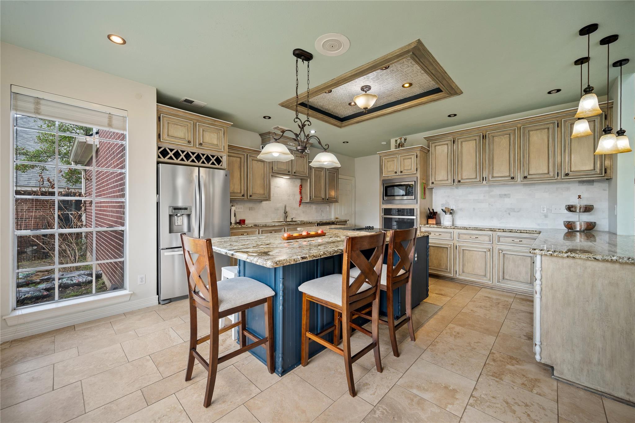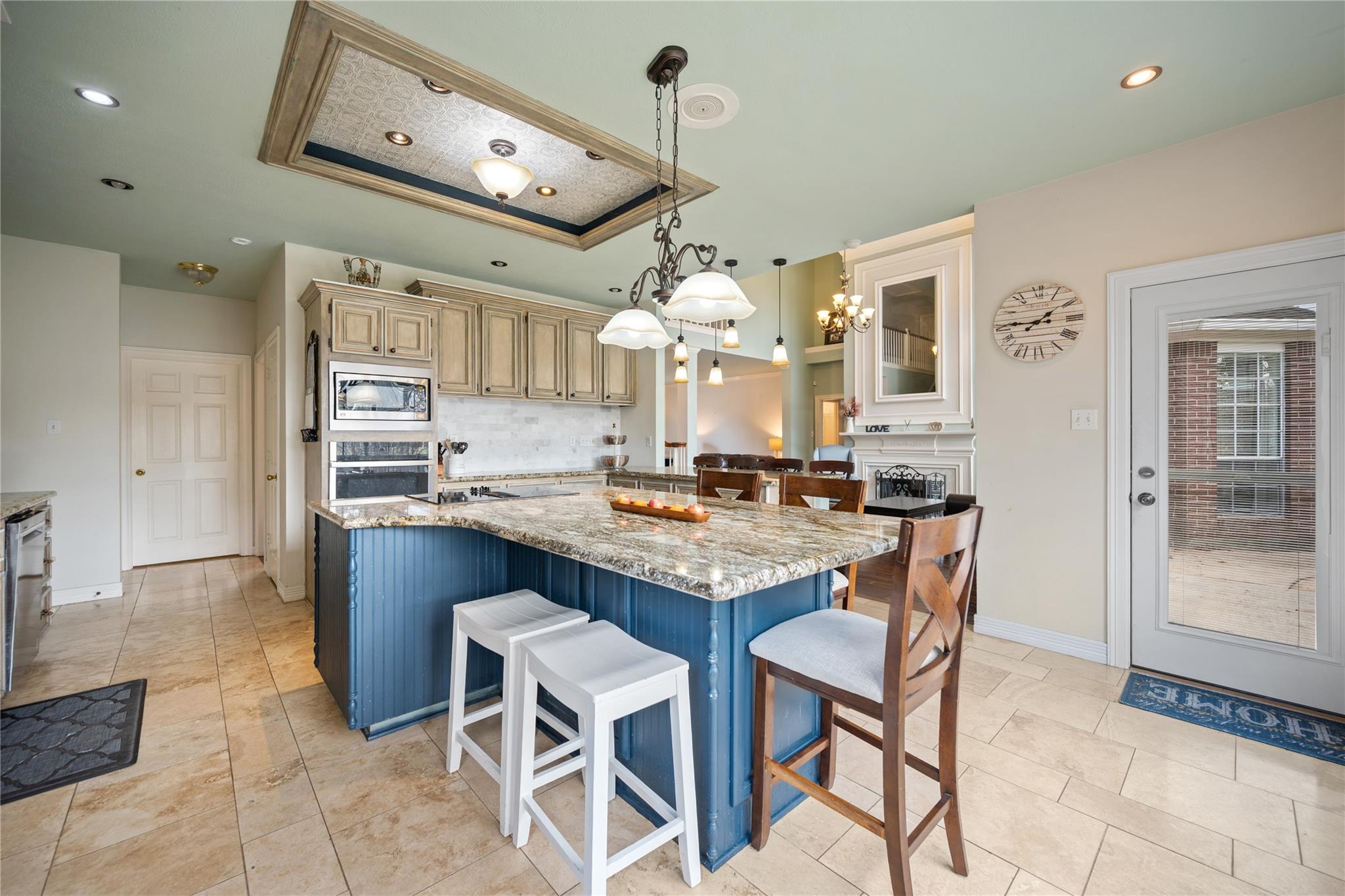 InteriorFireplace:1/Gas Connections,Gaslog FireplaceFloors:Tile,Travertine,WoodCountertop:GraniteBathroom Description:Half Bath,Primary Bath: Double Sinks,Primary Bath: Jetted Tub,Primary Bath: Separate Shower,Secondary Bath(s): Tub/Shower Combo,Vanity AreaBedroom Desc:3 Bedrooms Up,Primary Bed - 1st Floor,Walk-In ClosetKitchen Desc:Breakfast Bar,Island w/ Cooktop,Kitchen open to Family Room,Pantry,Walk-in PantryRoom Description:Entry,Family Room,Formal Dining,Formal Living,Gameroom Up,Utility Room in HouseHeating:Central Gas,ZonedCooling:Central Electric,ZonedConnections:Electric Dryer Connections,Gas Dryer Connections,Washer ConnectionsDishwasher:YesDisposal:YesMicrowave:YesRange:Electric CooktopOven:Electric Oven,Single OvenEnergy Feature:Ceiling Fans,Digital Program ThermostatInterior:Alarm System - Owned,Crown Molding,Fire/Smoke Alarm,High Ceiling,Window Coverings