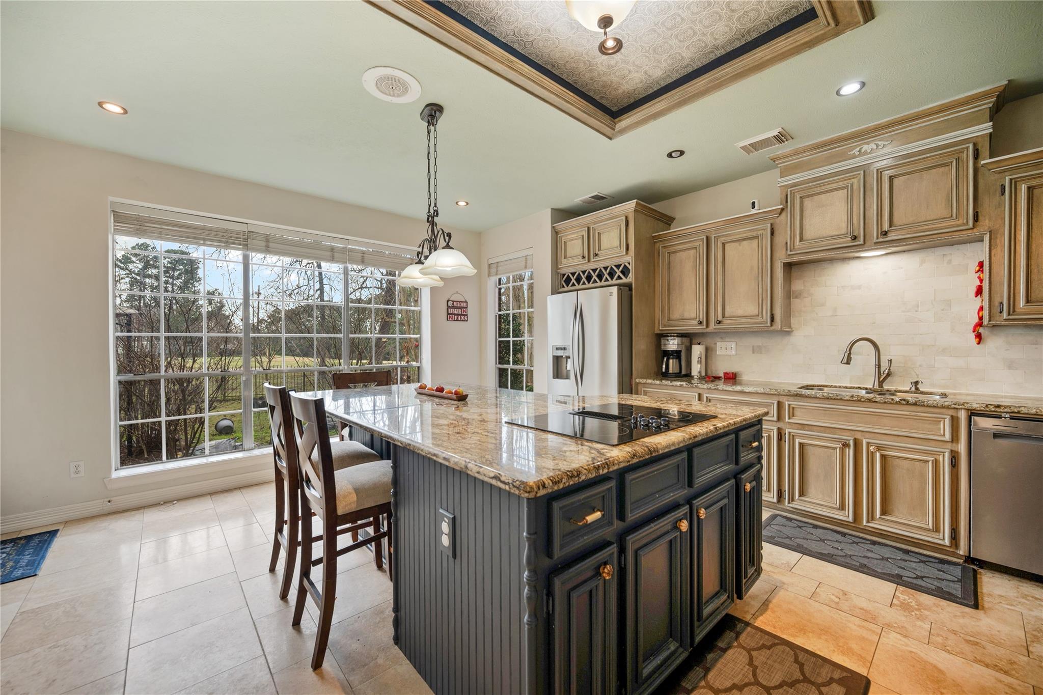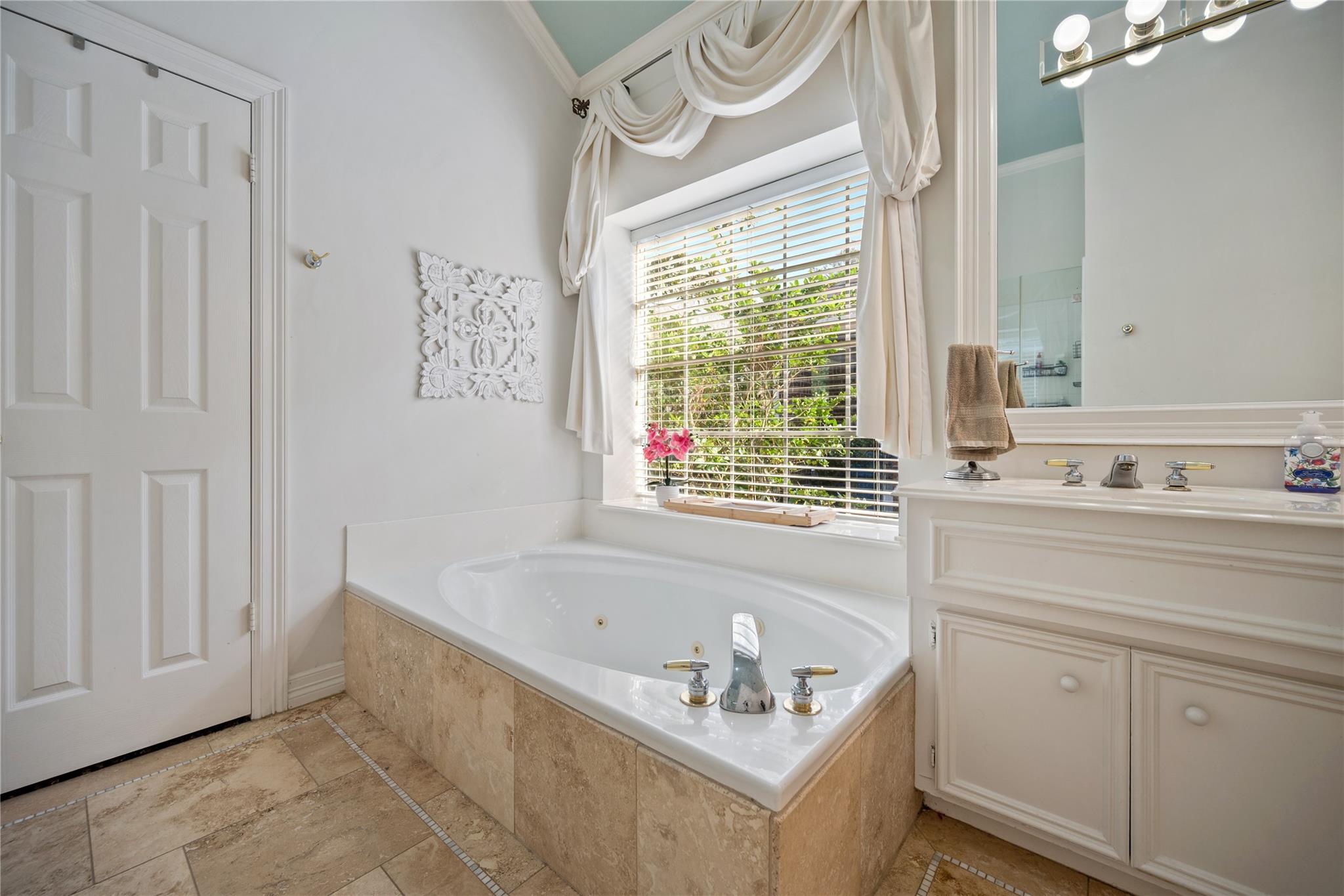 Warm and inviting golf course home in Walden! Open living areas with high ceilings and a wall of windows, wood floors. Formal dining room, oversized kitchen with stainless appliances, travertine flooring and a huge custom granite island that seats up to 6 plus a separate breakfast bar. There's an abundant number of cabinets and a separate pantry. The large primary bedroom is downstairs with a sitting area and overlooks the backyard and golf course. Great primary bathroom with extensive vanity, separate shower and jetted tub. Large walk in closet, too! Upstairs there's a spacious gameroom, 3 large bedrooms with great walk-in closets and secondary bathroom, all wood flooring upstairs also. Storage closets everywhere you turn in this home, walk-in attic storage space also. This home is on a tee box so you can enjoy your backyard. Full 2-car garage with porte-cochere. Numerous upgrades/updates have been completed in the last 10 yrs.