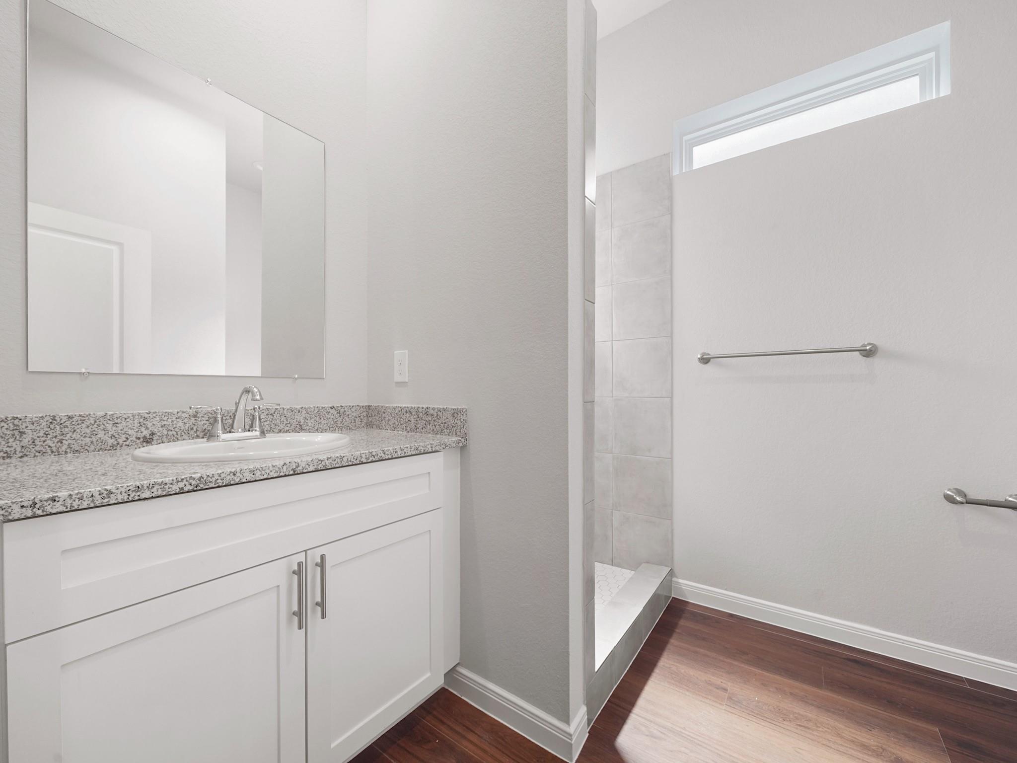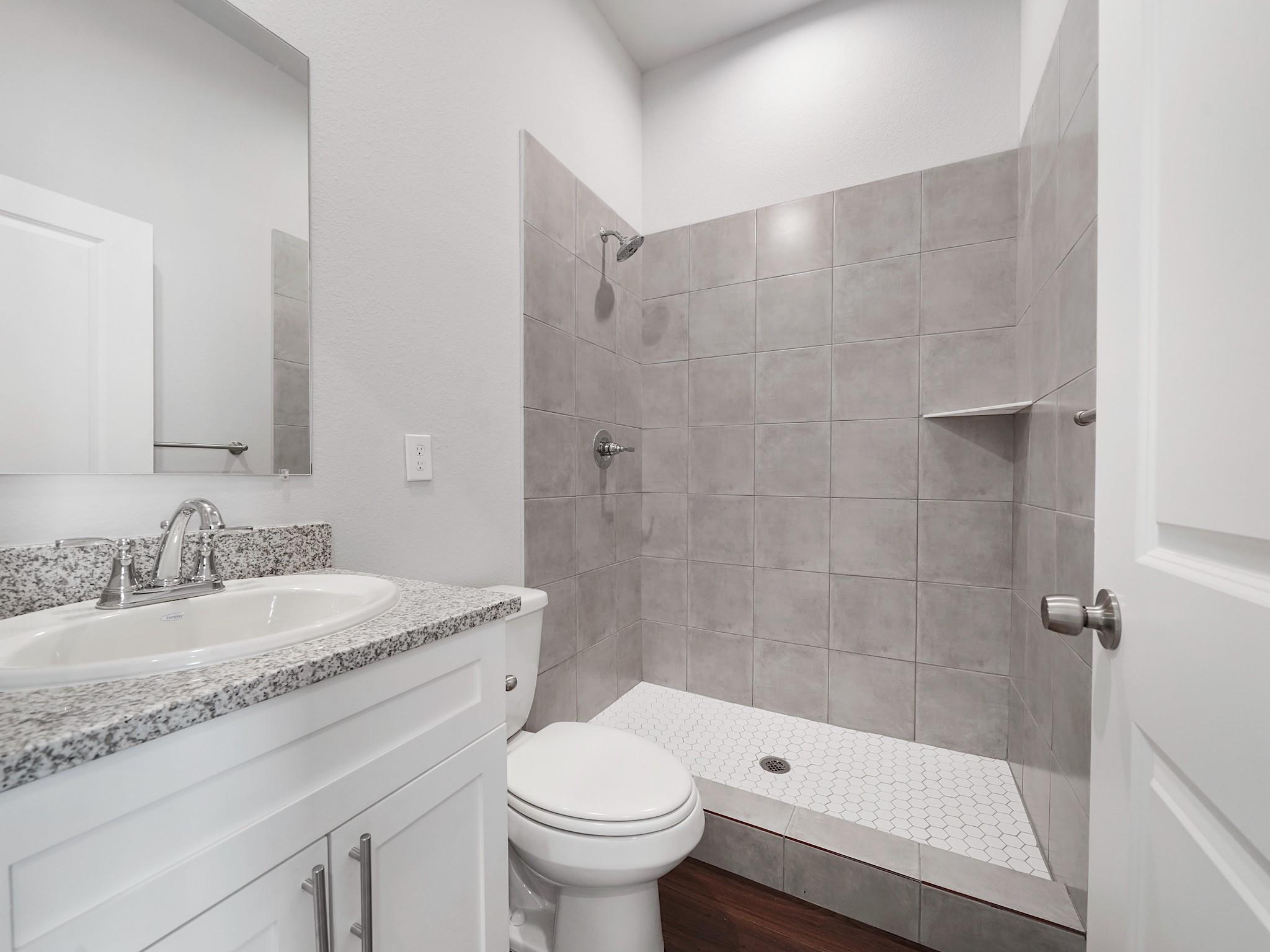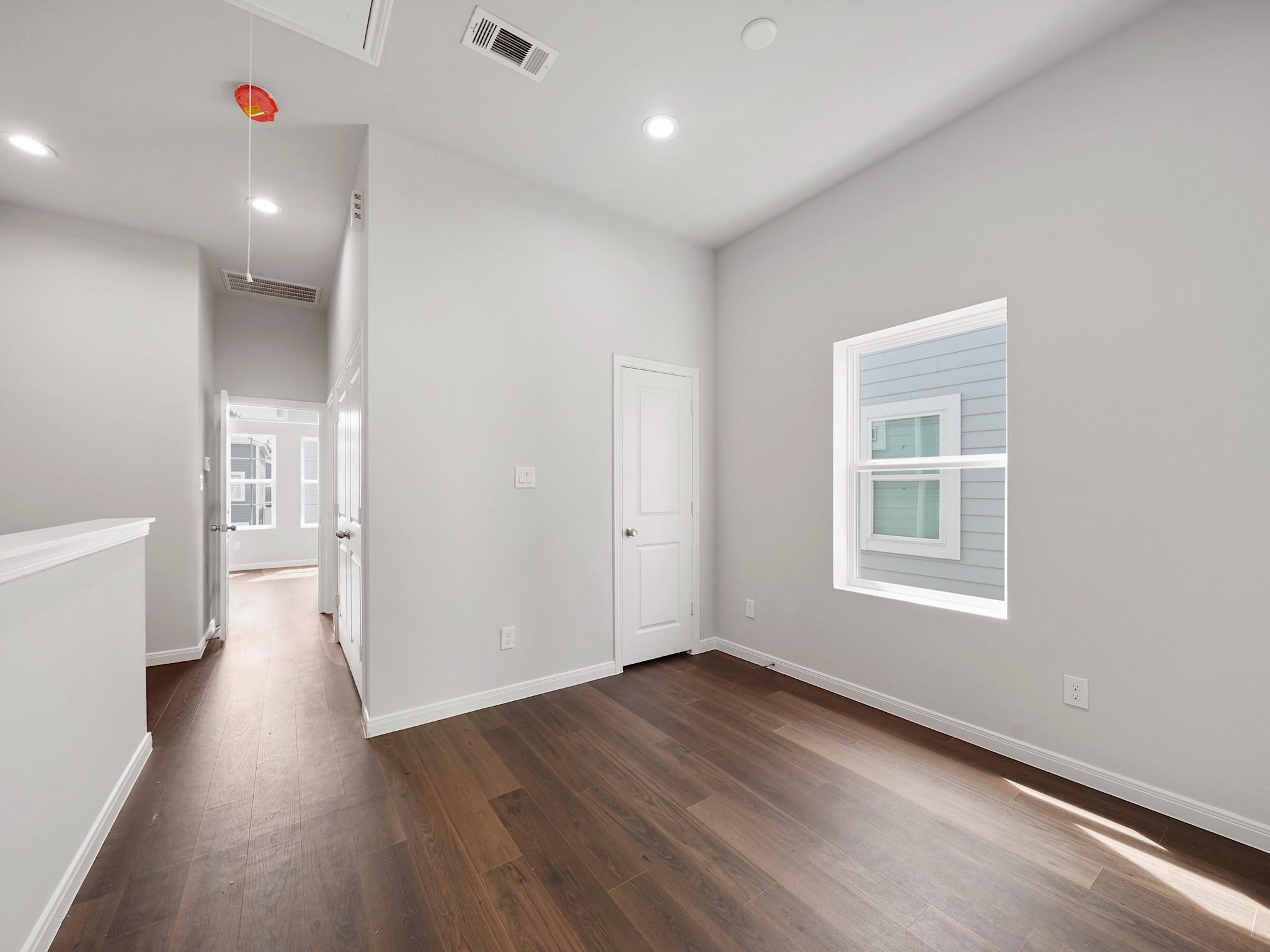 Brand new construction with modern finishes and a smart, functional layout! This 2-bedroom home features both bedrooms upstairs for added privacy, along with a convenient upstairs utility room. A versatile nook offers the perfect space for a home office, study area, or game room. Enjoy an open-concept living and dining area with high ceilings, recessed lighting, and abundant natural light. The kitchen boasts quartz countertops, stainless steel appliances, white cabinetry, and a stylish tile backsplash. Bathrooms showcase sleek tile showers and contemporary fixtures. Durable wood-look flooring flows throughout the home. Outside, you’ll find a private yard and attached garage. Move-in ready and designed for low-maintenance living!