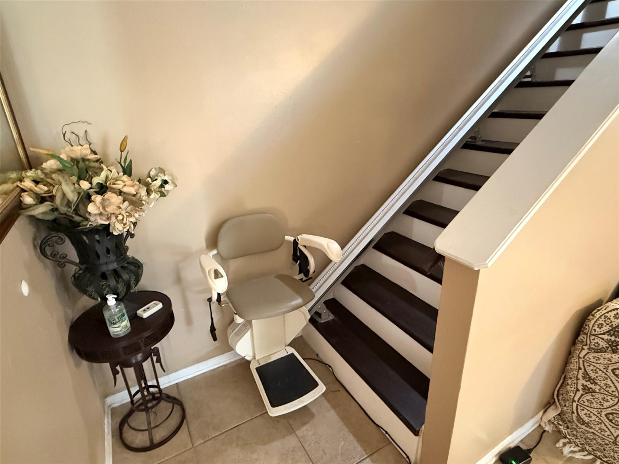 Welcome to this charming corner townhouse offering 1,250 sq. ft. of comfortable living space. This cozy two-bedroom, one-and-a-half-bath home features an open-concept layout with an updated kitchen and energy-efficient features that provide year-round comfort. Freshly stained stairs add warmth and character, while a motorized chair lift offers convenient accessibility to the upper level. The spacious primary bedroom includes a private vanity with sink and a tub/shower combo. Step outside to a private, fully cemented, fenced patio—perfect for relaxing or entertaining. This well-maintained home combines comfort, efficiency, and privacy in a desirable setting.