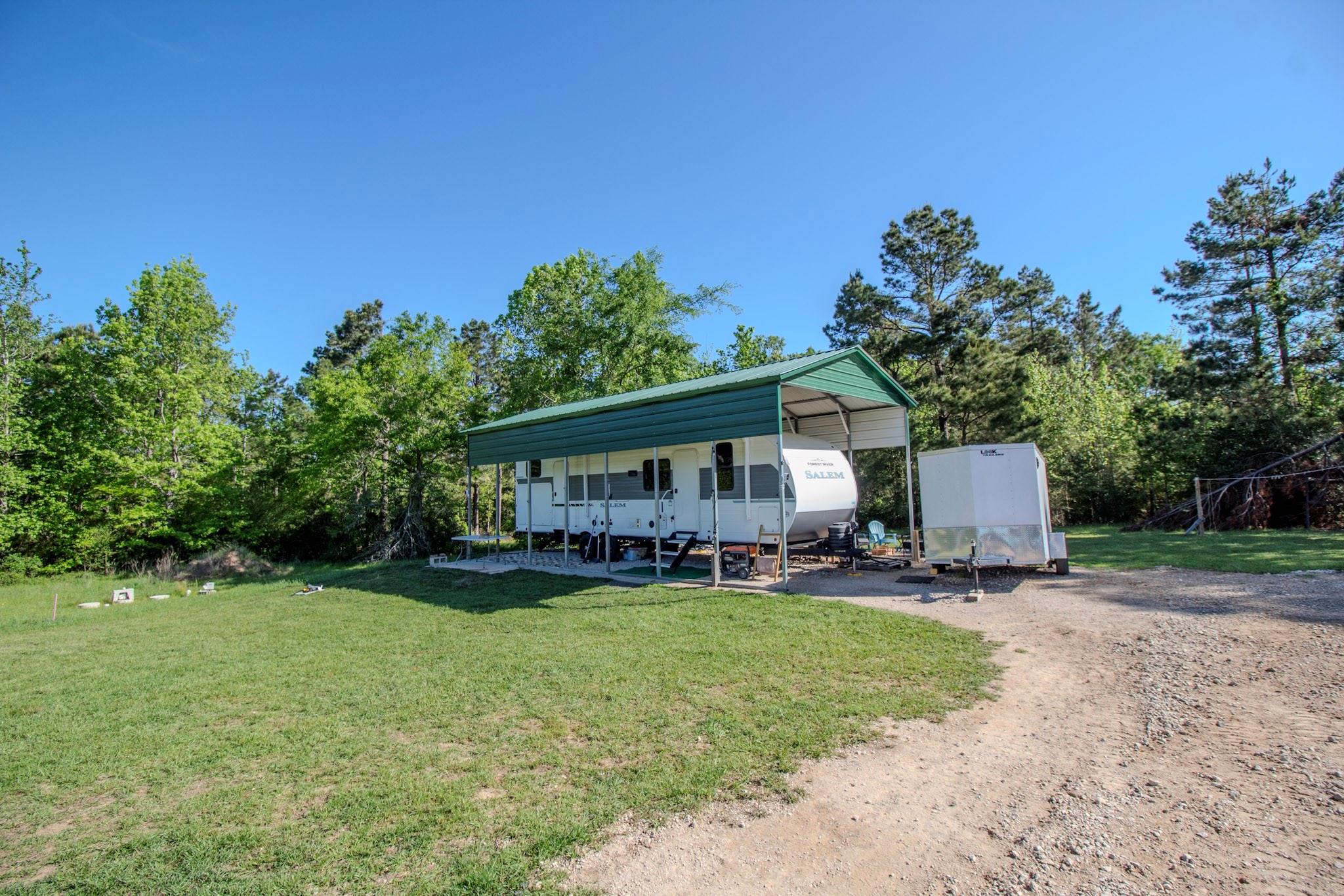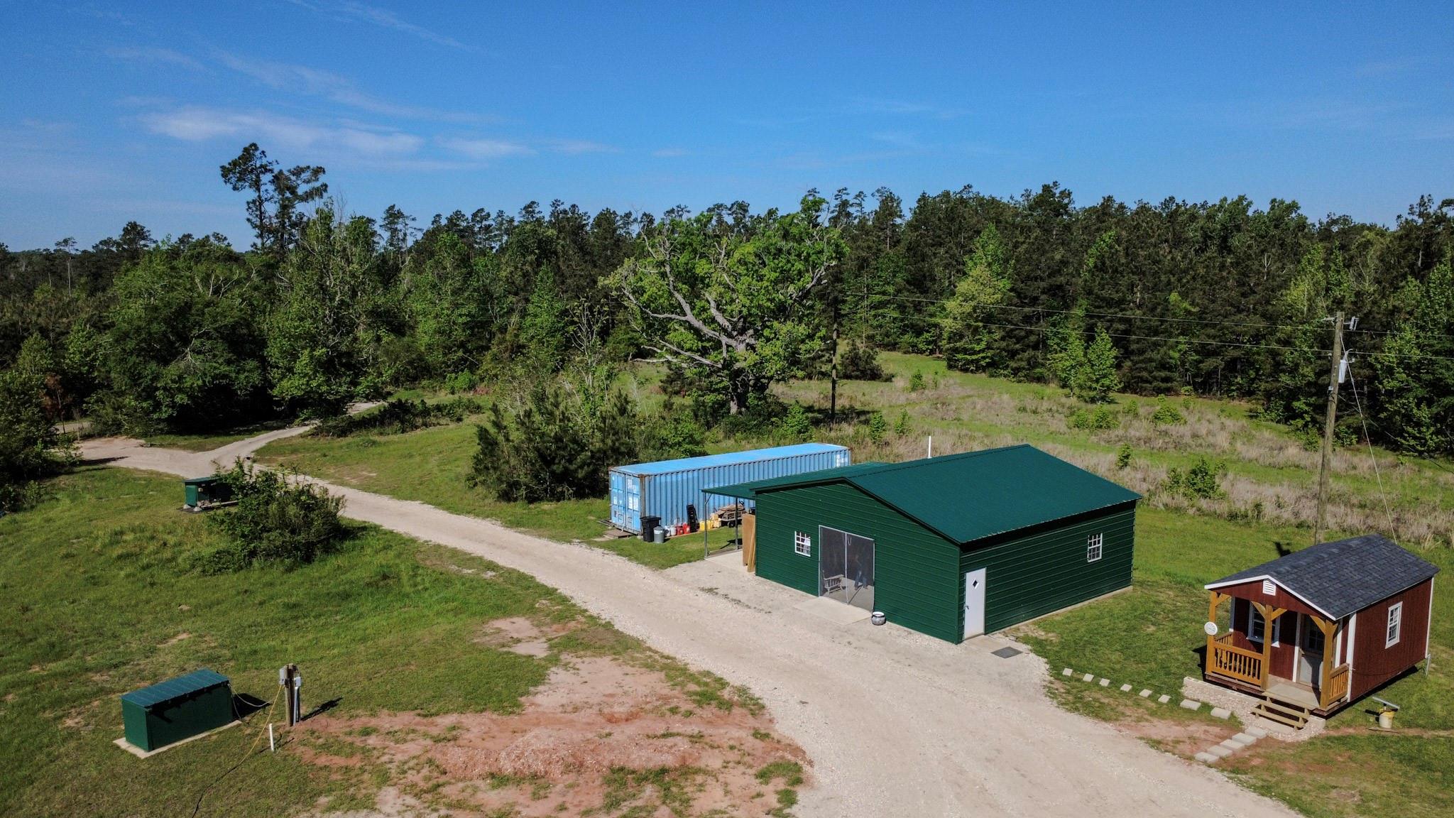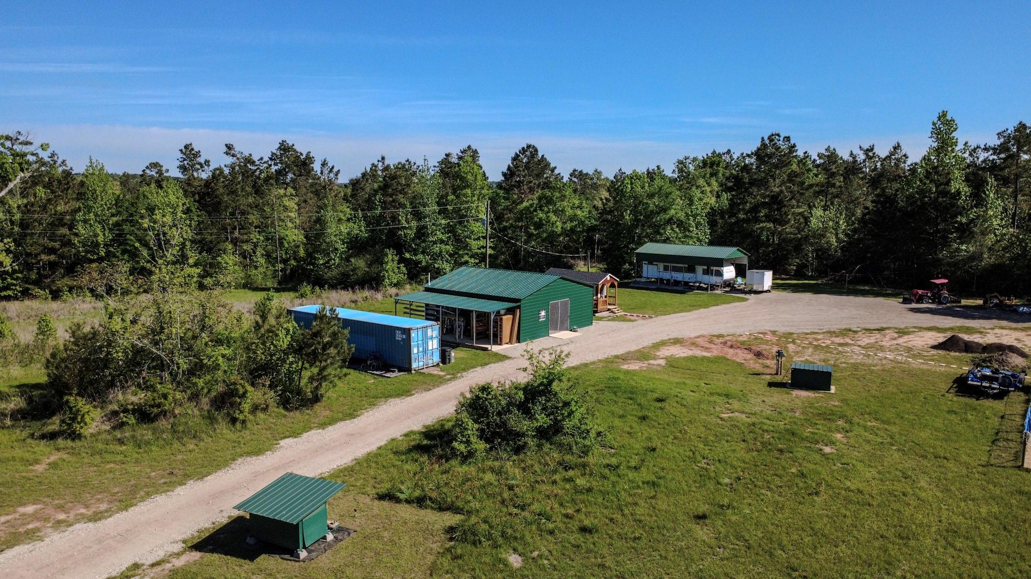 Set on 20 private acres near Mt Enterprise, this property offers a quiet, ready-made setting for your dream home. Just over 5 acres have been thoughtfully cleared for a homesite, while the remaining acreage gives you privacy and room to grow. The groundwork is already in place with a well, aerobic septic system, and electricity installed. A 35x15 covered RV pad with patio area provides 30/50-amp service and water hookup, perfect for comfortable stays while you build. The 30x30 workshop includes a full bath and tankless water heater, offering flexible space for projects and storage. A 10x16 cottage creates a private retreat for guests or a quiet place to unwind. You’ll also find a greenhouse, fenced garden area, and a beehive already producing your own honey, adding a simple, self-sufficient touch to daily living. A shipping container offers additional storage for tools and equipment. It’s a place where the hard work has been done, so you can settle in and make it your own.