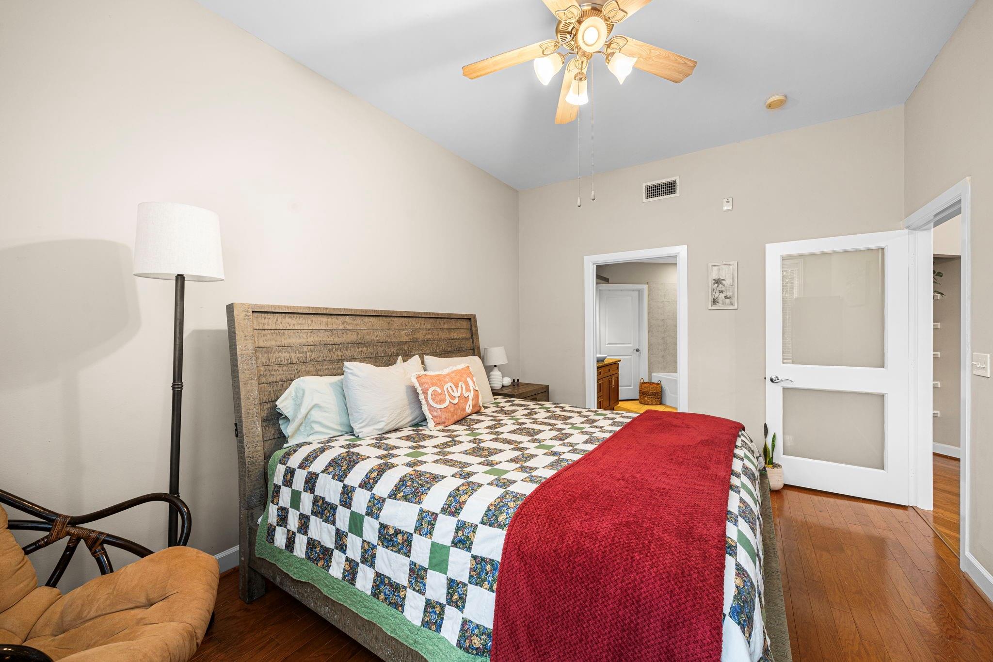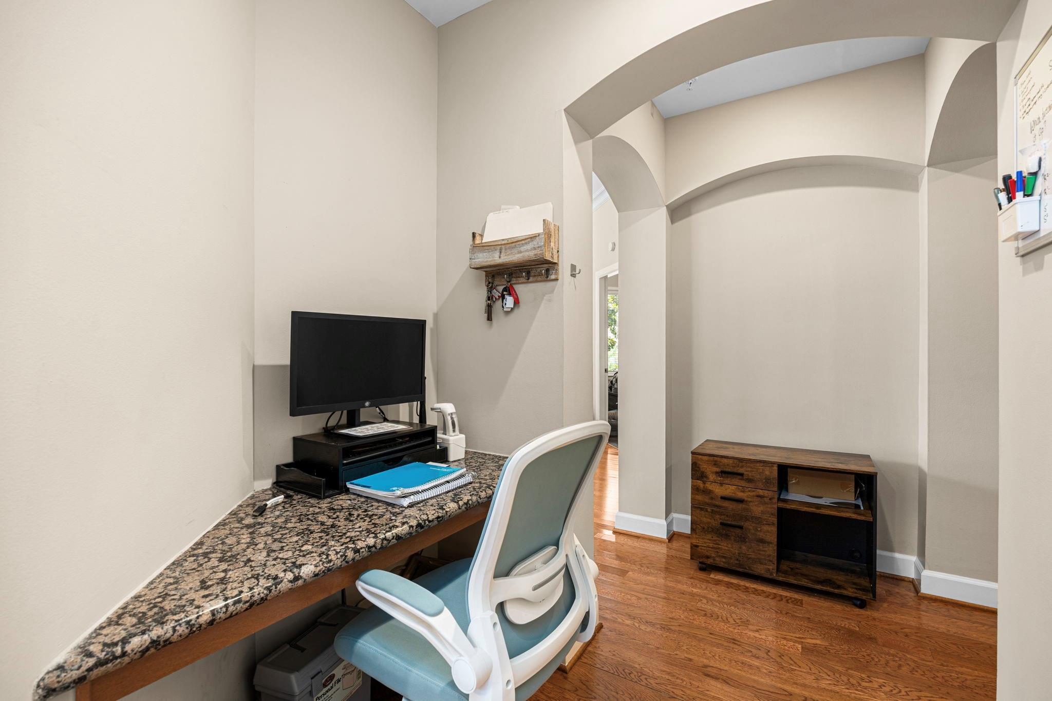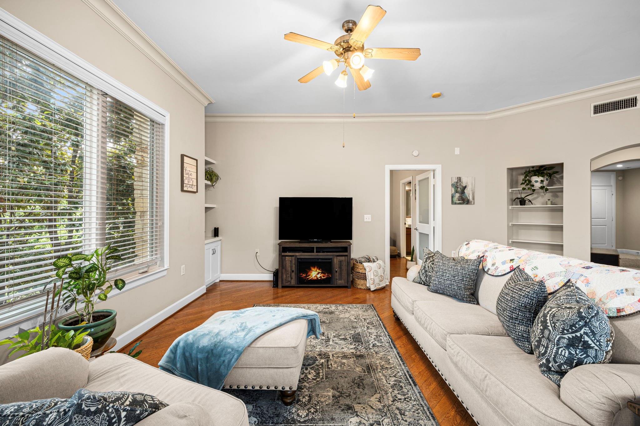 Conveniently located in the heart of Midtown, this CORNER UNIT condominium has all the perks you need for in-town living! Home has been lovingly maintained & recently given a fresh coat of interior paint, making it move-in ready! Large entryway greets you as you enter the home with lovely tile flooring and plenty of wall space for artwork! Luxurious REAL hardwoods grace the rest of the home! Kitchen is open to the family room with beautiful granite countertops, real wood cabinets, tons of storage & SS appliances (all convey w/the sale!). Large, open living/dining area with high ceilings, tons of natural light & access to the corner balcony! Primary BR w/oversized ensuite Bth & spacious walk-in closet is a homeowner's dream! Secondary BR is just across the hall from the 2nd FULL Bth & laundry (washer/dryer convey). Bonus workspace nook in hallway makes this a perfect residence for working at home! On site pool facilities, dog park & assigned parking make this one to see!