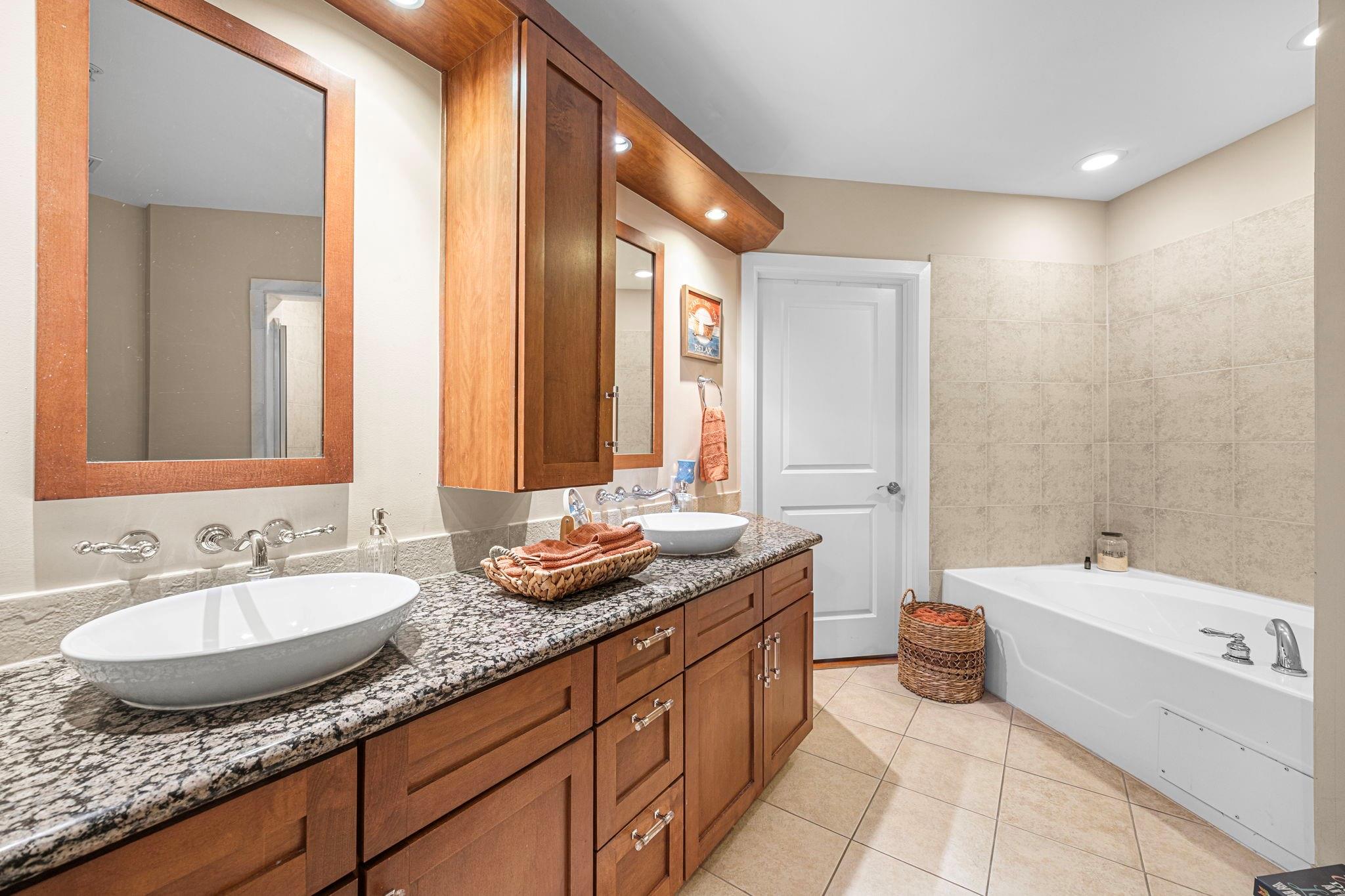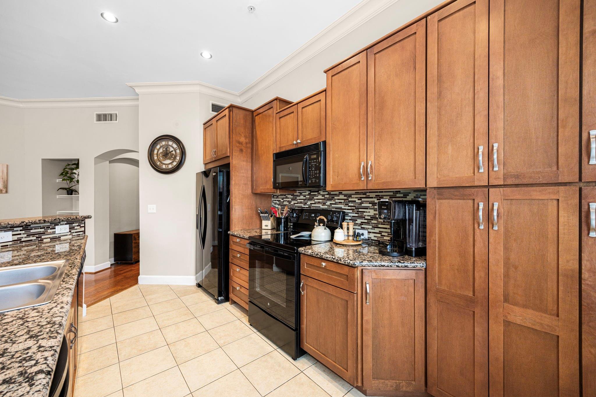 InteriorFloors:Tile,WoodBathroom Description:Primary Bath: Double Sinks,Primary Bath: Separate Shower,Primary Bath: Soaking Tub,Secondary Bath(s): Shower OnlyBedroom Desc:En-Suite Bath,Split Plan,Walk-In ClosetKitchen Desc:Breakfast Bar,Kitchen open to Family Room,PantryRoom Description:1 Living Area,Entry,Utility Room in HouseHeating:Central ElectricCooling:Central ElectricWasher/Dryer Conn:YesDishwasher:YesDisposal:YesMicrowave:YesRange:Electric CooktopOven:Electric Oven,Single OvenAppliances:Dryer Included,Full Size,Refrigerator,Washer IncludedEnergy Feature:Ceiling FansInterior:Balcony,Fire/Smoke Alarm,Refrigerator Included,Window Coverings