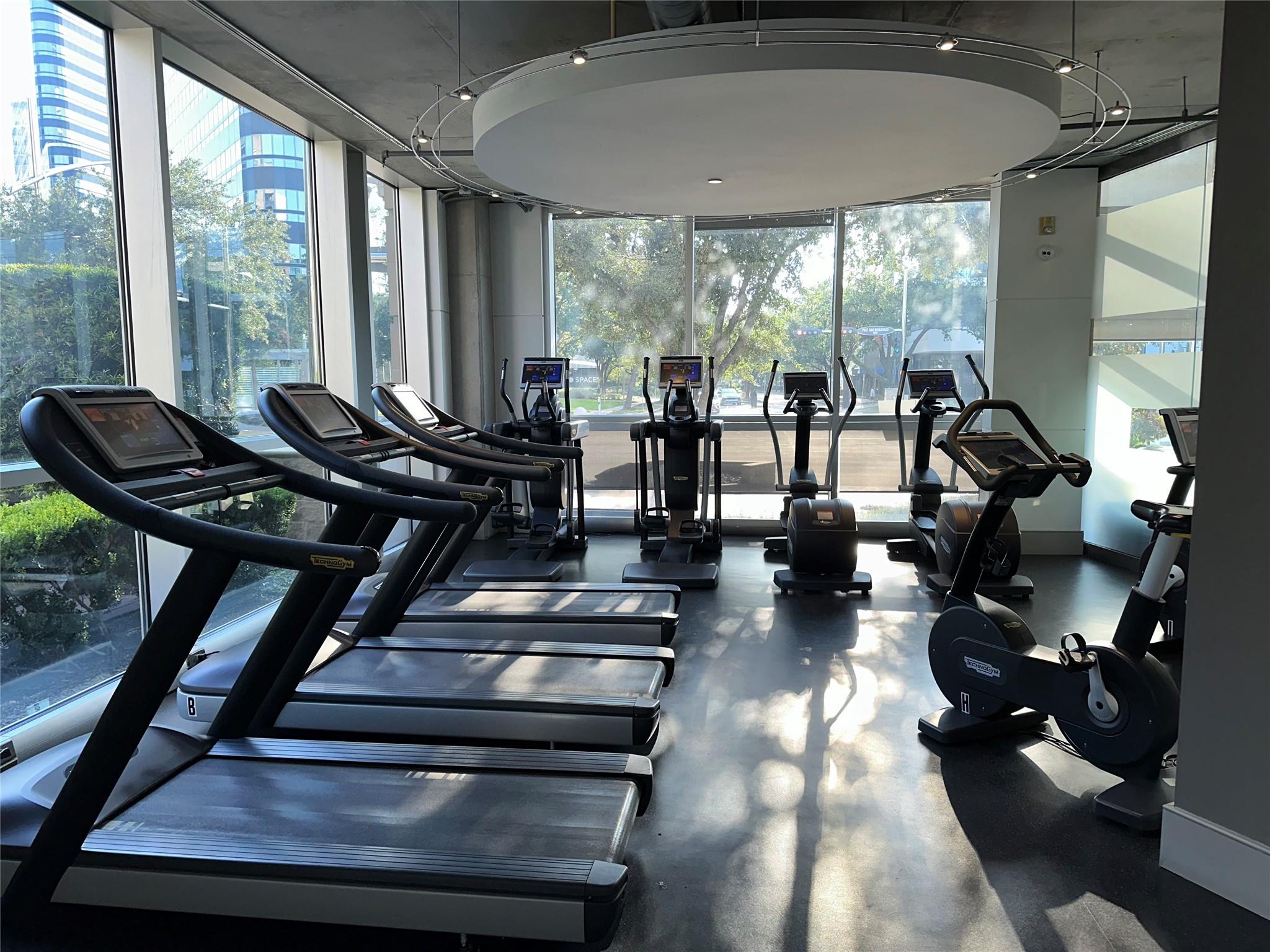 Get ready to live in the heart of the Galleria. Move in ready. This gem is located on the first floor of a contemporary designed building with such amenities like a pool, outdoor kitchen, outdoor fireplace, a stat of the art gym, a coffee bar, conference room, private party room, movie theater, valet parking and a reception area. Ideally located within walking distance to great dining, shopping and entertainment. The unit boasts a great floor plan with high ceilings, a generous primary bedroom, a study with a built-in that has a murphy bed and can be utilized as a secondary bedroom. This unit is move -in ready. Call and schedule your tour today.