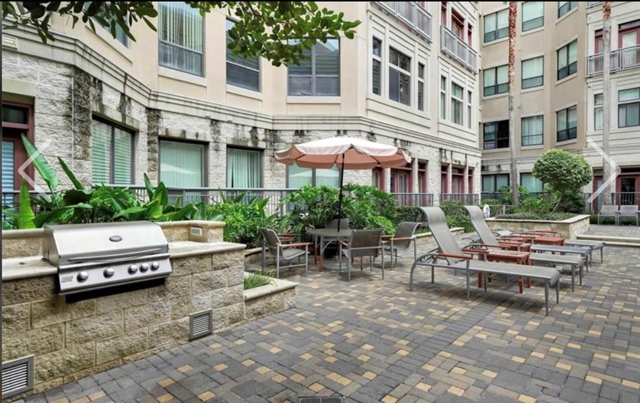 Welcome to Lofts on Post Oak # 3609! A precious Gem to be discovered with many features and great value! Light and bright floorplan that flows with great vibrant energy. Features highly coveted extras not typically found in other 1br units including french glass doors overlooking resort pool facing romantic (out-door) fireplace and picturesque courtyard! Full size Washer/dryer included in laundry room. For those who work at home enjoy free standing office desk with plenty of bookshelves, Wide plank wood tile flooring throughout, light kitchen cabinets, granite kitchen countertops, refrigerator included as well. Bathroom designer mirrors and lighting, garden tub and shower. Primary room features wide walk-in closet with shelving. High Ceilings and lots of Natural Sunlight throughout! Ask about furniture packaging with lovely condo.