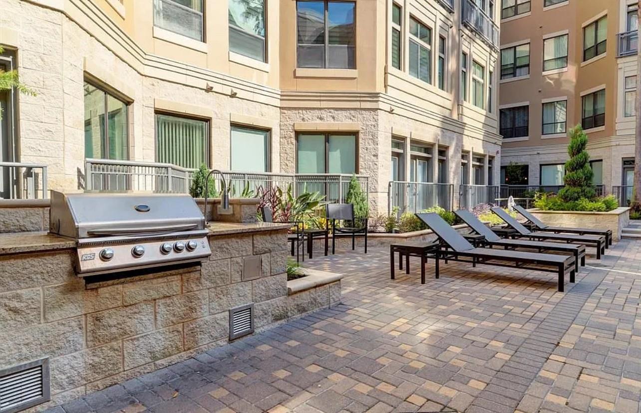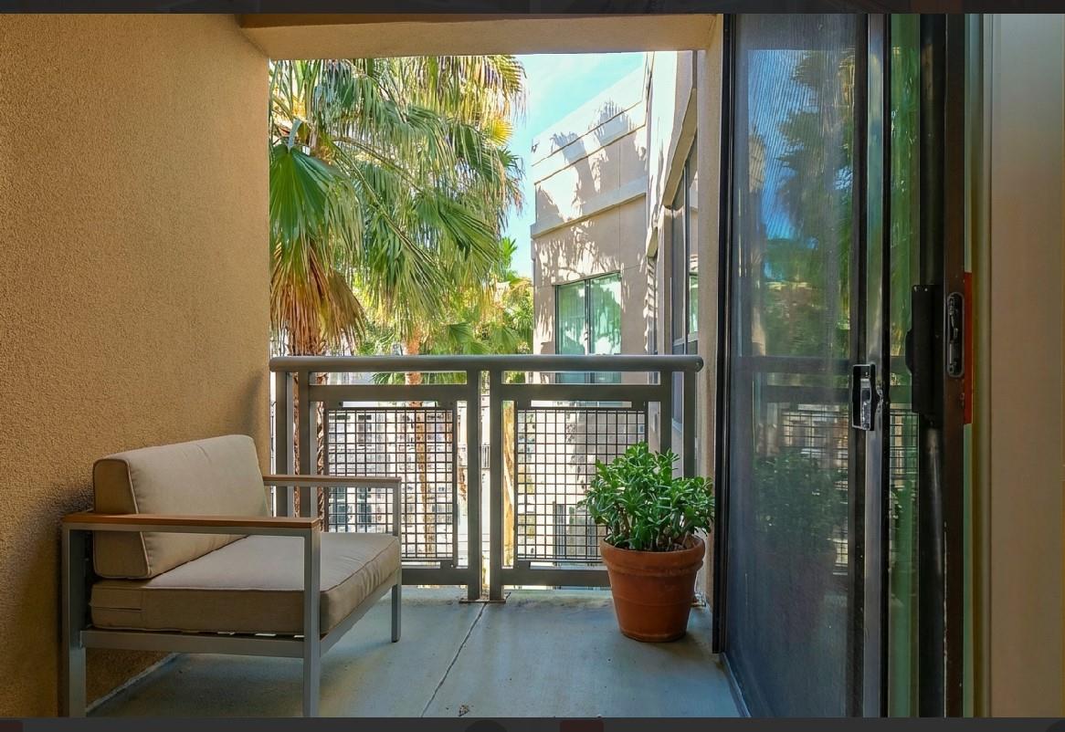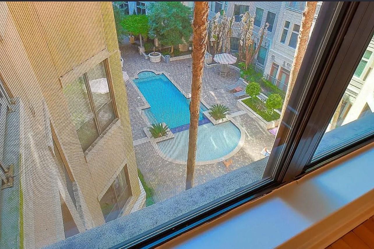 Experience elevated living in this highly sought-after M-7 floor plan, perched on the top floor with a private balcony overlooking the resort-style pool. Privately positioned on a corner of the fourth floor, this exceptionalism condo is bathed in natural light. High ceilings, rich hardwood flooring in the living areas, and a thoughtfully designed, kitchen flows seamlessly into an expansive living and dining space—ideal for refined entertaining and everyday comfort. Primary bedroom serves as a serene retreat, complete with an en-suite spa-inspired bathroom featuring double vanities, a garden soaking tub, and a separate walk-in shower. The residence comes fully appointed with a refrigerator, washer, and dryer for effortless living. Recent enhancements Included:HVAC system replaced in 2022Dishwasher replaced in 2021 Washer and dryer replaced in 2021 Residents have access to resort-caliber amenities, swimming pools, coffee bar, theater, conference room, dog park, fitness center.