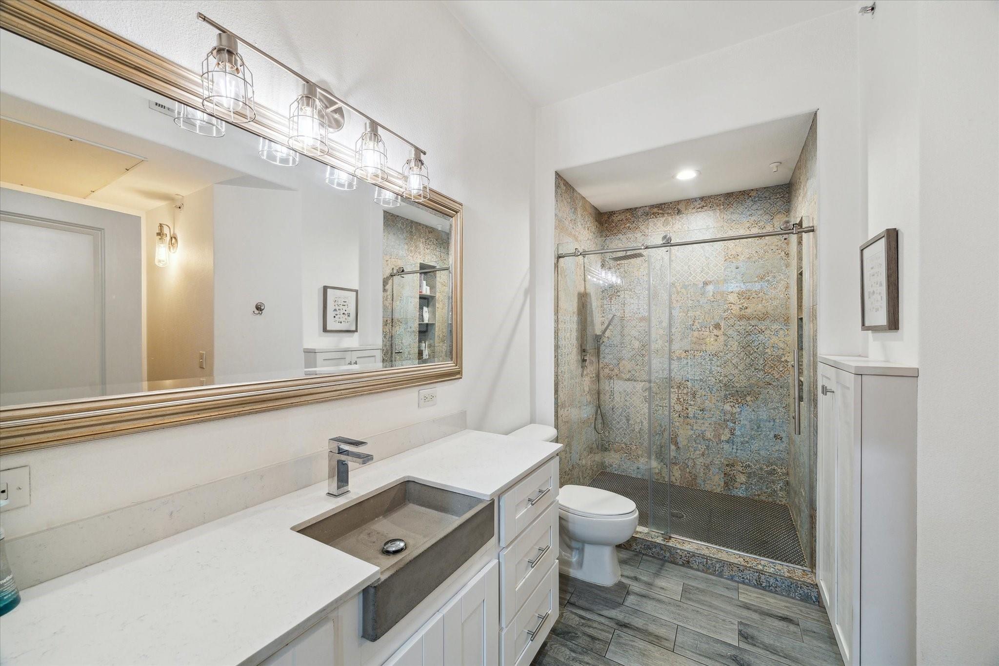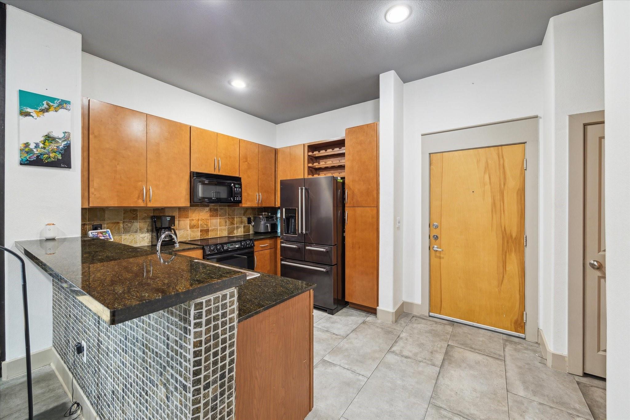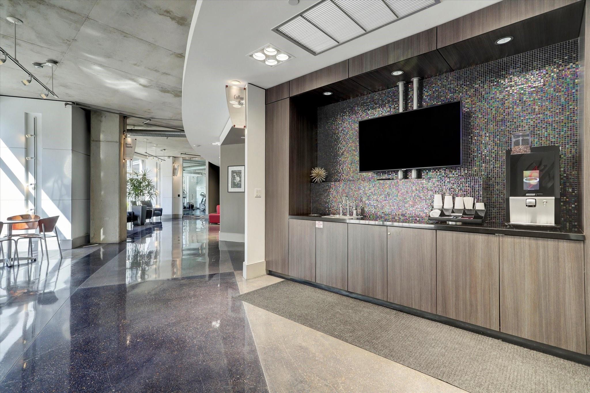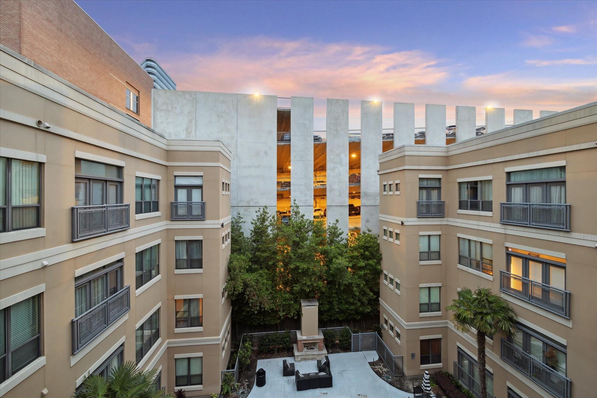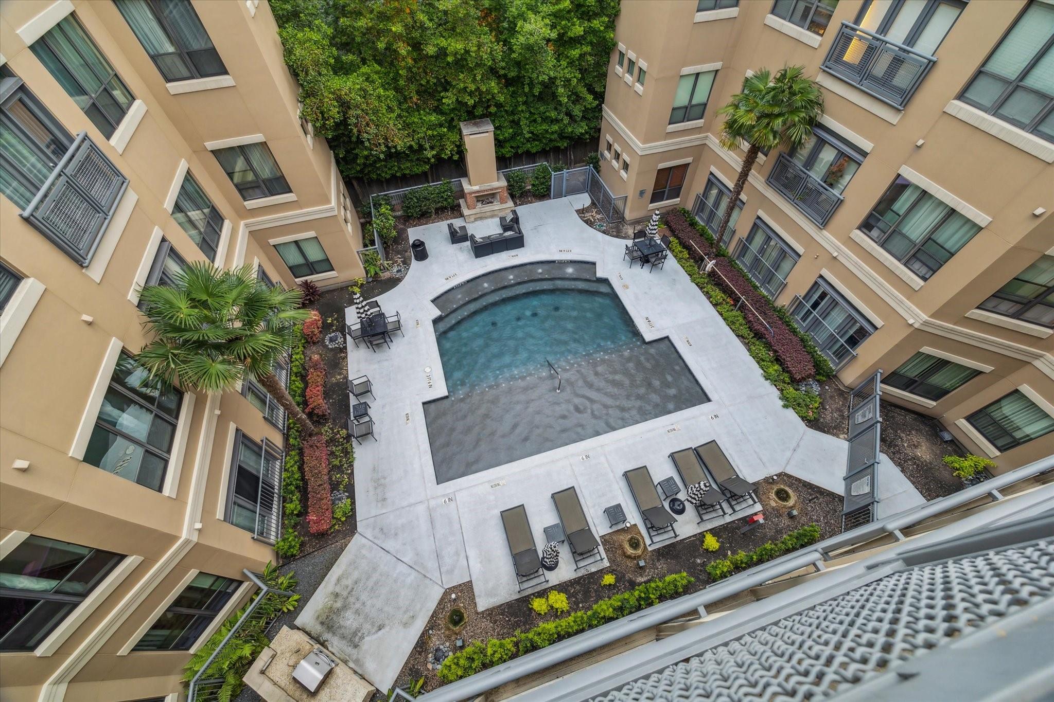 Experience luxurious urban living in this spacious 1-bedroom, 1-bath condo featuring high ceilings, exposed brick wall, oversized tile flooring, and beautiful built-ins. The open layout includes a granite kitchen with sleek cabinetry and breakfast bar. The living area offers floor-to-ceiling windows and access to a private patio overlooking the pool courtyard. The bedroom provides generous natural light and the bath is updated with a modern vanity, deep basin sink, and oversized walk-in shower with Moroccan tile. Enjoy a full suite of amenities including concierge service, a resort-style pool and patio, fitness center, theater room, conference room, party room with kitchen, and an outdoor pet area. Gated parking and secure access add peace of mind. Located near luxury shopping, dining and entertainment.