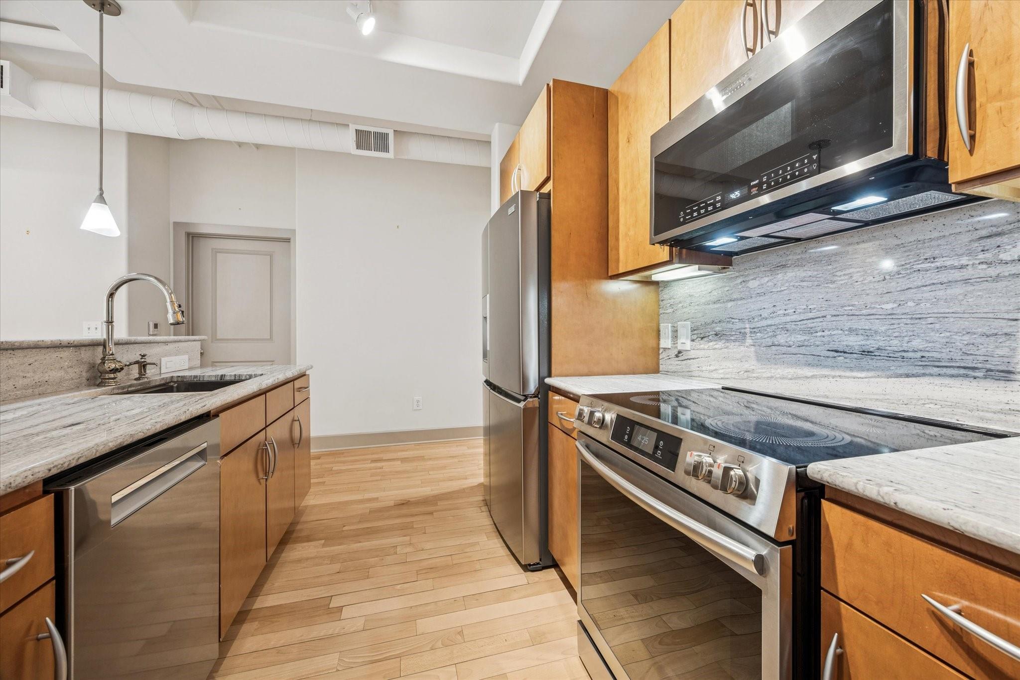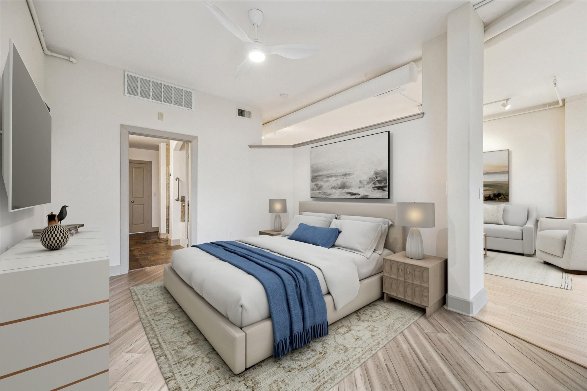 Experience refined urban living at The Lofts on Post Oak. This impeccably updated, move-in-ready home features fresh paint throughout, including concrete walls and exposed ductwork for a modern, gallery-style look. Upgrades include new engineered bedroom flooring, new fans, beautifully refinished living area floors, soft-close cabinetry, under-cabinet lighting, stone countertops, premium stainless appliances, designer fixtures, Kohler faucets, a custom closet, lighted mirror, and a Kohler Karing smart toilet. Enjoy a loft-inspired layout with high ceilings, a spacious bedroom with balcony, dedicated study, laundry room with storage, a reserved parking spot, and oversized windows with serene oak views. Amenities include six resort-style pools, outdoor kitchens, a two-level fitness center, 20-seat theater, valet, 24/7 concierge and security, business center, coffee bar, and club room. Walk to the Galleria, top dining, Uptown Park, Highland Village, River Oaks District, and more.