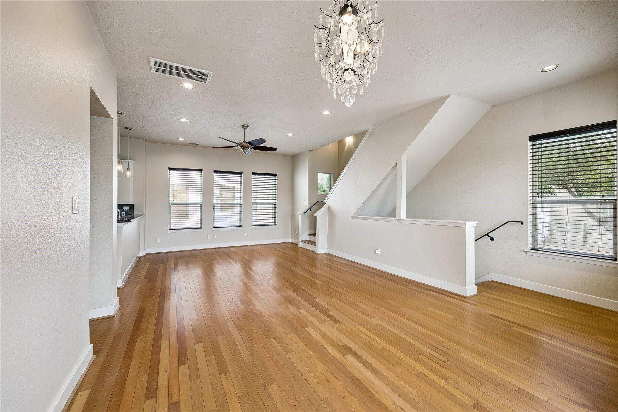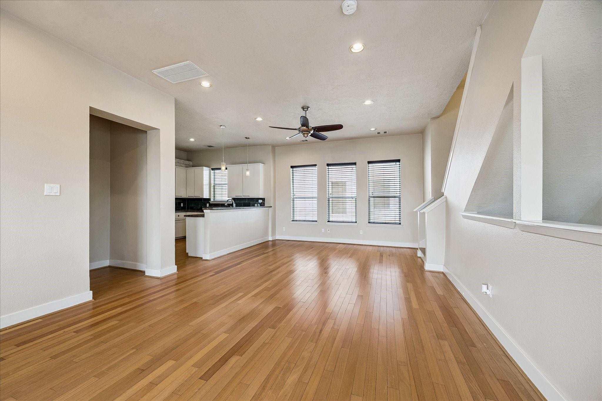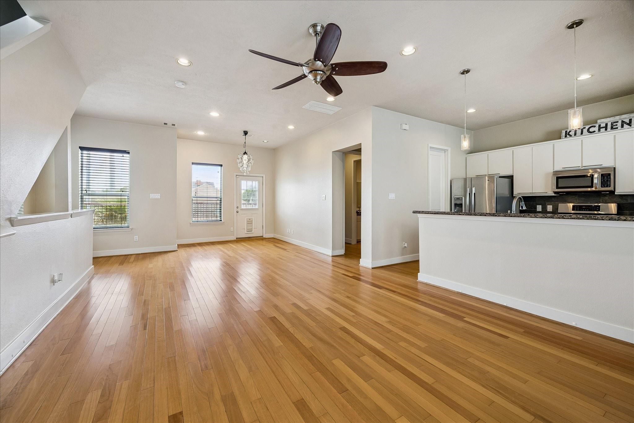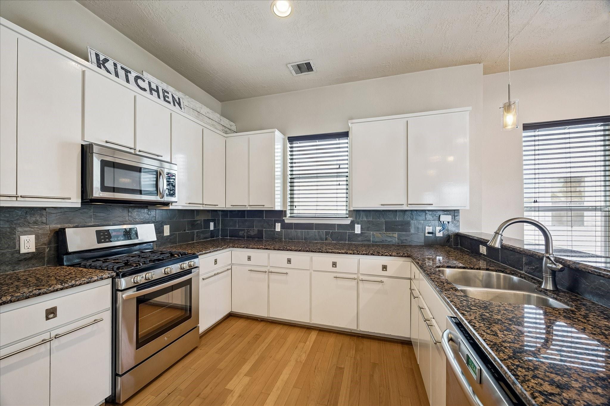 InteriorFloors:Engineered Wood,TileCountertop:GraniteBathroom Description:Full Secondary Bathroom Down,Primary Bath: Double Sinks,Primary Bath: Jetted Tub,Primary Bath: Separate ShowerBedroom Desc:1 Bedroom Down - Not Primary BR,En-Suite Bath,Primary Bed - 3rd Floor,Walk-In ClosetKitchen Desc:Kitchen open to Family Room,Pantry,Pots/Pans DrawersRoom Description:1 Living Area,Entry,Living Area - 2nd Floor,Utility Room in HouseHeating:Central GasCooling:Central ElectricWasher/Dryer Conn:YesDishwasher:YesDisposal:YesCompactor:NoMicrowave:YesRange:Gas RangeOven:Electric OvenIce Maker:NoAppliances:Dryer Included,Refrigerator,Washer IncludedInterior:Fire/Smoke Alarm,Formal Entry/Foyer,High Ceiling,Refrigerator Included