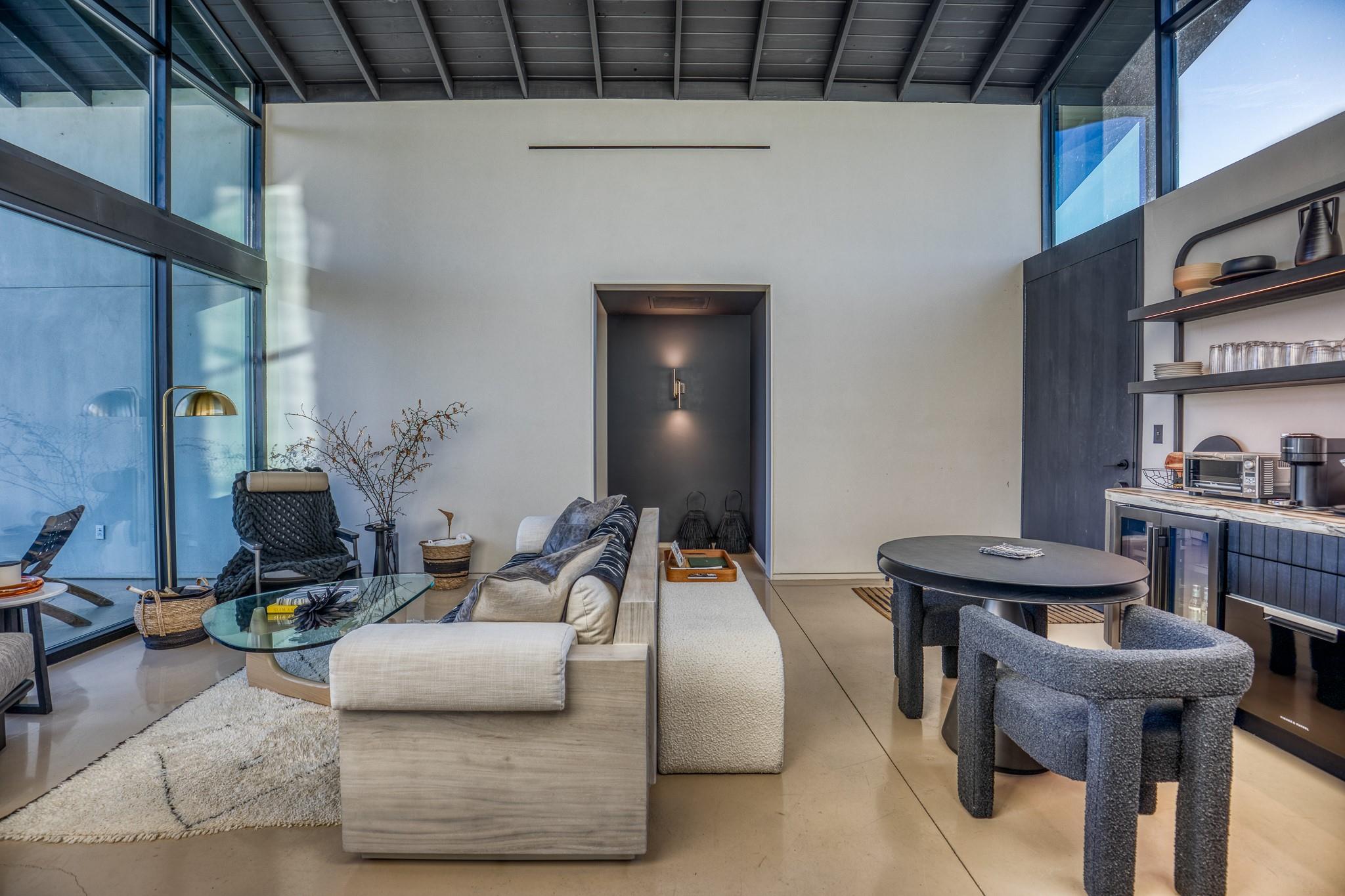 Let this be the beginning of your dream. Perched on a hillside on a rolling 74.24 acres, sits the coolest structure. A 2 bedroom casita rises out of the bucolic surroundings. Both bedrooms have ensuite baths elegantly finished with marble and the finest hardware or you can choose to shower or bathe outside under the stars. Between the bedrooms is the common living space perfect for guests to visit and relax on overnight stays. The living space features a coffee and drinks bar with a wine/drinks refrigerator. Exquisitely furnished, both the architect and designer are award winning. The original barns have been re-engineered with sound, power and internet access perfect for events. Located near the historic and popular Round Top, restaurants and shopping are just minutes away. This property can be your home away from home or an investment with plans for future expansion. With easy access to Highway 290, you are equal distance from both Austin and Houston.