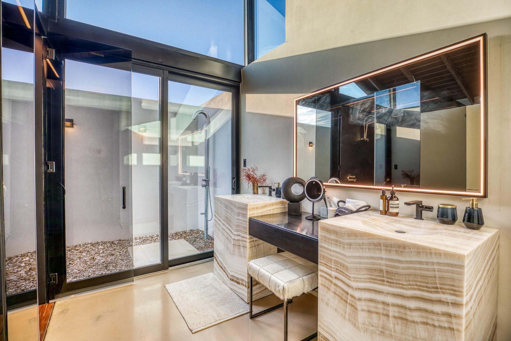 InteriorFloors:ConcreteRoom Description:1 Living AreaBedroom Desc:2 Bedrooms Down,En-Suite BathBathroom Description:Primary Bath: Shower Only,Two Primary BathsHeating:Central ElectricCooling:Central ElectricCompactor:NoIce Maker:NoMicrowave:NoDisposal:NoDishwasher:NoInterior:Fire/Smoke Alarm,High Ceiling,Vaulted Ceiling,Wine/Beverage Fridge