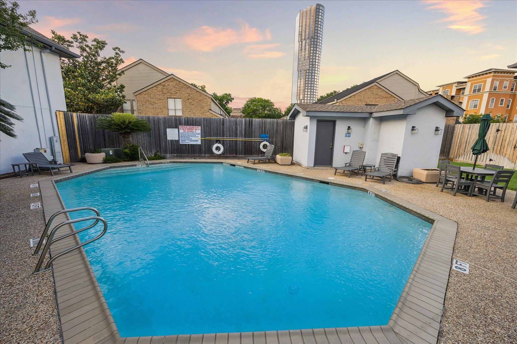 Tucked away in the heart of Houston’s Galleria area, this beautifully updated condo offers the perfect blend of style, comfort, and convenience. Inside, you’ll find a thoughtfully renovated kitchen with sleek cabinetry, modern backsplash, stainless steel appliances, and a spacious island that opens seamlessly to the dining room—ideal for everyday living and entertaining. The light-filled living room features soaring ceilings, large windows, and a cozy fireplace that creates a warm, inviting atmosphere. The spacious primary suite includes two walk-in closets, providing ample storage. The updated bathroom showcases clean, contemporary finishes. Step outside to your private patio, perfect for morning coffee or evening unwinding. Residents also enjoy access to a community pool. Located just minutes from world-class shopping, dining, and entertainment at The Galleria and along Post Oak Blvd, this home puts everything you need right at your fingertips.