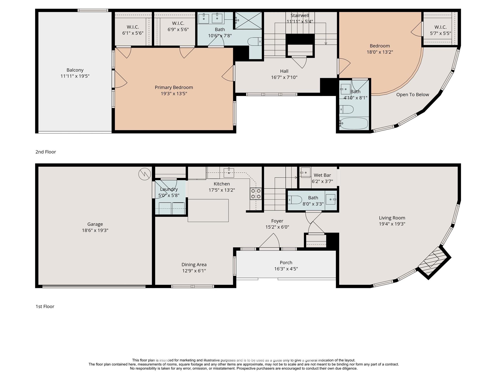 Second FloorPrimary Bedroom:19 x 13Bedroom:18 x 13Exterior Porch/Balcony:19 x 12