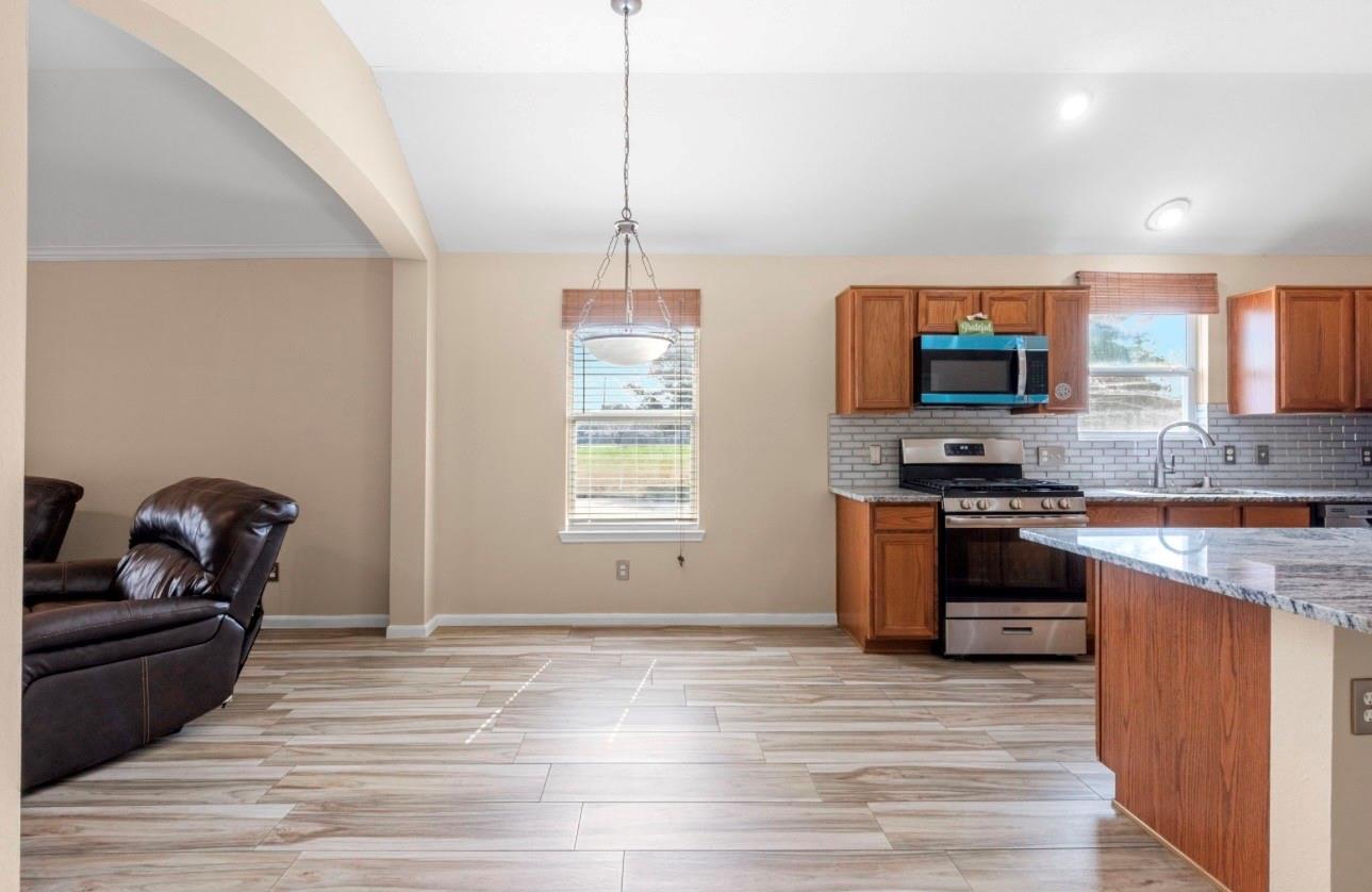 InteriorFloors:TileCountertop:GraniteBathroom Description:Primary Bath: Double Sinks,Primary Bath: Separate Shower,Primary Bath: Soaking TubBedroom Desc:All Bedrooms DownKitchen Desc:Kitchen open to Family Room,PantryRoom Description:Family Room,Formal Dining,Formal LivingHeating:Central GasCooling:Central ElectricConnections:Electric Dryer Connections,Gas Dryer Connections,Washer ConnectionsDishwasher:YesDisposal:YesMicrowave:YesRange:Gas RangeOven:Gas OvenEnergy Feature:Ceiling FansInterior:Crown Molding,Dryer Included,Fire/Smoke Alarm,High Ceiling,Refrigerator Included,Washer Included