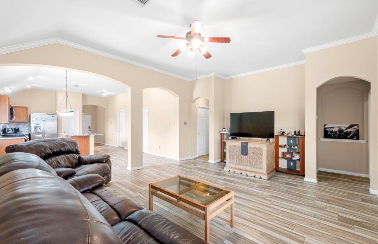 Charming one-story traditional home on a corner lot with a covered patio and sprinkler system. The garage is insulated and air-conditioned with high ceiling, offering potential use as an additional bedroom, office, or flex space. Features included all appliance, updated A/C and updated roof. Enjoy a prime location with nearby shopping, dining and entertainment. Convenient location across from a park and walking distance to school. A great opportunity with comfort, functionality, and location all in one!!!