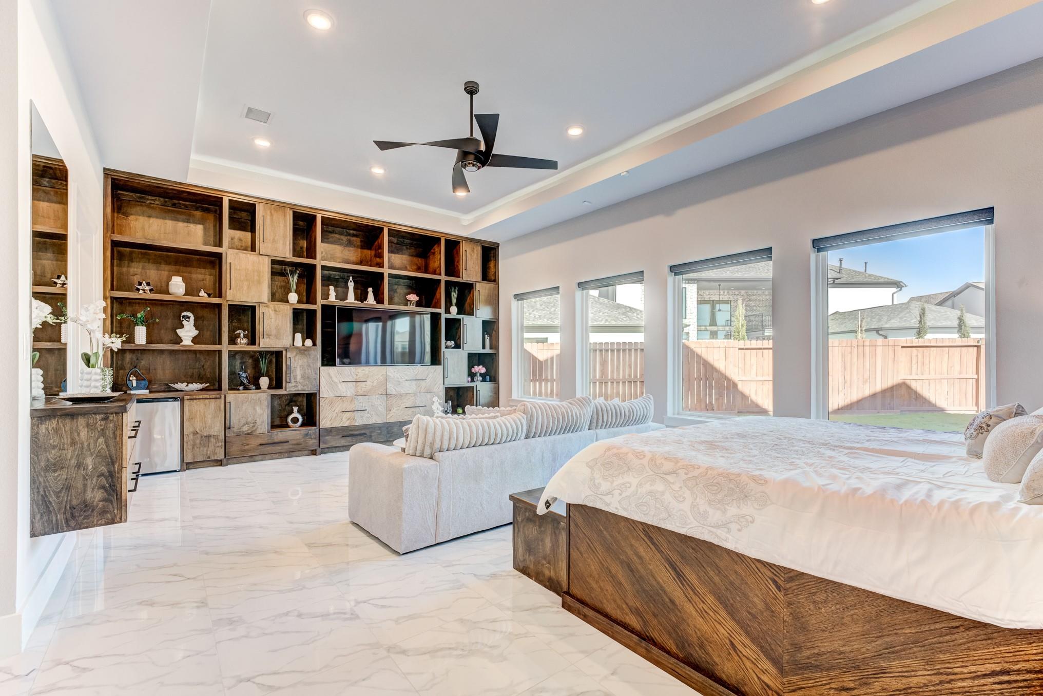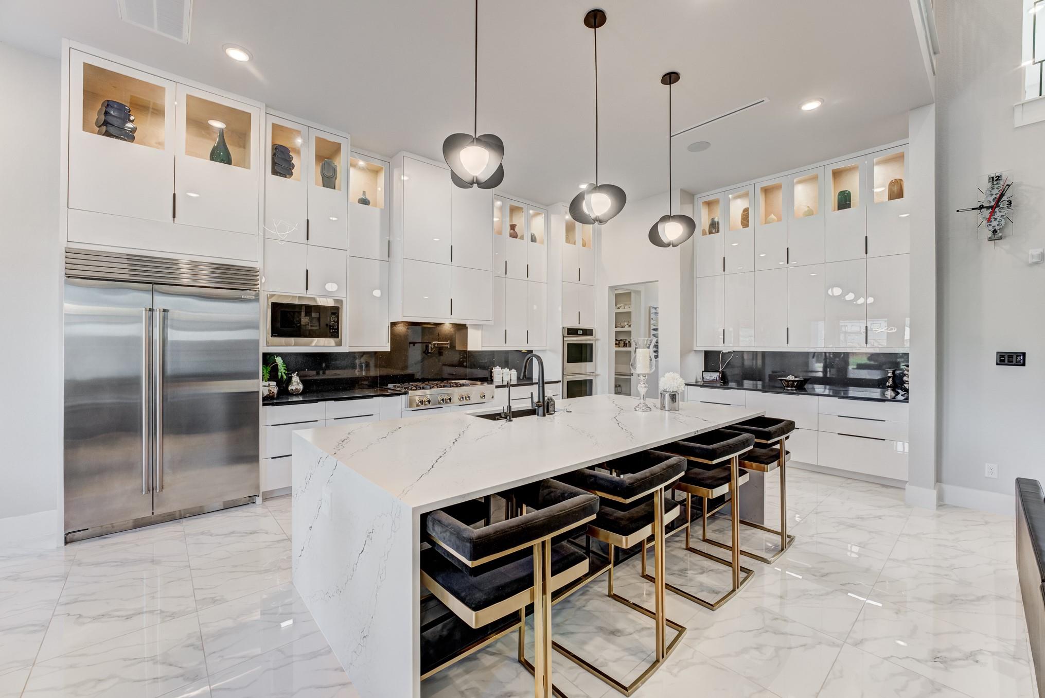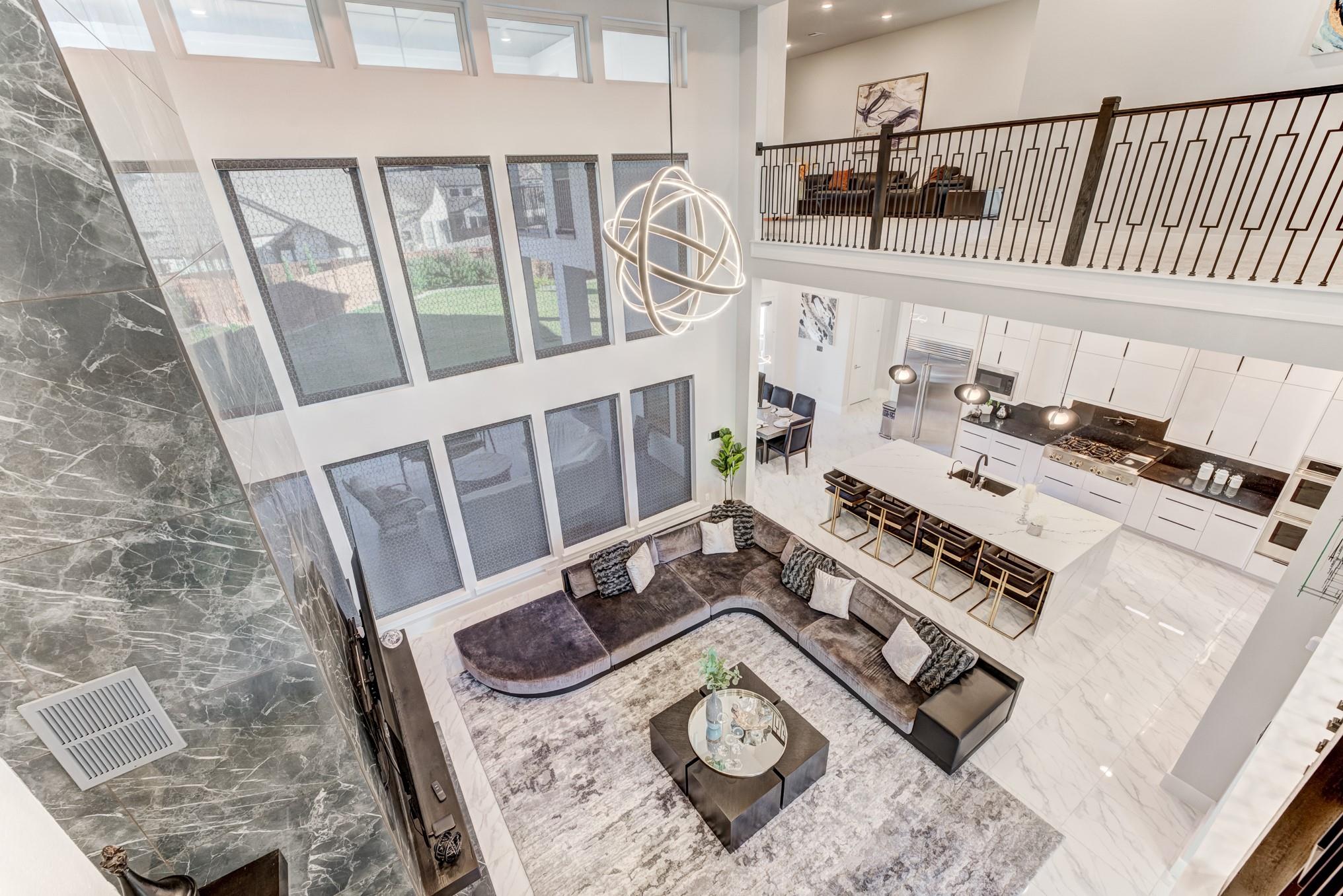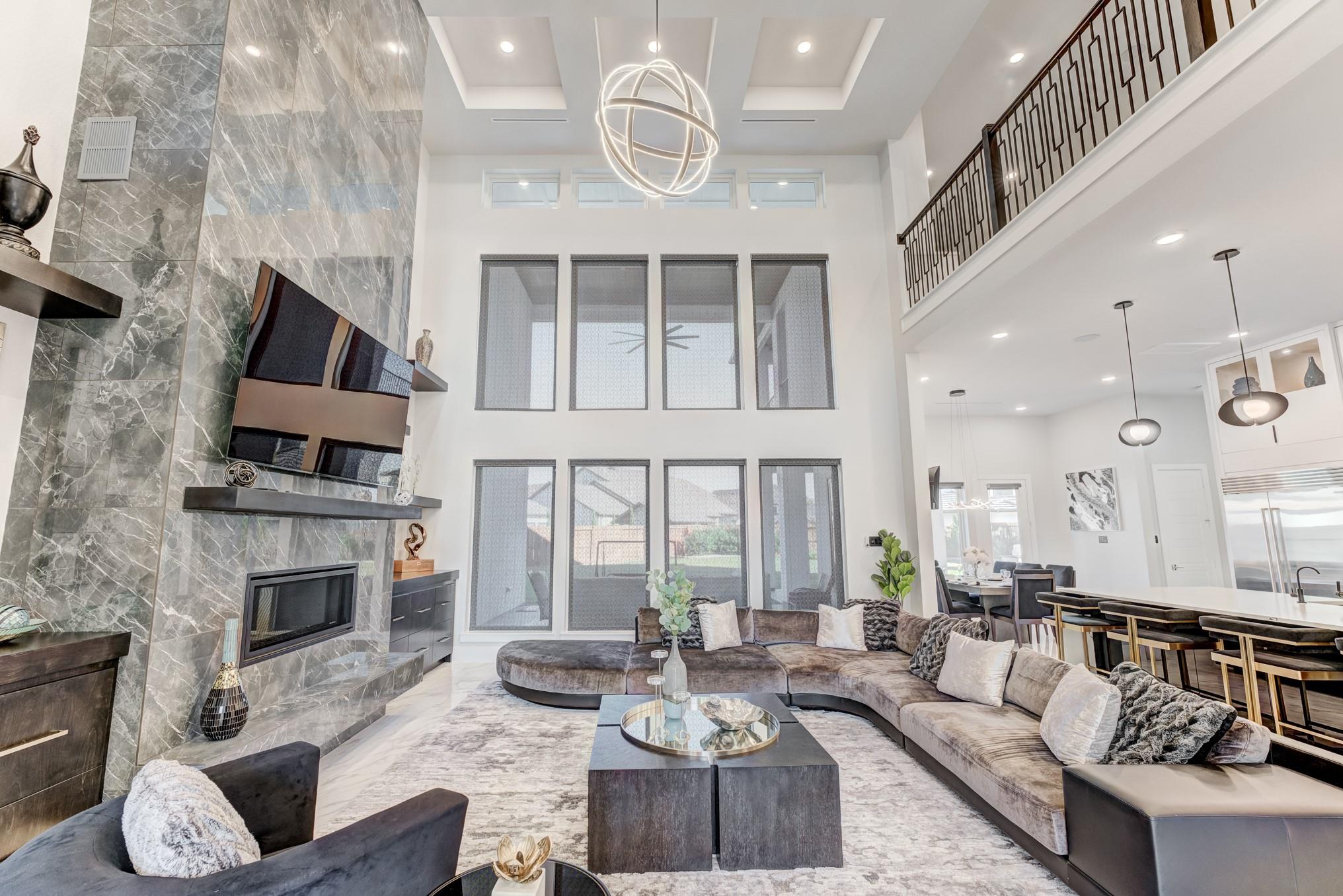 Experience unparalleled sophistication in this show-stopping 2-story estate in the prestigious Towne Lake community. This 5-bedroom, 6.5-bath residence blends modern architecture with timeless elegance, featuring a grand double-door entrance, soaring ceilings, and open-concept living with floor-to-ceiling windows, dual staircases, and indoor balcony. The designer kitchen is a true centerpiece, boasting a quartz island with breakfast bar, pot filler, double ovens, an expansive walk-in pantry, and a wine room, perfect for culinary creativity and entertaining. The primary suite redefines luxury with dual vanities, soaking tub, double shower, and an extraordinary two-level custom closet. Outdoors, enjoy your covered patio with high ceilings, outdoor kitchen, and manicured landscape. Complete with a 5-car garage and circle drive, surrounded by resort-style community amenities, and near top-rated schools, this breathtaking home is perfect for those who demand style, comfort, and distinction.