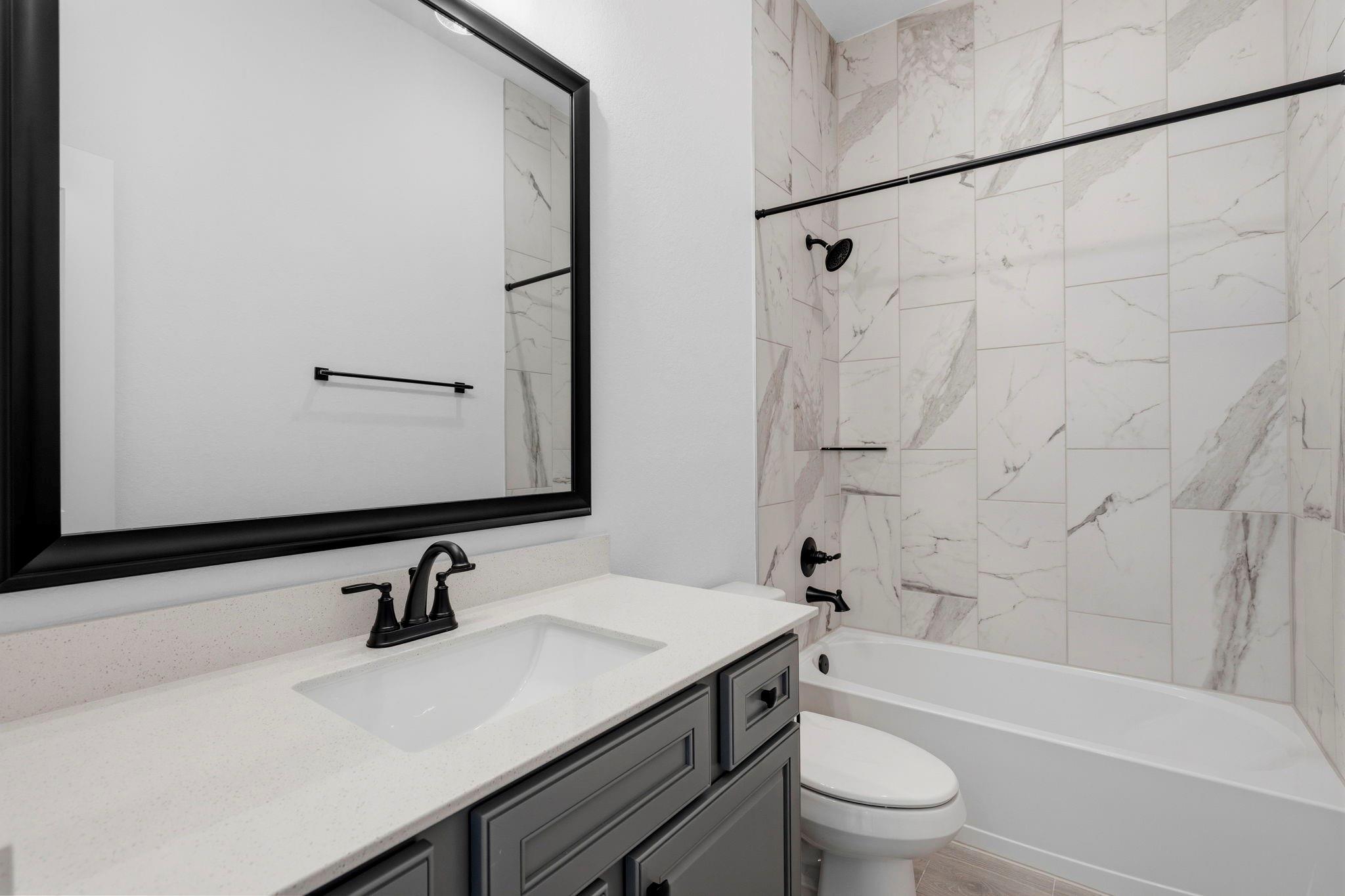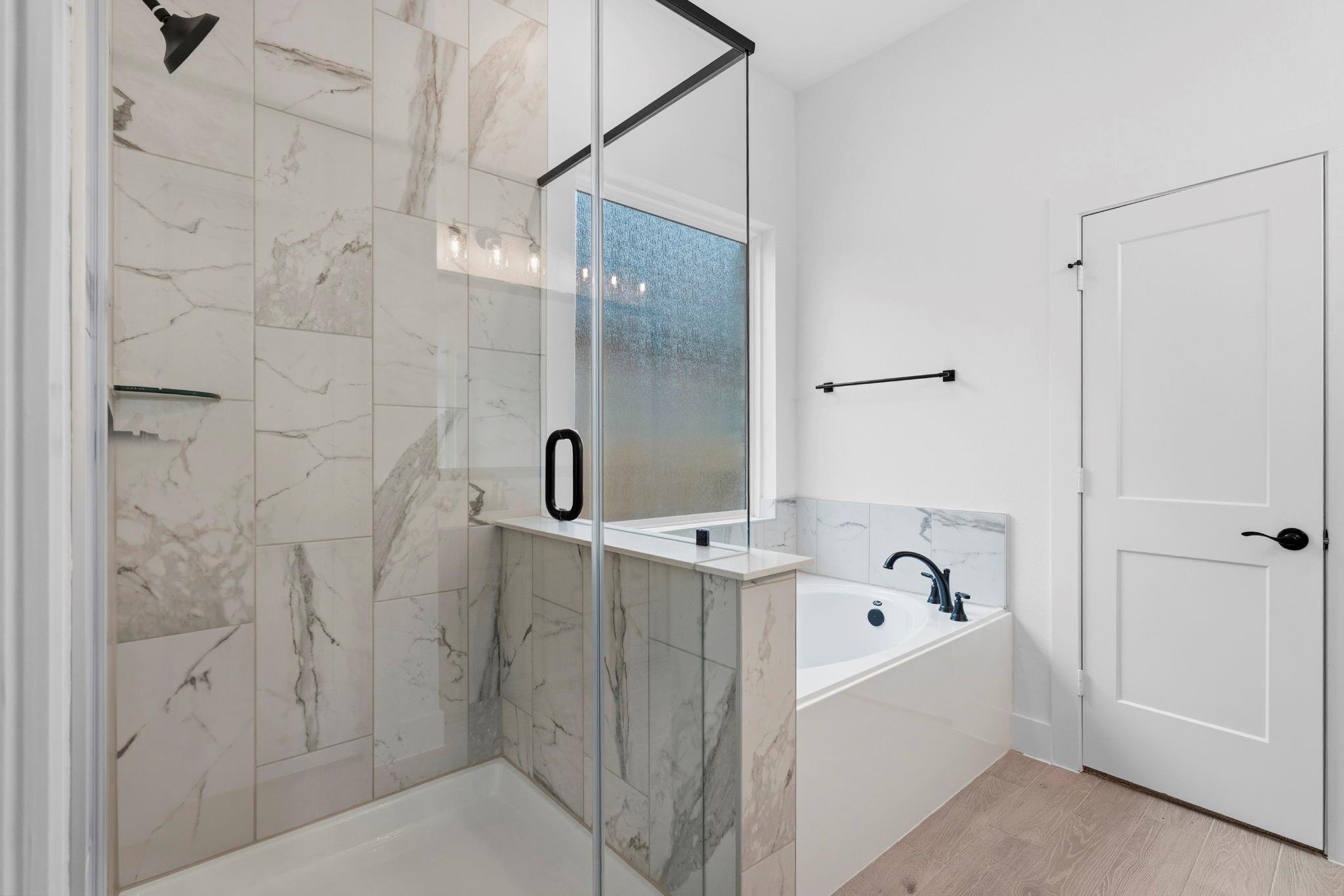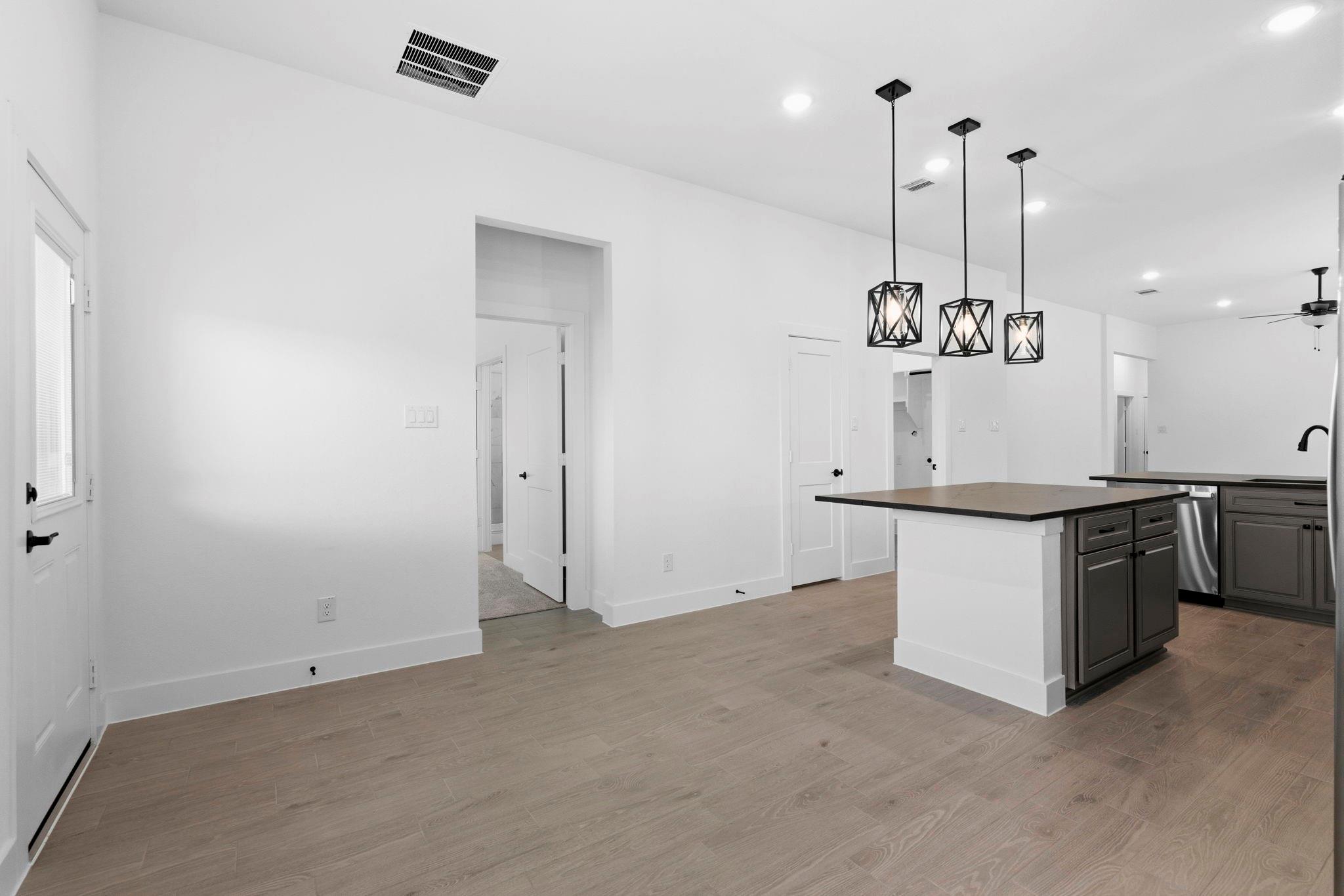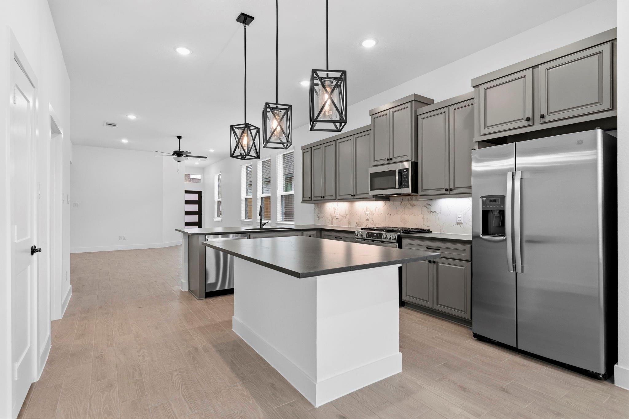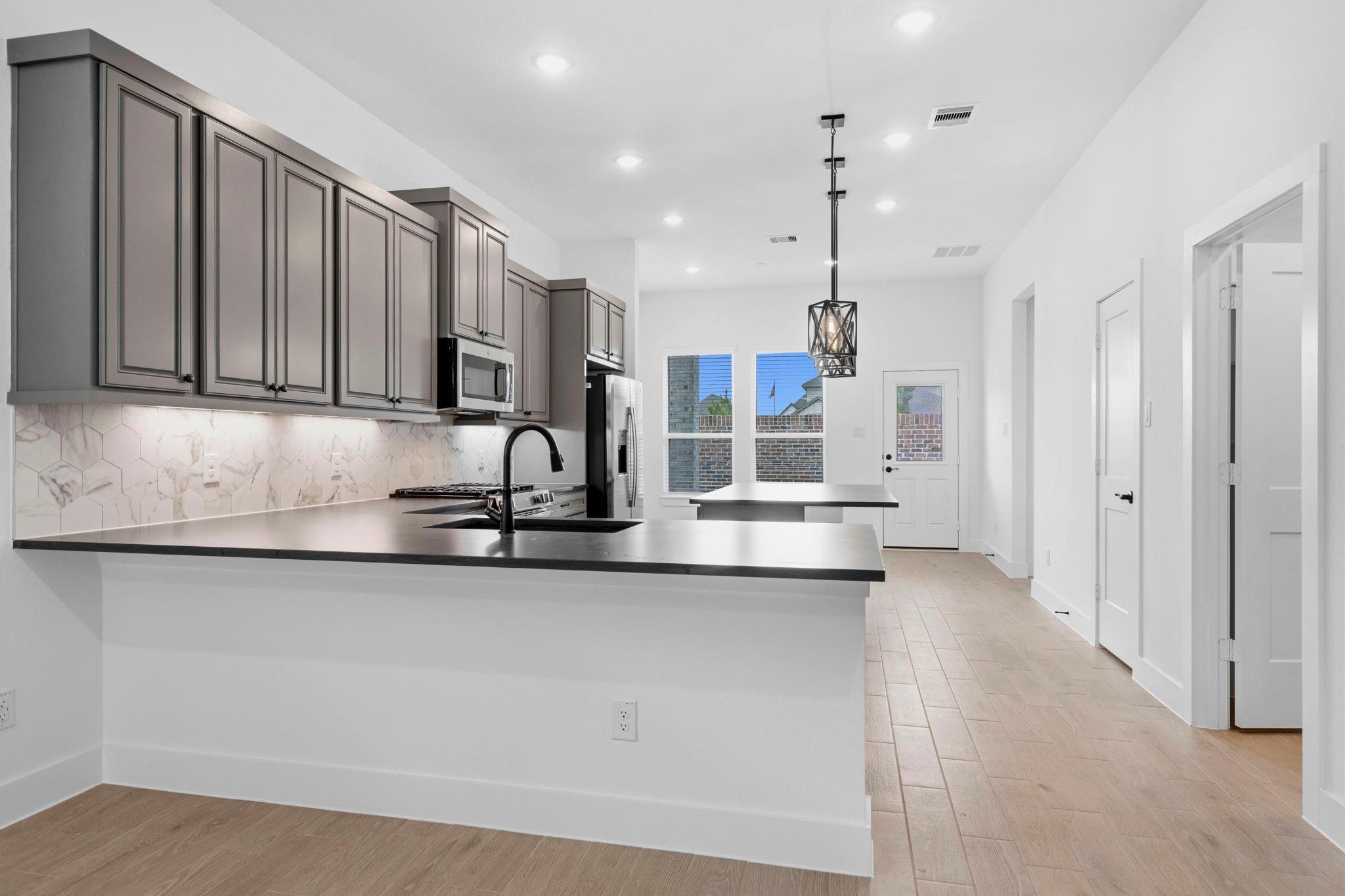 This beautiful never lived in one story offers a home office & no back neighbors. HUGE oversized front porch. Tall ceilings throughout. Kitchen includes matte black texturized countertops by Cambria, single undermount black sink, 42" cabinets with plenty of storage, hexagon tile backsplash and under cabinet lighting. Large island adding additional seating space with gorgeous pendant lights as well. Separate tub & shower in Primary Retreat. Full sprinkler system front & back. Garage door openers. 2" blinds. Tankless water heater. 16-SEER HVAC system with Merve 11 fresh air filtration system & so much more!