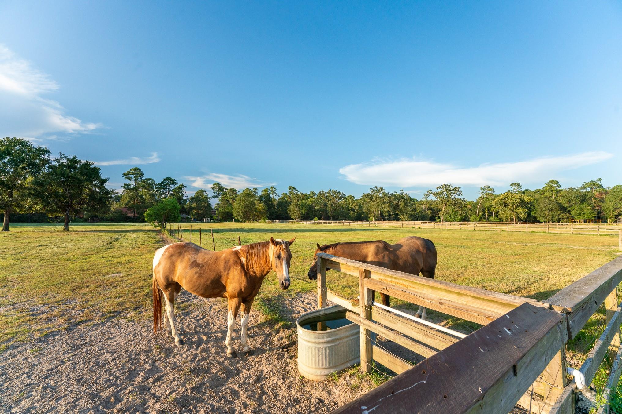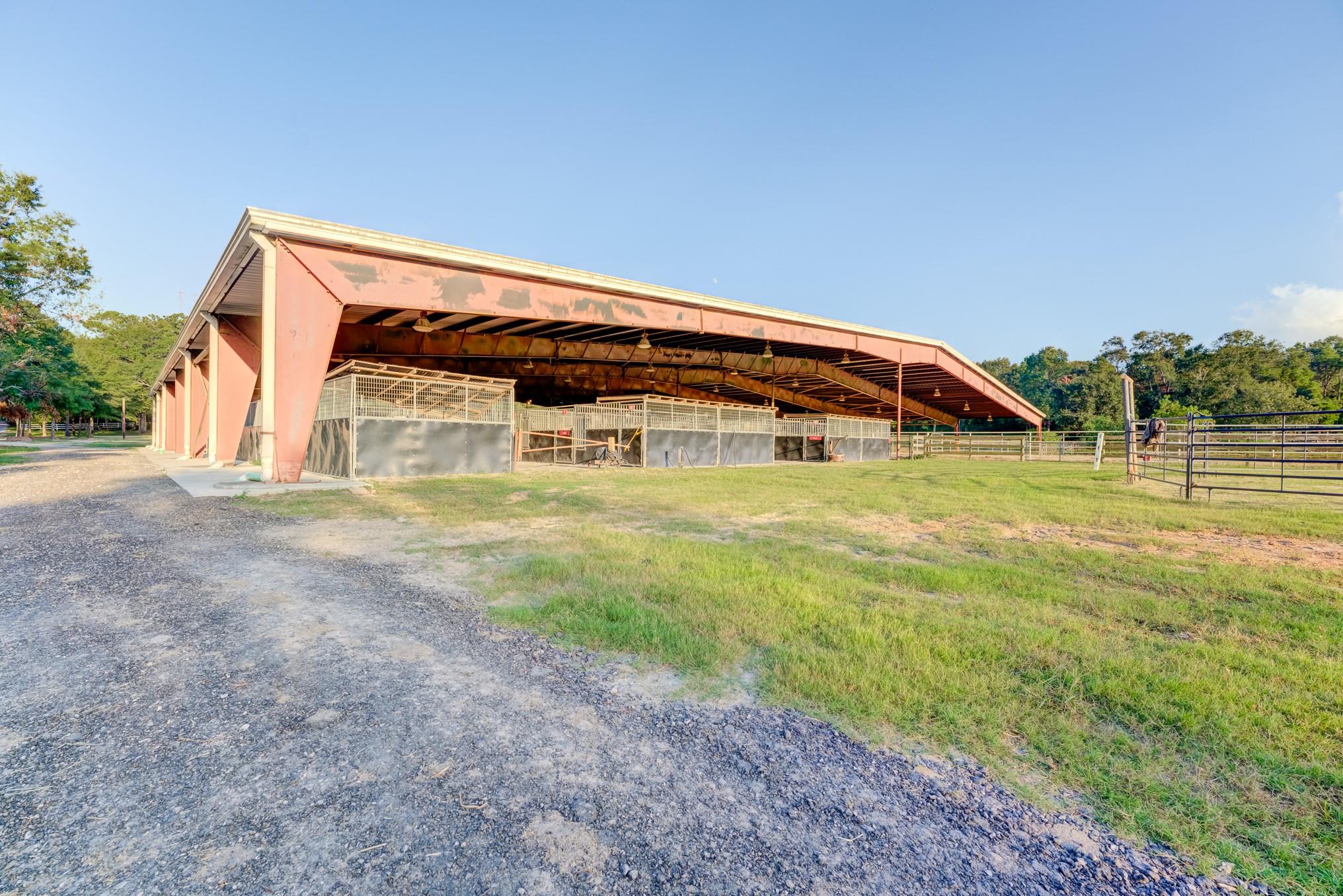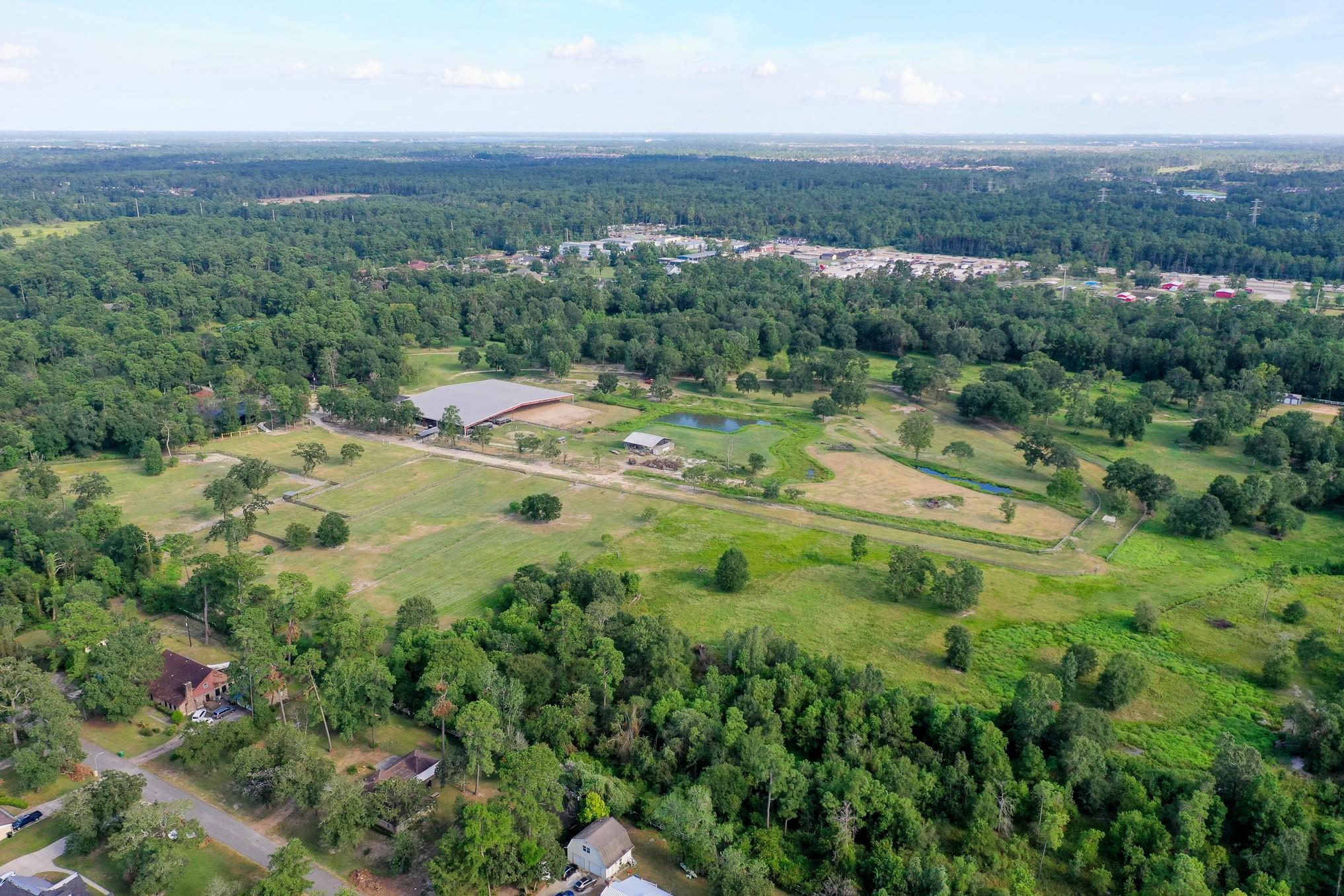 Incredible 75-acre farm and ranch property located in Humble. Nestled on the expansive lot are 2 gorgeous 3-bedroom, 2.5-bathroom, fully furnished homes currently used as AirBnBs. Utilize the 4,600 sq-ft. event venue, pavilion, 980 sq-ft. saloon, workshop, and barn for a variety of purposes. The property includes a large 43,000 sq-ft. horse ranch with arenas, pasture, 35 horse stalls, and 70-acres of sprawling green space for horseback riding. Take advantage of the space set up with utilities, allowing up to 8 tiny homes to be built! Located off I-69, commuters are only minutes from the George Bush Intercontinental Airport and Central Humble. Find popular shopping and dining at the Deerbrook Mall and Humblewood Shopping Center. Zoned to Humble ISD. Property highlights: 75 acres, 2 fully furnished homes, 43,000sq-ft. event space, space with utilities, 980 sq-ft. saloon. Area highlights: Convenient location, Close to the airport, close to highways, Humble ISD.