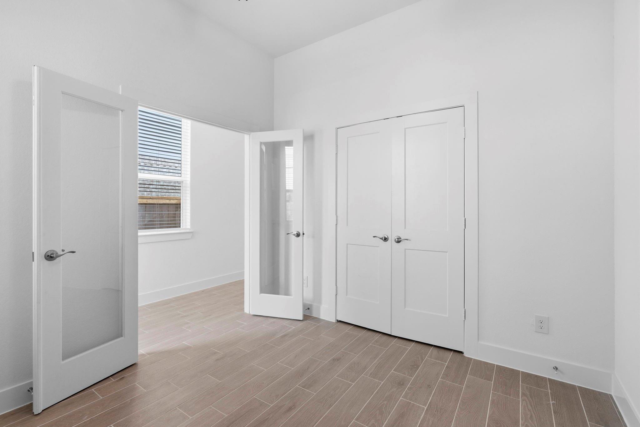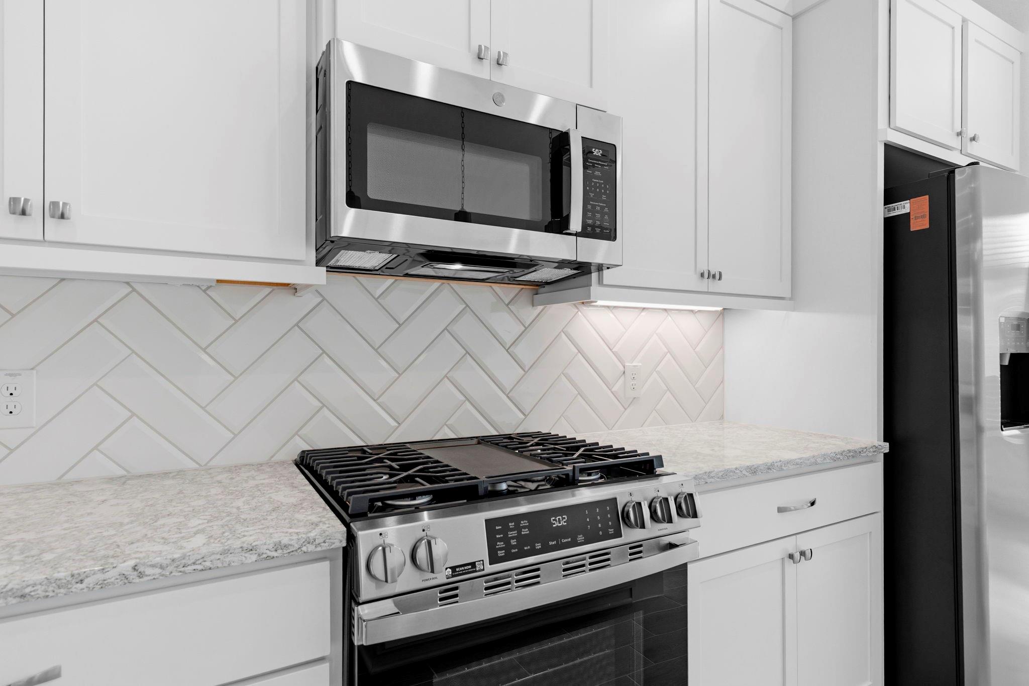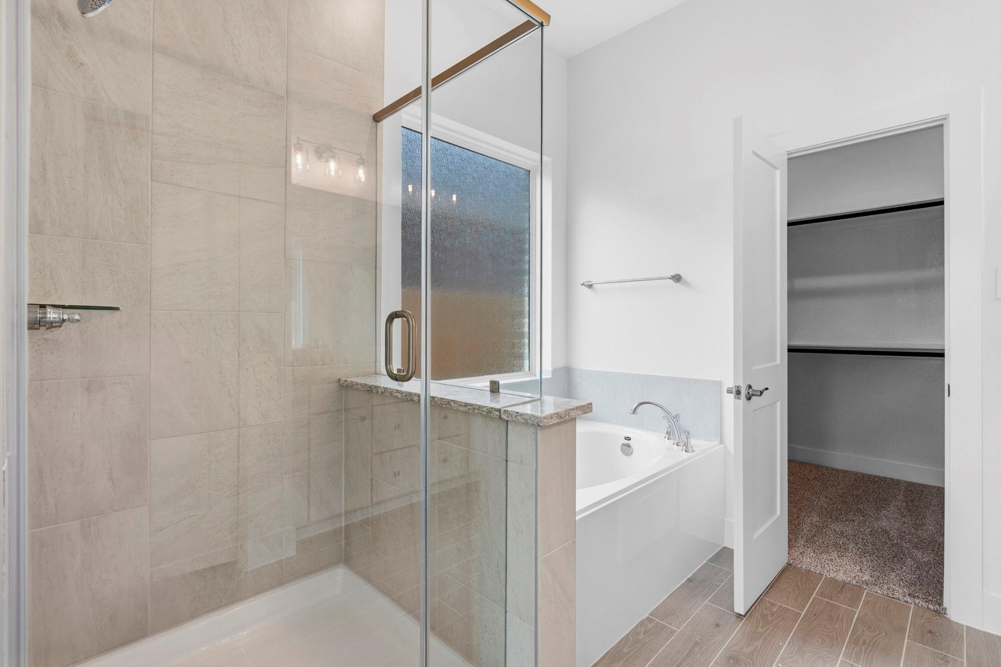 Light and bright designer finishes including wood look tile flooring throughout, 42" kitchen cabinets with under cabinet lighting and accent hardware. Large kitchen island with pendant lights. Herringbone tile backsplash. Farmhouse style undermount sink with single basin. Separate tub & shower in Primary Retreat. Located on a cul-de-sac street and walking distance to the entertainment pavilion and amenity center. Full sprinkler system. Blinds, garage door openers & stainless fridge included! Schedule your tour today!
