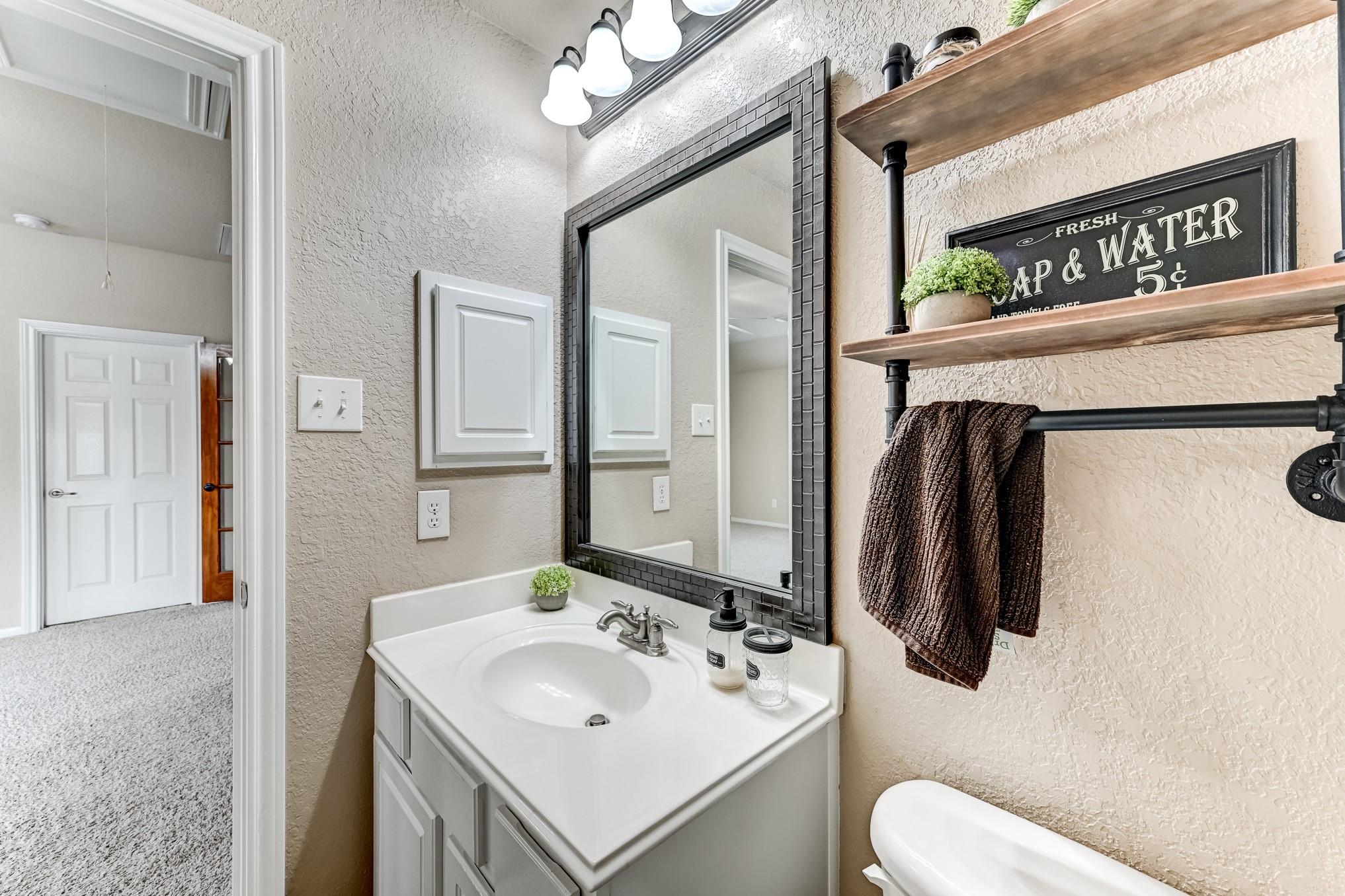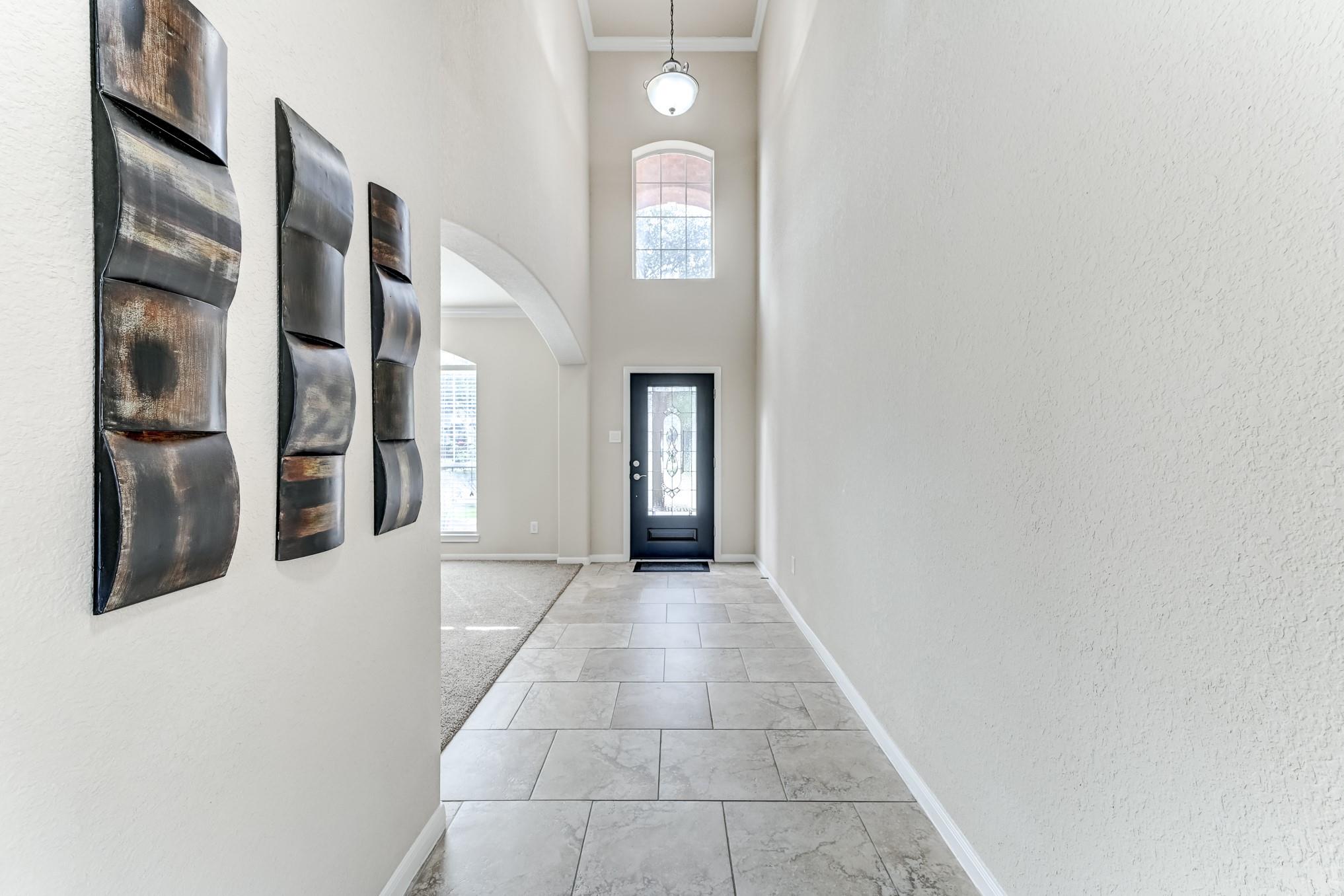 A bright and spacious 2-story home in the desirable Villages of Senterra Lakes offers comfort, style, and flexibility. This home features 4 bedrooms, 2.5 bathrooms, a formal dining room, a game room, and a living room with soaring ceilings and a cozy gas fireplace. The welcoming foyer showcases an elegant indoor balcony overlooking the main living area. The kitchen opens to the family room and includes a center island, granite countertops, tile backsplash, pantry, and a breakfast nook. The private primary suite features double sinks, a whirlpool tub, a separate shower, and a spacious walk-in closet. Step outside to a fenced backyard with a patio and no rear neighbors, providing added privacy and peaceful views. The home also features an irrigation system, and is pre-wired for surround sound and a security system. Residents enjoy community amenities including a clubhouse, pool, playground, and scenic trails, with convenient access to shopping, dining, schools, and major roadways.