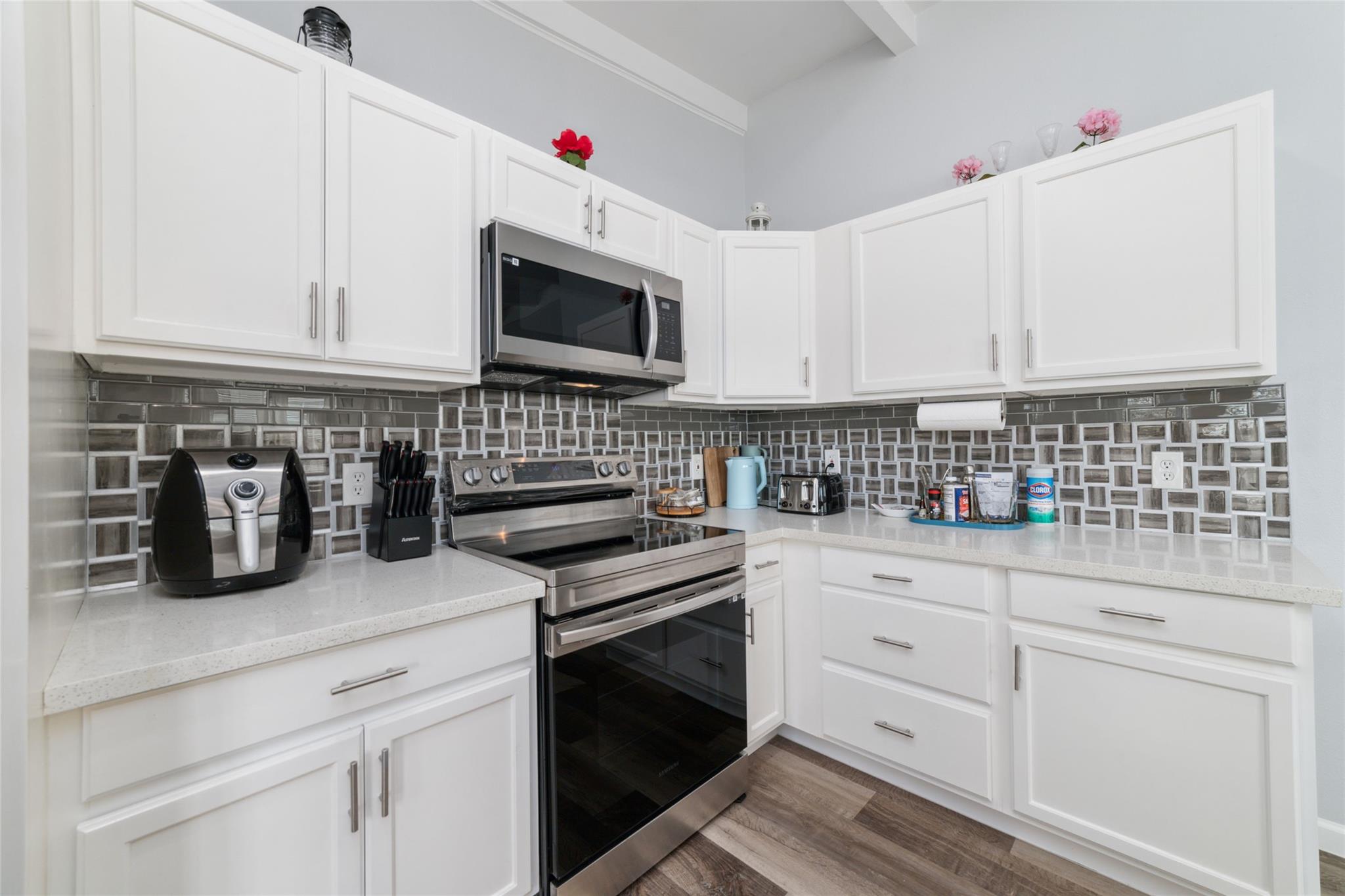 InteriorFloors:Carpet,Tile,Vinyl PlankCountertop:GraniteBathroom Description:Primary Bath: Double Sinks,Primary Bath: Tub/Shower ComboBedroom Desc:2 Bedrooms Down,Primary Bed - 2nd FloorKitchen Desc:Breakfast Bar,Island w/o Cooktop,Kitchen open to Family Room,PantryRoom Description:Breakfast Room,Kitchen/Dining Combo,Living Area - 2nd FloorHeating:Central ElectricCooling:Central ElectricConnections:Electric Dryer Connections,Gas Dryer Connections,Washer ConnectionsDishwasher:YesDisposal:YesCompactor:YesMicrowave:YesRange:Electric Cooktop,Electric RangeOven:Electric Oven,Freestanding OvenInterior:Balcony,Crown Molding,Fire/Smoke Alarm,High Ceiling,Refrigerator Included,Washer Included