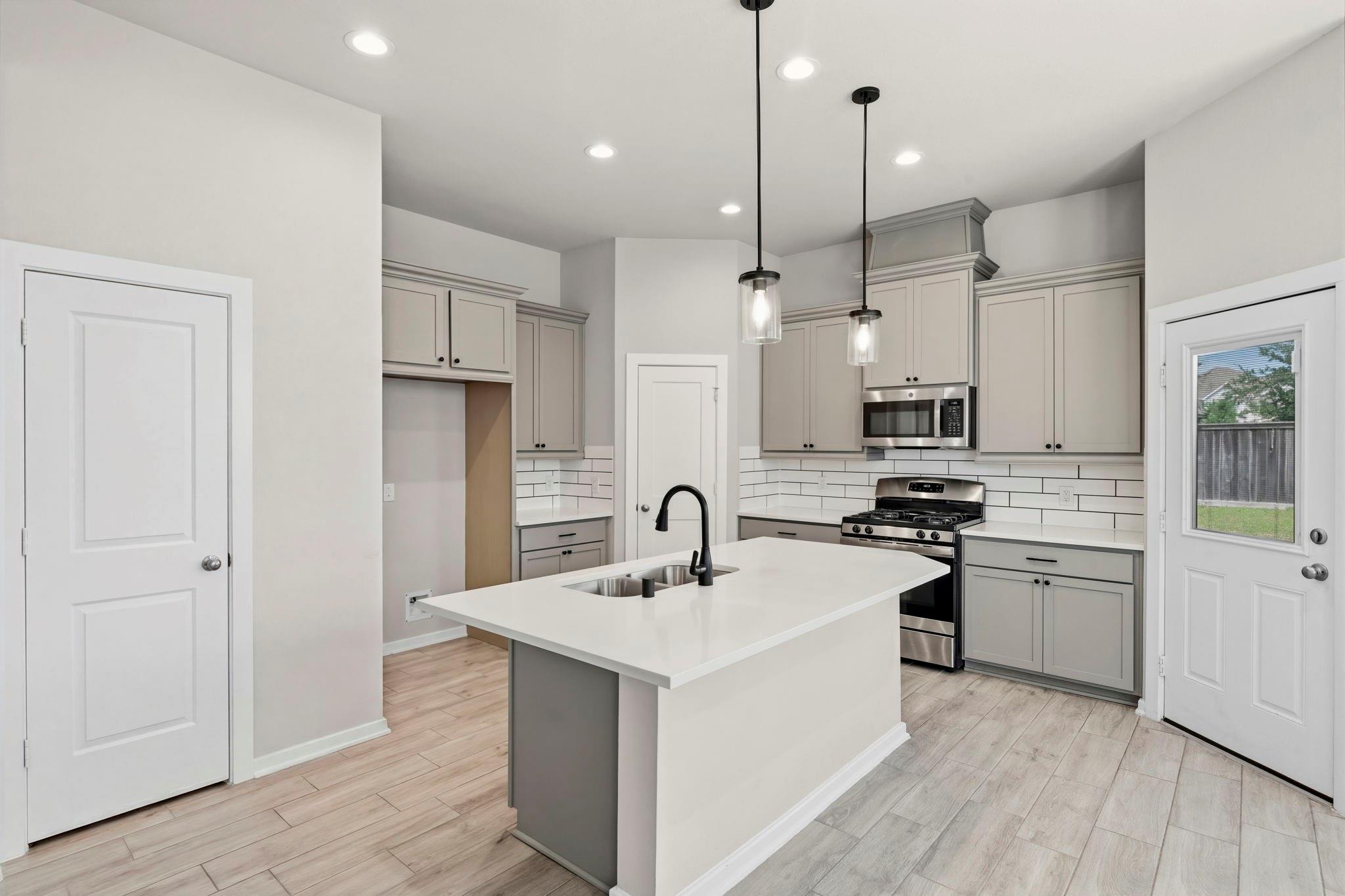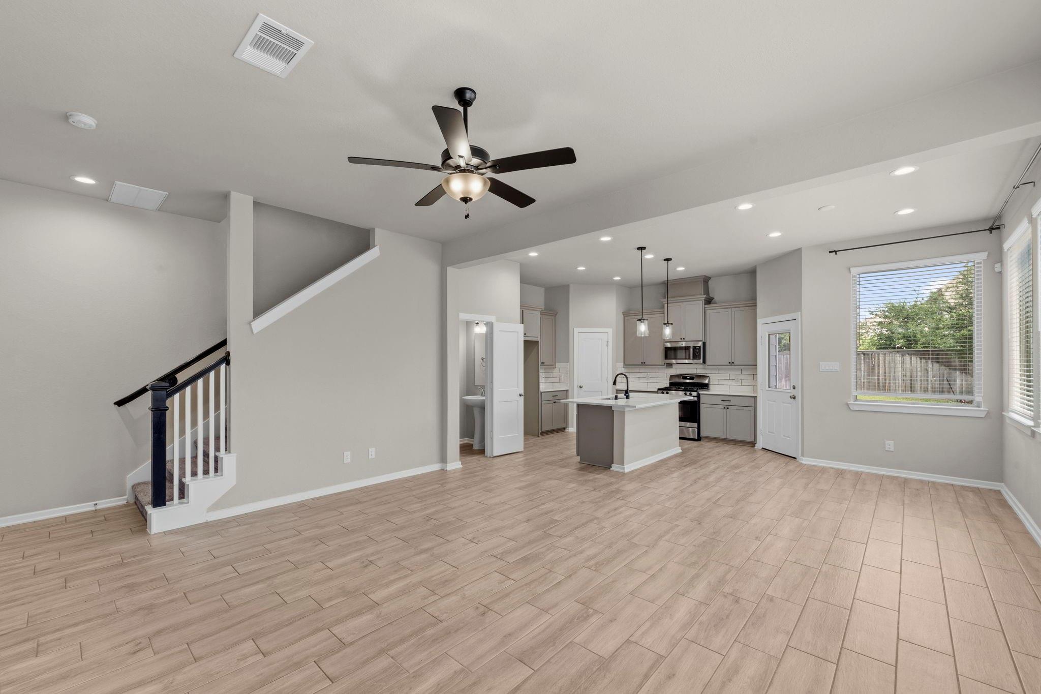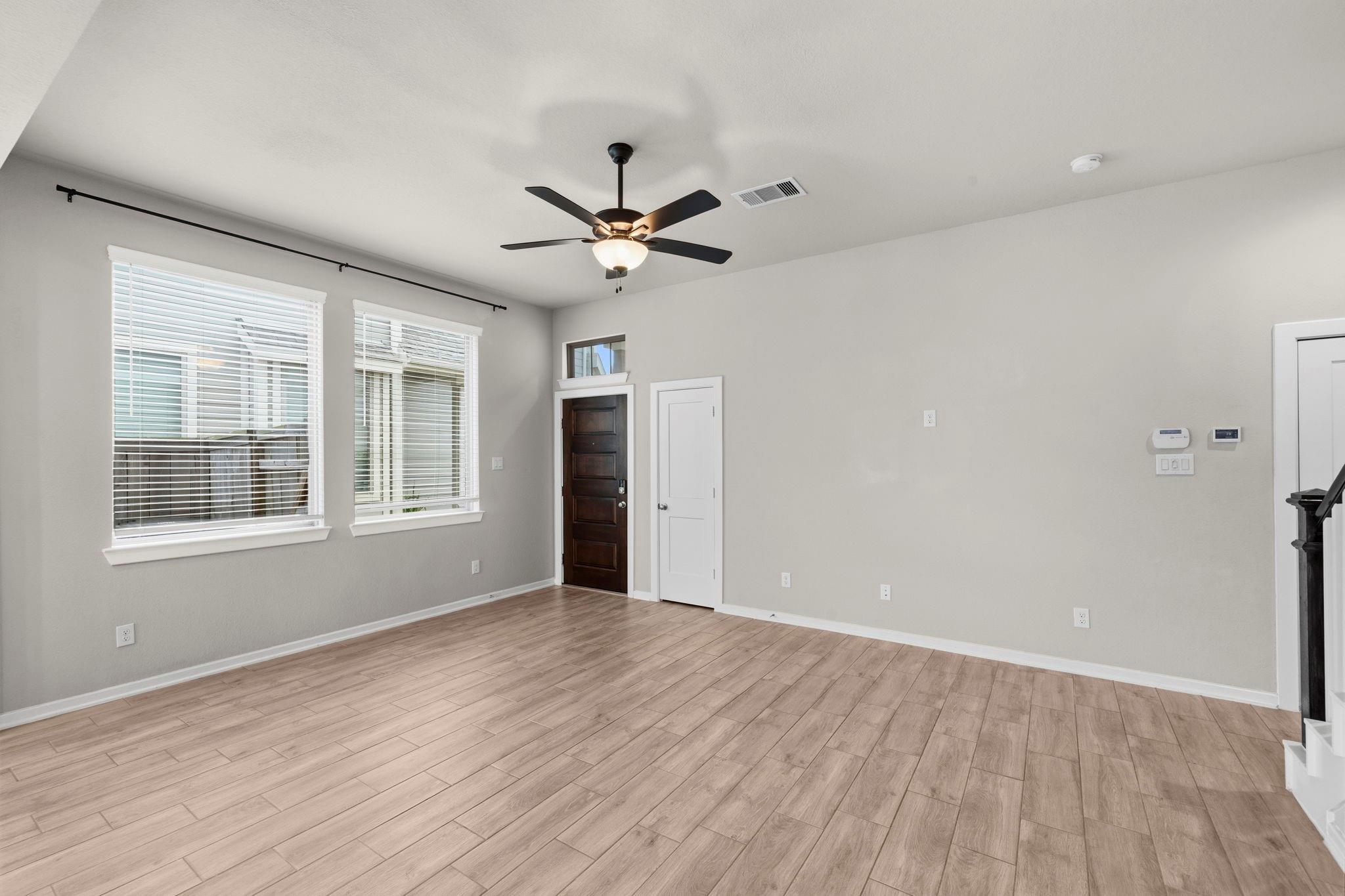 Experience the best of Bridgeland living in this stunning 3-bedroom, 2.5-bath townhome, perfectly positioned with no front neighbors. The first floor offers a seamless open-concept layout throughout the living, dining, and kitchen areas. The chef-inspired kitchen boasts a large island with a sink and seating, quartz countertops, and a spacious walk-in pantry. Upstairs, you’ll find a versatile loft/game room and a convenient laundry area. The primary retreat offers a large ensuite bathroom and a generous walk-in closet, while two guest rooms are connected by a full bathroom. The garage is complete with finished flooring. The backyard boasts a covered patio and private yard space, perfect for relaxing. Located just minutes from 99 and Tuckerton, this home offers an easy commute and access to world-class amenities: tennis courts, fishing lakes, a junior Olympic-size pool, lap pool, tower slides, a gym, and miles of walking/biking trails. Zoned to acclaimed Cy-Fair ISD schools!