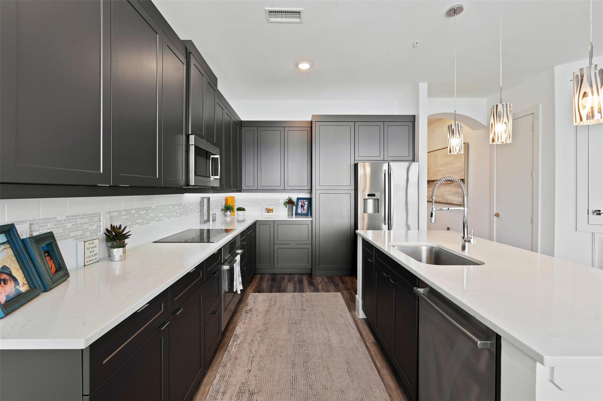 InteriorFloors:Carpet,Vinyl PlankCountertop:QuartzBathroom Description:Primary Bath: Double SinksBedroom Desc:All Bedrooms Down,En-Suite Bath,Walk-In ClosetKitchen Desc:Breakfast Bar,Island w/o Cooktop,Kitchen open to Family Room,Pantry,Pots/Pans Drawers,Soft Closing Cabinets,Soft Closing Drawers,Under Cabinet LightingRoom Description:1 Living Area,Entry,Family Room,Living/Dining ComboHeating:Central ElectricCooling:Central ElectricWasher/Dryer Conn:YesDishwasher:YesDisposal:YesCompactor:NoMicrowave:YesRange:Electric Cooktop,Induction CooktopOven:Convection Oven,Electric Oven,Freestanding OvenIce Maker:NoAppliances:Dryer Included,Electric Dryer Connection,Full Size,Refrigerator,Stacked,Washer IncludedEnergy Feature:Ceiling Fans,Digital Program Thermostat,Energy Star/CFL/LED Lights,High-Efficiency HVAC,Insulated/Low-E windows,Insulation - Blown CelluloseInterior:Balcony,Fire/Smoke Alarm,Fully Sprinklered,Refrigerator Included