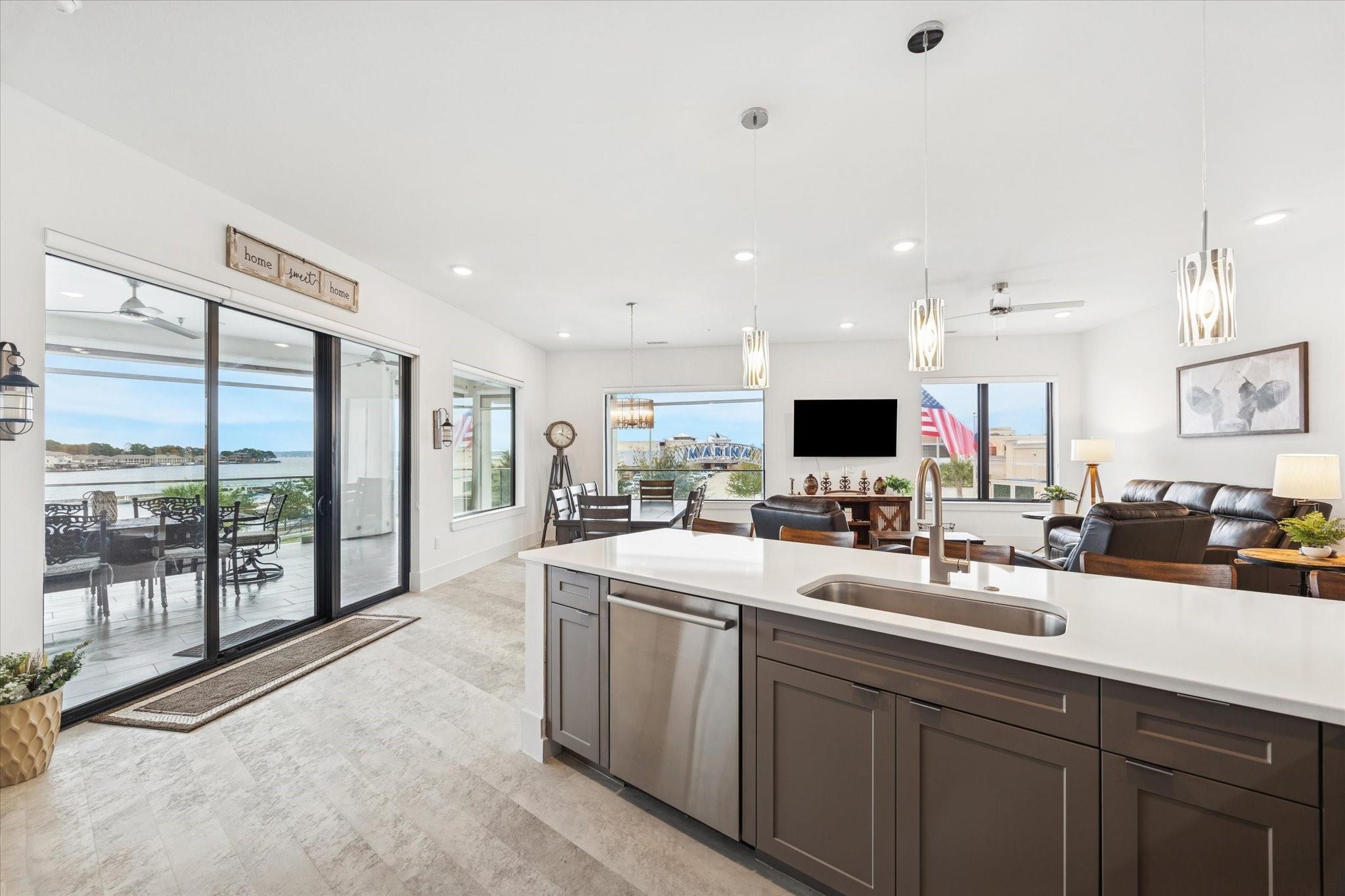 Welcome to waterfront luxury at Shoreline, one of Lake Conroe’s most exclusive communities. This rare 4 bedroom, 4 bath lakefront residence is one of only eight in the complex and offers the largest floor plan available. Offered fully furnished, it provides an immediate turnkey retreat with beautiful designer touches throughout. Enjoy unobstructed views of the open lake, marina, and resort style pool with bridge, waterfall, fountains, and lush tropical landscaping. The private balcony and peaceful water sounds create a relaxing atmosphere day and night. Shoreline features gated access, two pools, a hot tub, grilling stations, and elevators for effortless convenience. Steps away are multiple waterfront restaurants, boutique shops, everyday services, and CVS. Boat owners will love the easy access to one of the best marinas on Lake Conroe. Perfect for a weekend escape or a lock and leave lifestyle, this home delivers exceptional waterfront living with comfort and convenience.