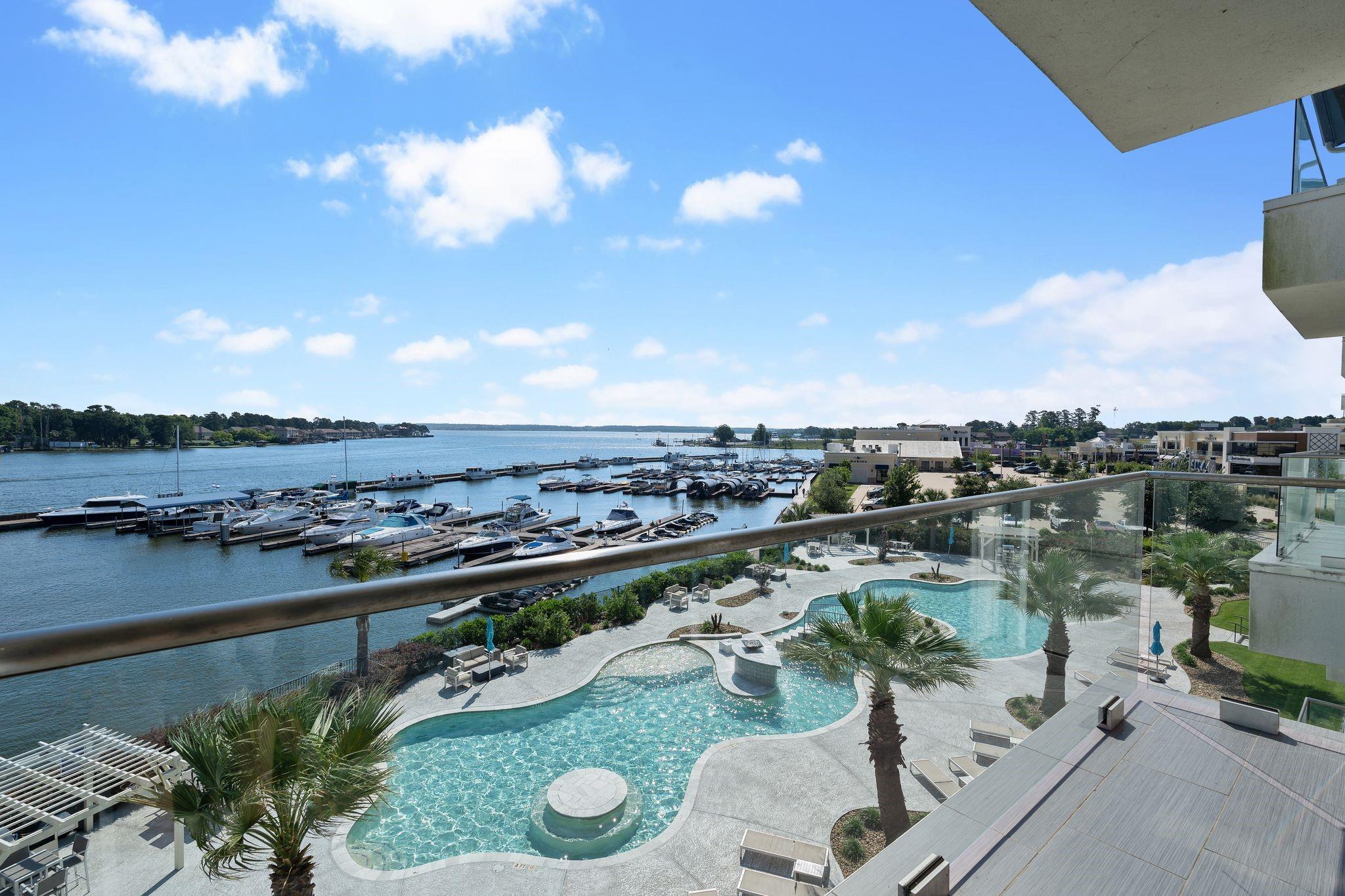 OPEN WATER VIEWS AT SHORELINE ON LAKE CONROE! This 3rd floor 2 bedroom, 2 bathroom condo is located on the premium open lake side of Shoreline Condominiums at Waterpoint. Enjoy expansive views of Lake Conroe, Waterpoint Marina, and the resort-style pool from your private covered balcony. Tropical landscaping, waterfalls, fountains, and dramatic evening lighting create a true waterfront retreat. Shoreline is a gated 56-unit community offering elevators, two pools, hot tub, and grilling areas. Located in the heart of Waterpoint, you can walk to popular waterfront restaurants including Fajita Jack’s, Akashi, Crust Pizza, Monty’s and Starbucks, along with boutique shops, services, and CVS. The Waterpoint Marina next door makes it easy to keep your boat nearby and fully enjoy the Lake Conroe lifestyle.